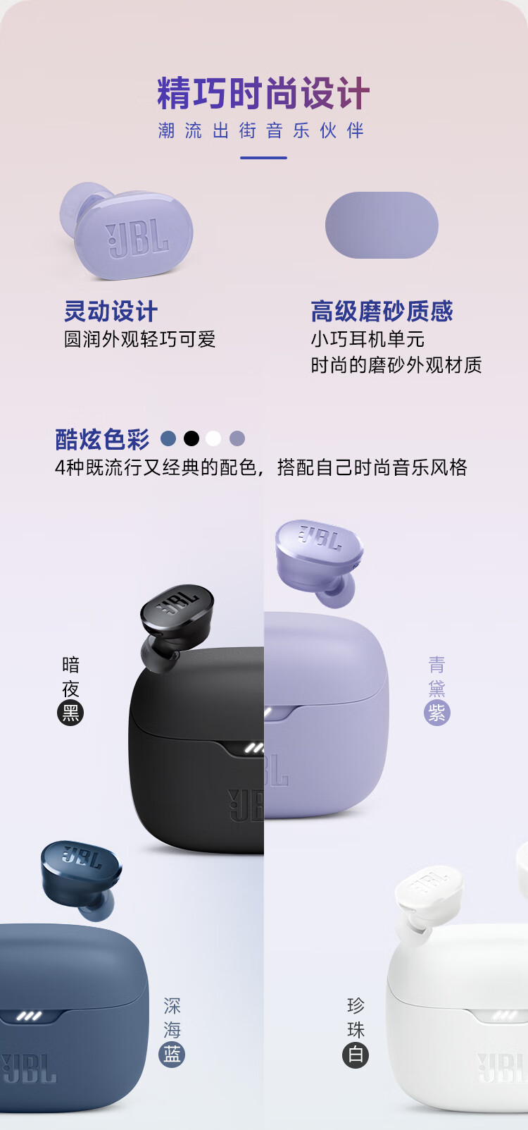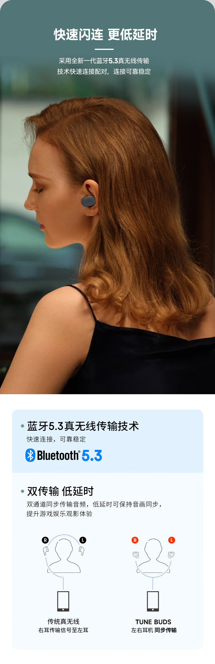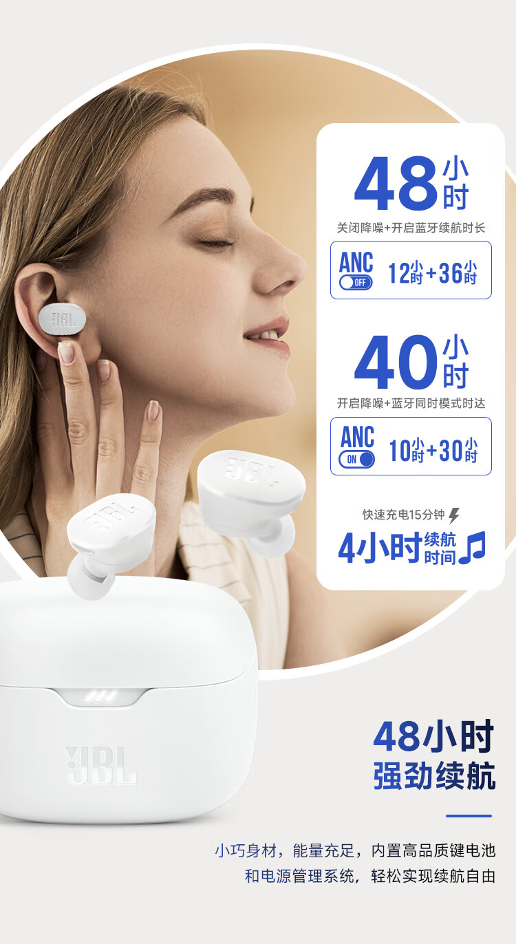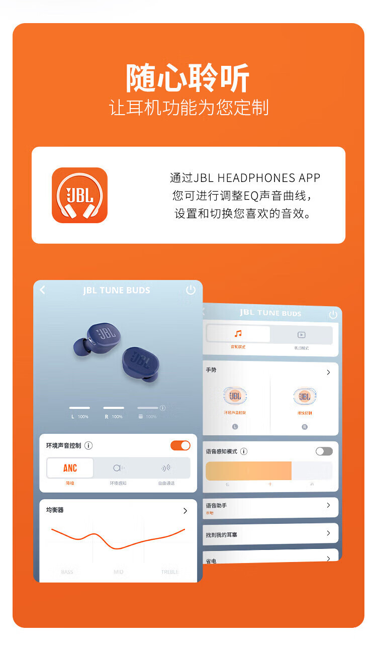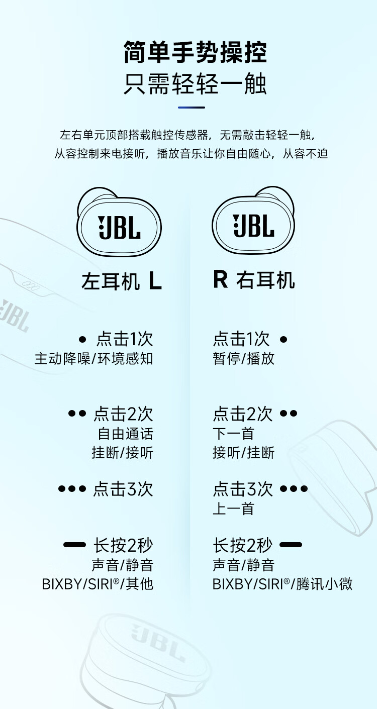 JBL TUNE BUDS琉璃豆真无线蓝牙耳机 主动降噪运动耳机 苹果华为小米带麦游戏耳机