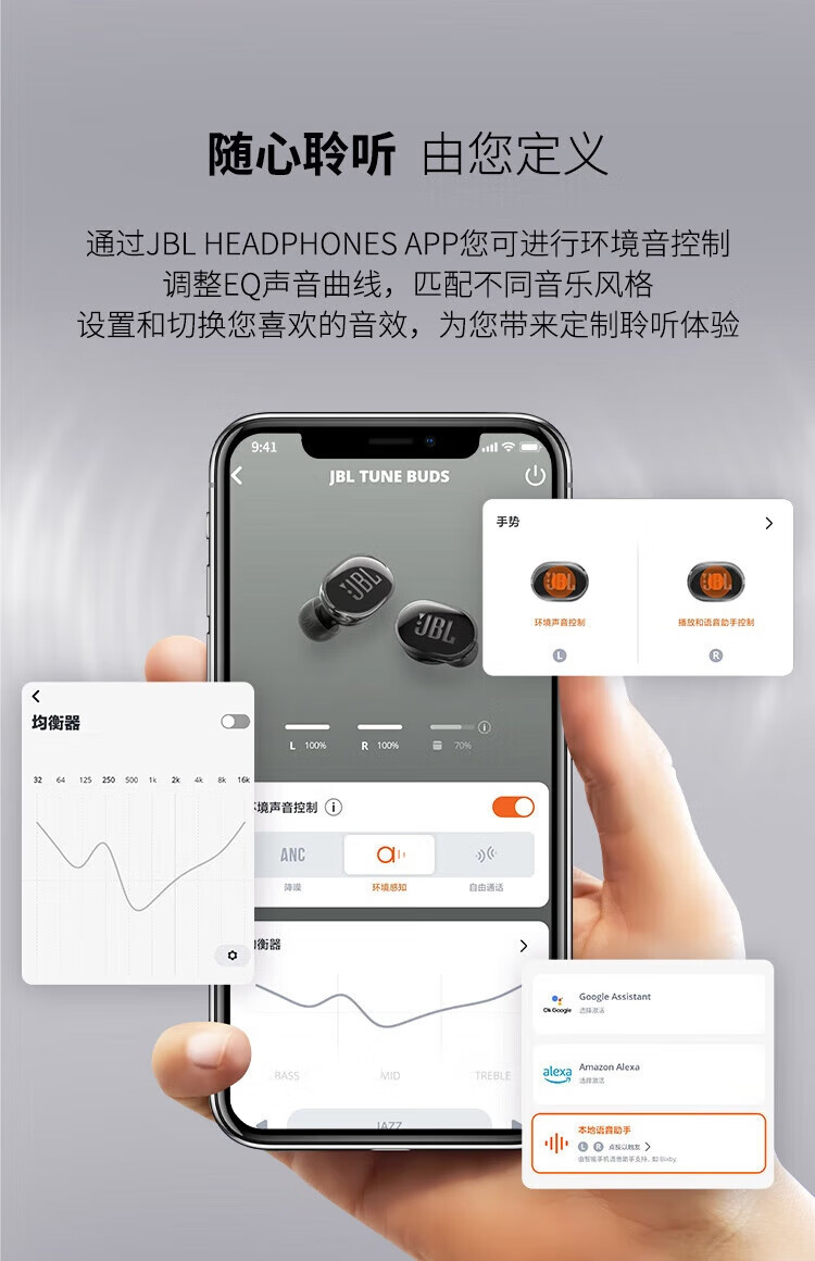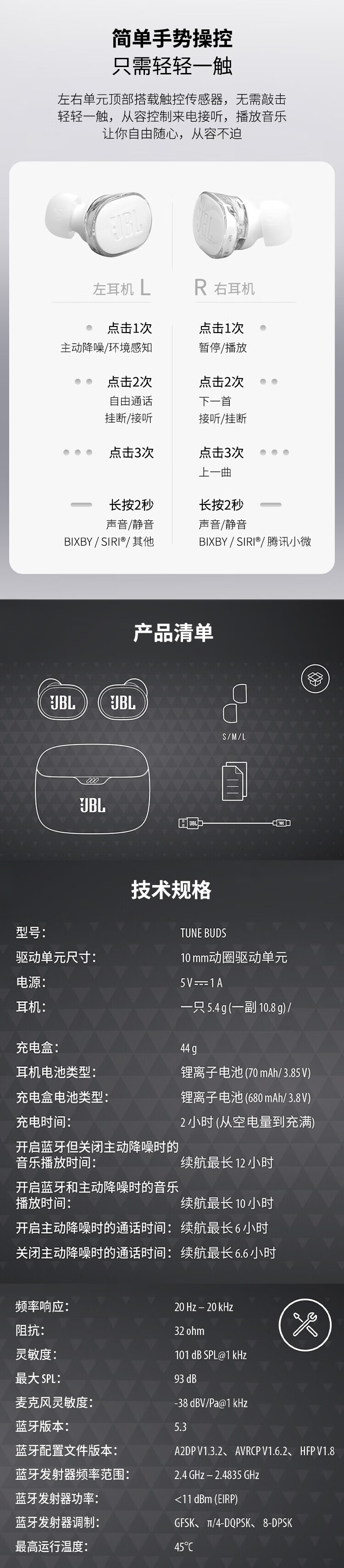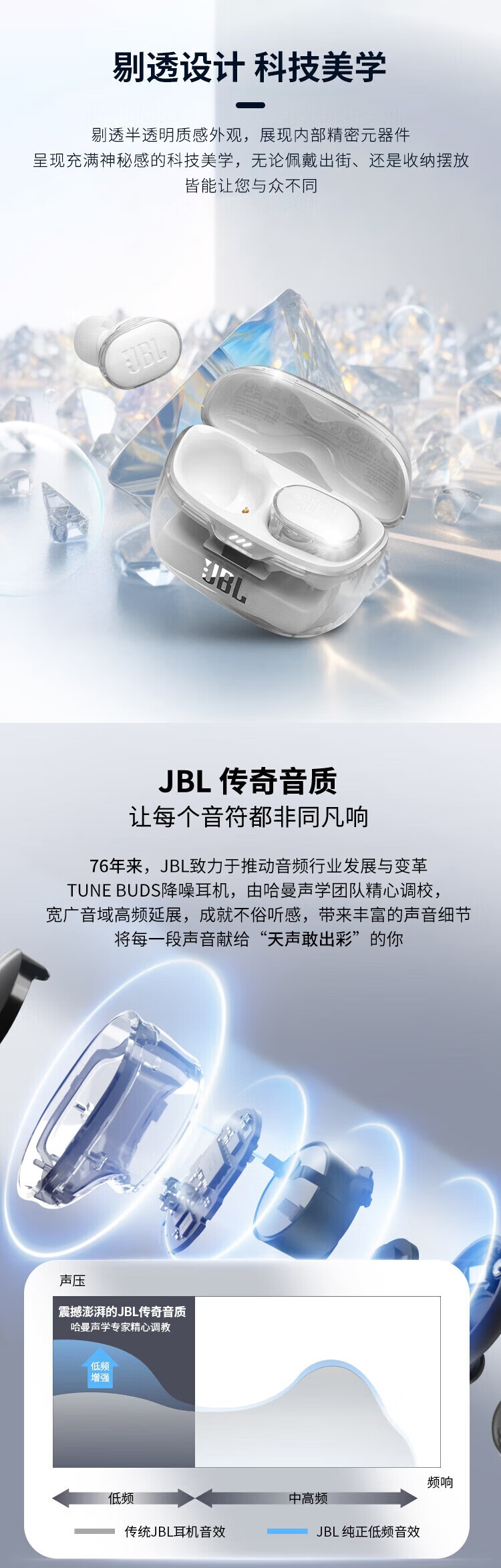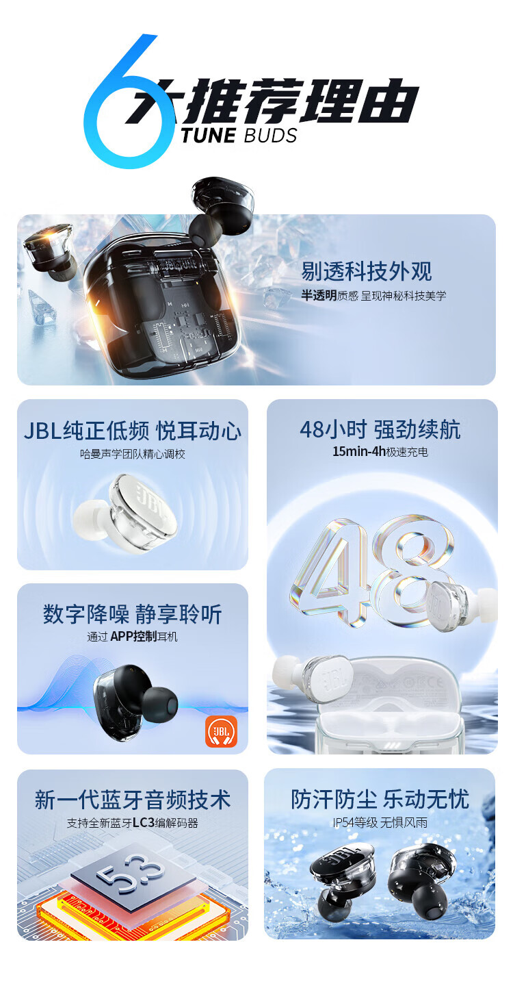 JBL TUNE BUDS琉璃豆真无线蓝牙耳机 主动降噪运动耳机 苹果华为小米带麦游戏耳机