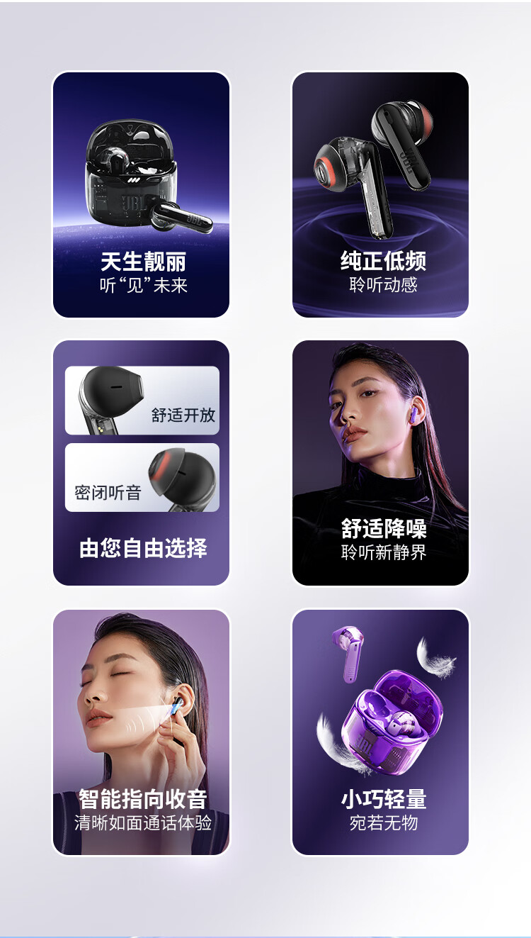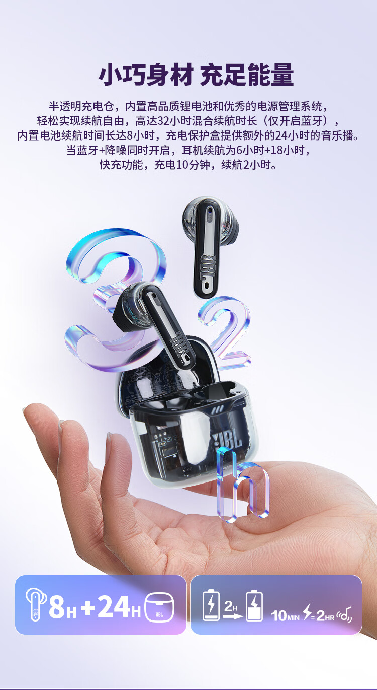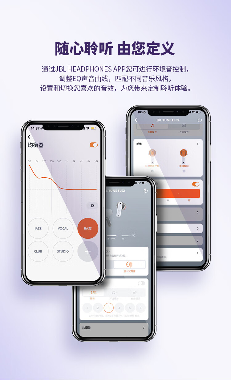 JBL TUNE FLEX小晶豆真无线蓝牙半入耳音乐降噪耳机
