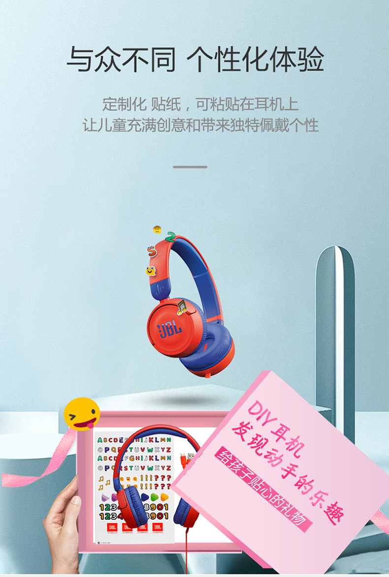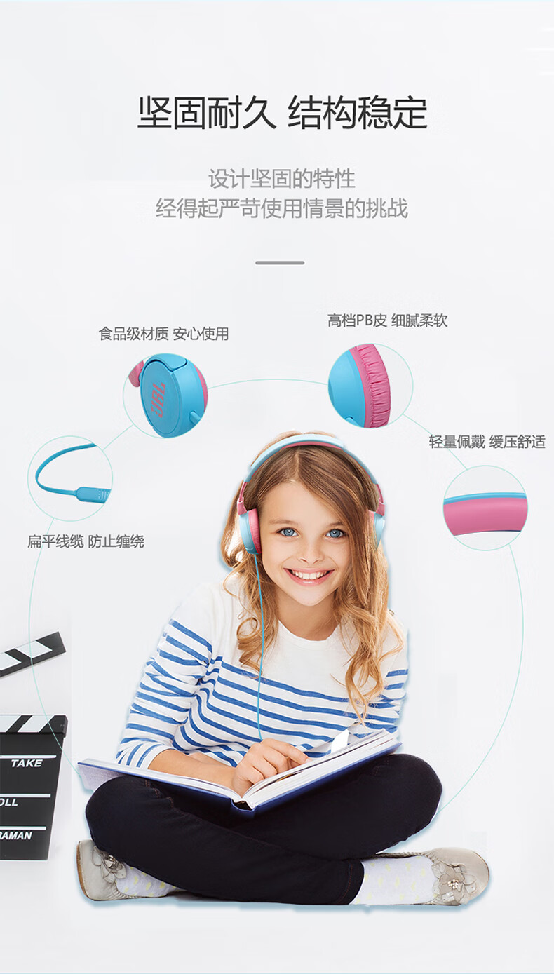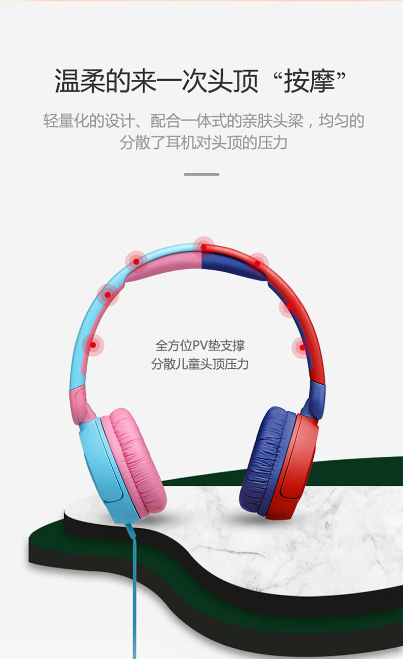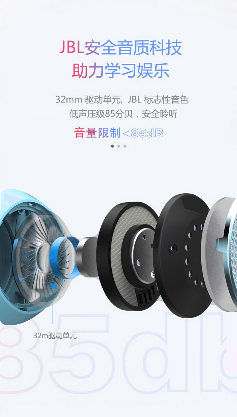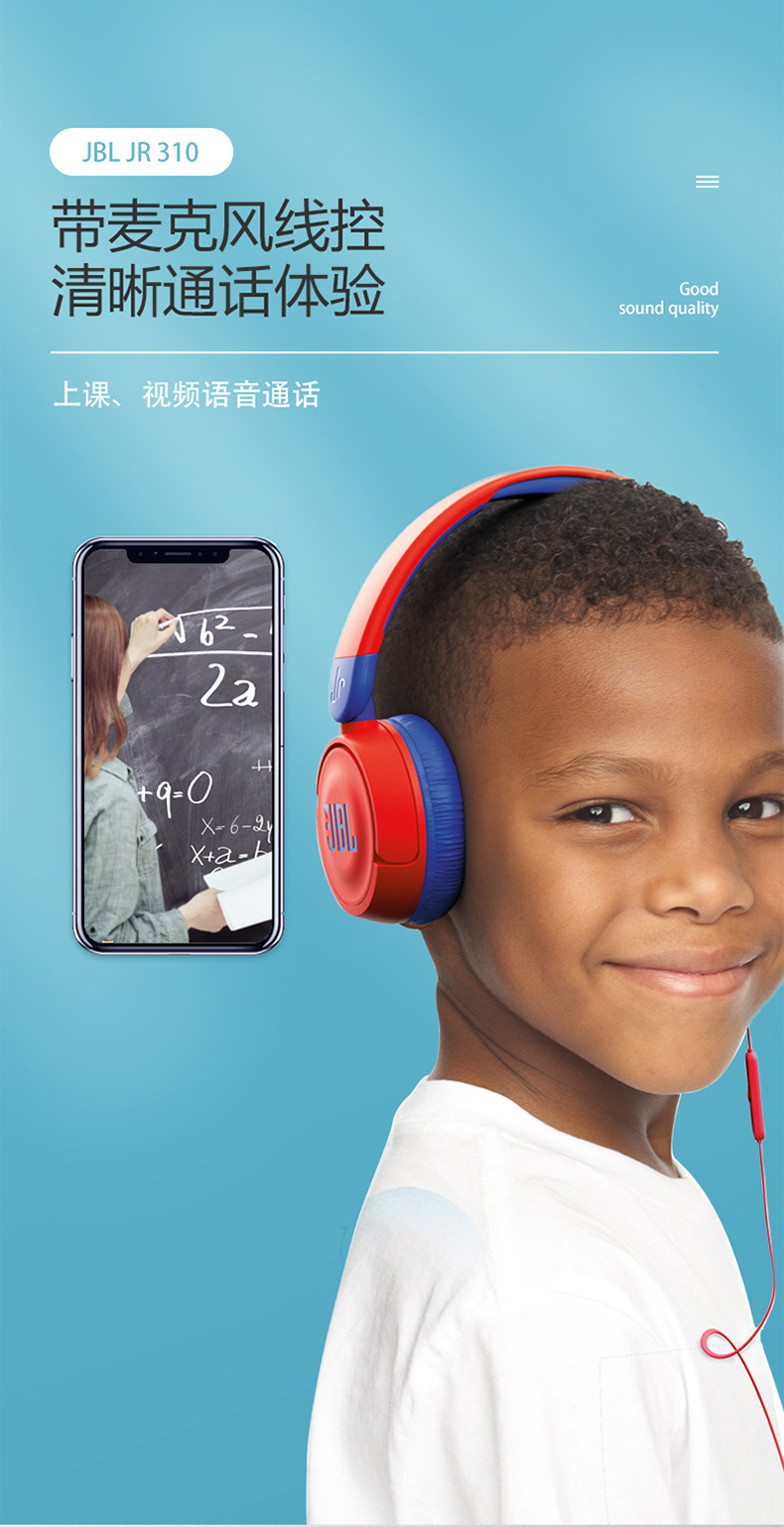JBL JR310 头戴式儿童益智耳机 低分贝线控带麦克风沉浸式学生学习网课耳机