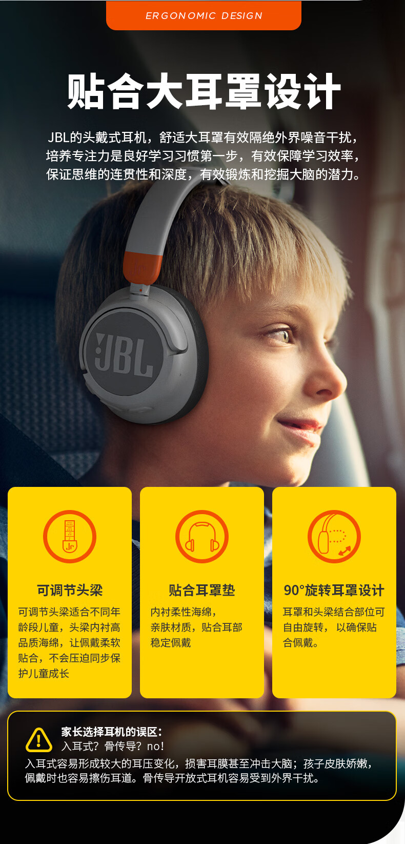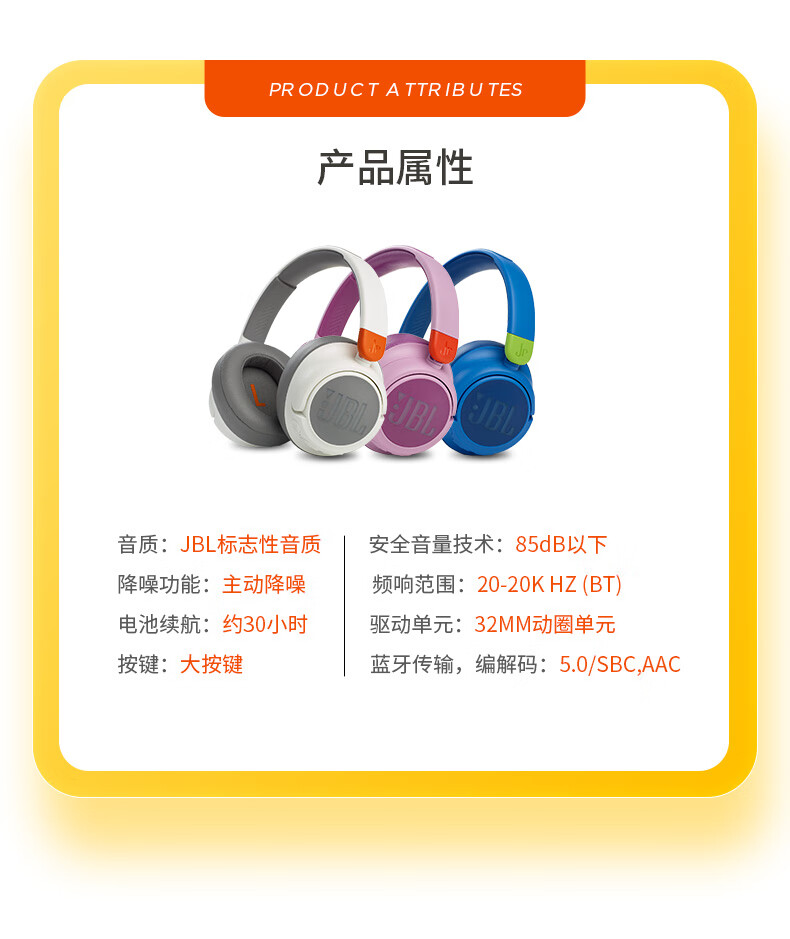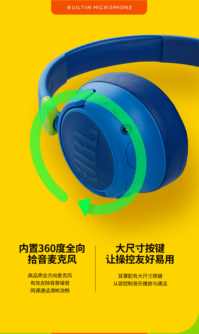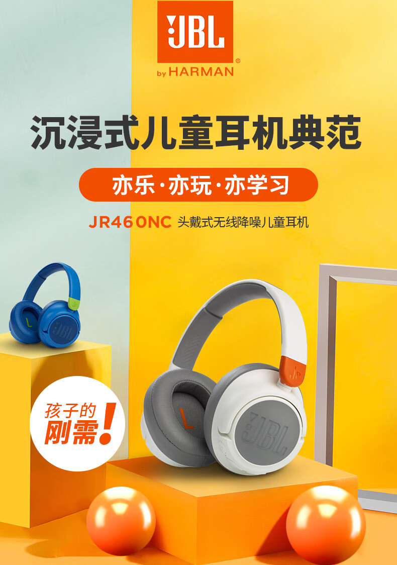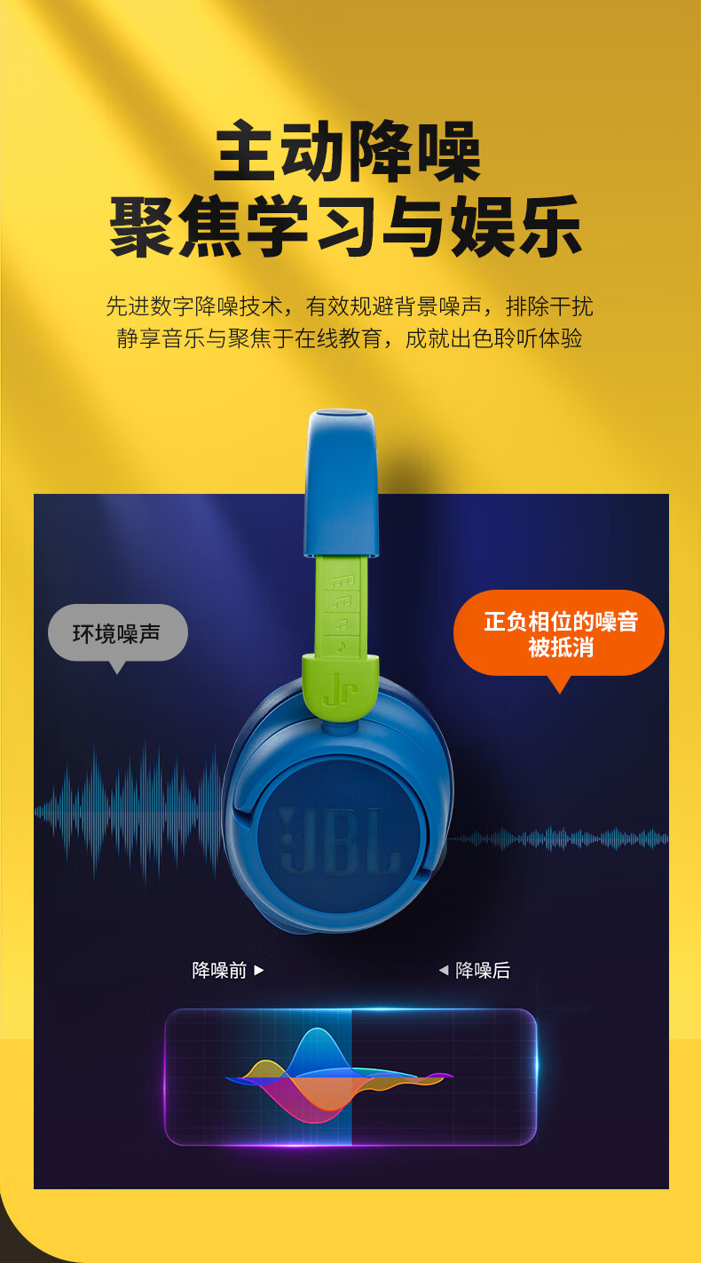 JBL JR460NC 头戴式降噪儿童蓝牙耳机