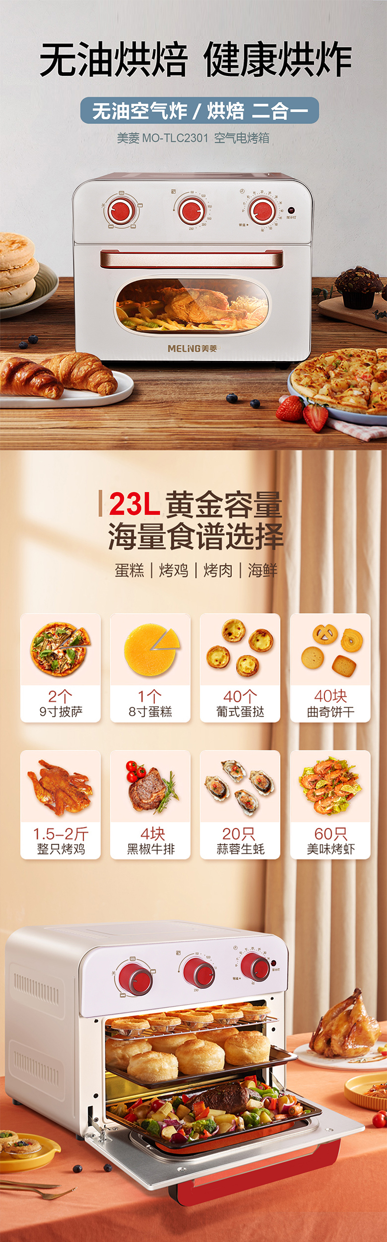 【美菱】23L空气炸烤箱