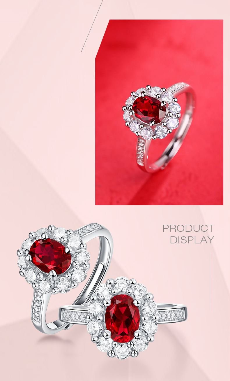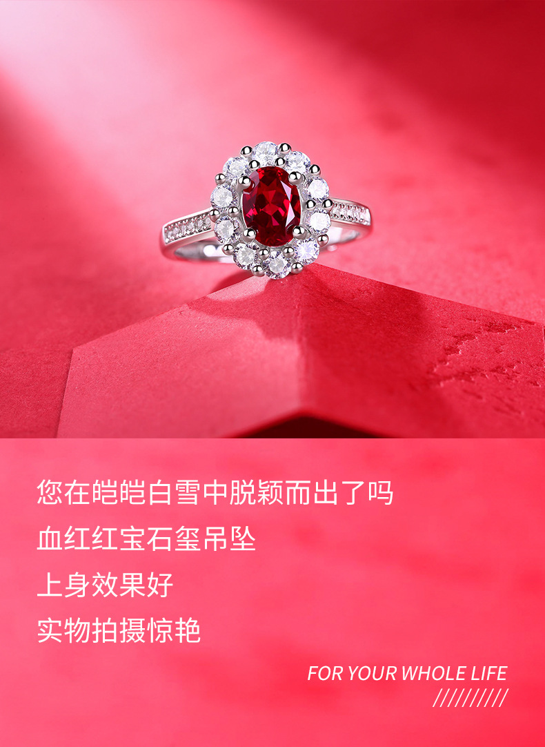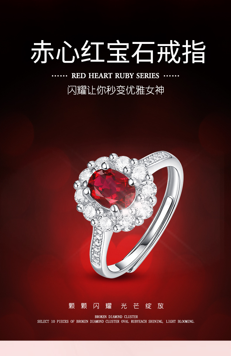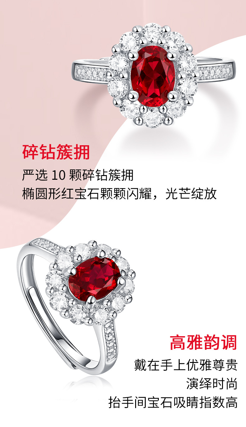 【璀璨美满】戒指S925银镶嵌合成红宝石赤心女戒银饰品送女友送老婆礼物