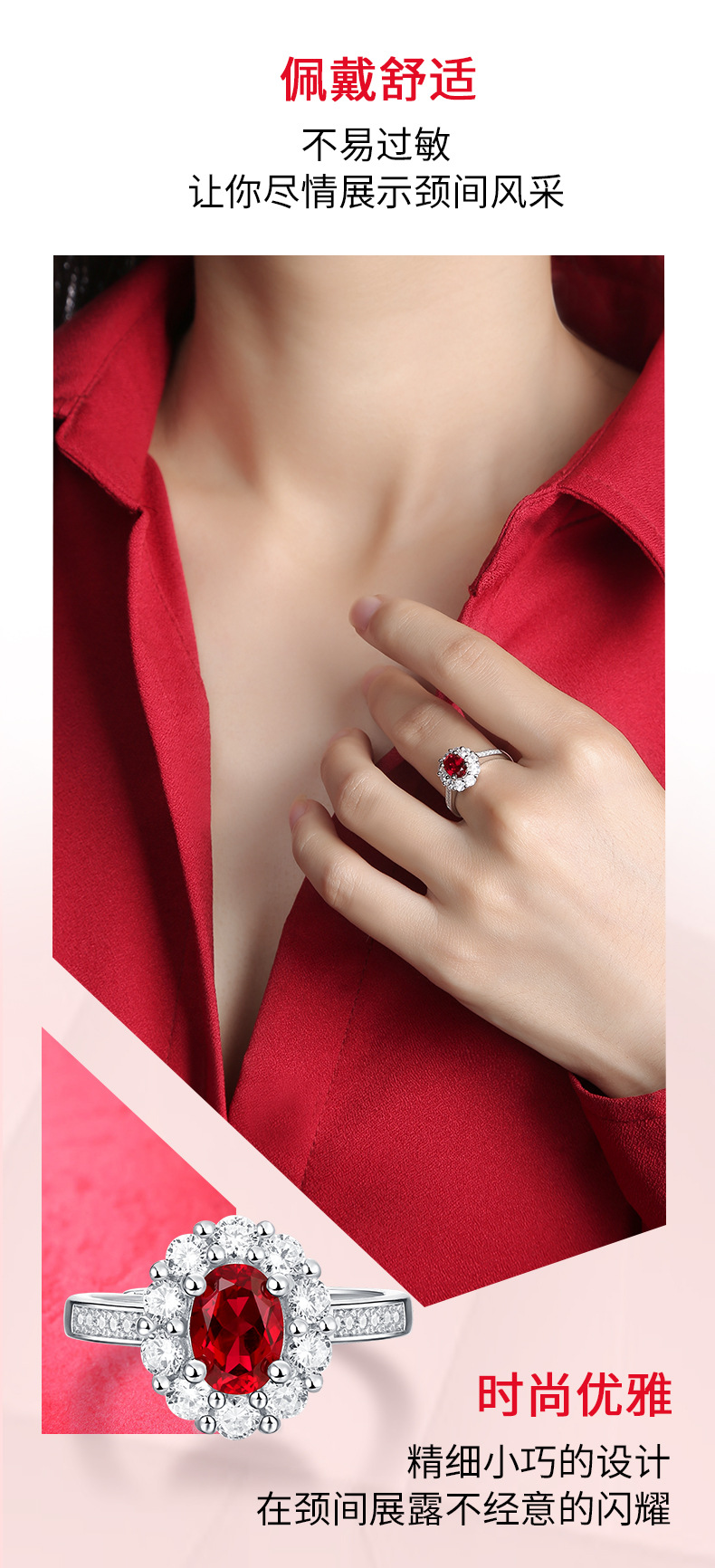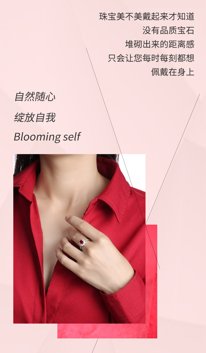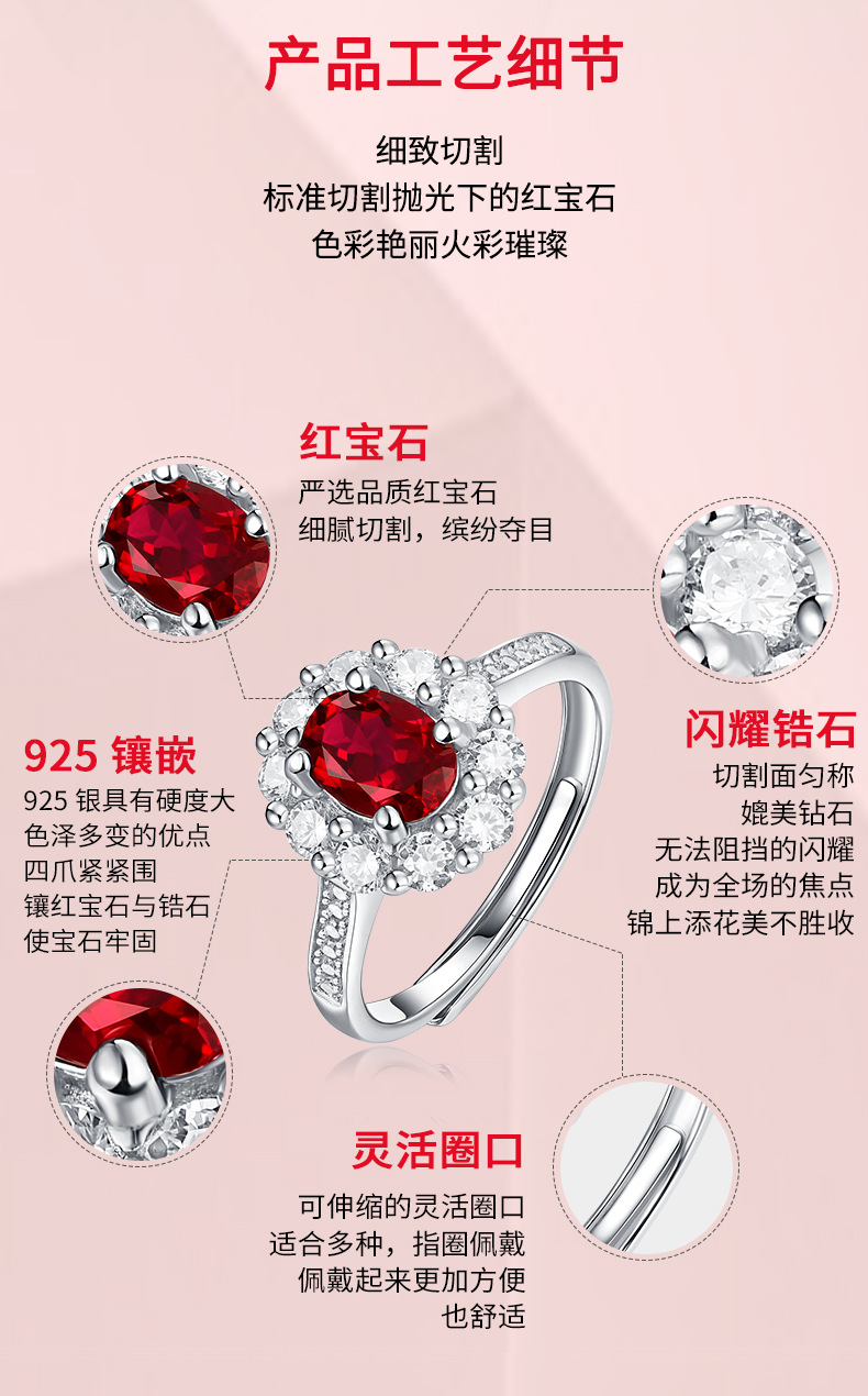 【璀璨美满】戒指S925银镶嵌合成红宝石赤心女戒银饰品送女友送老婆礼物
