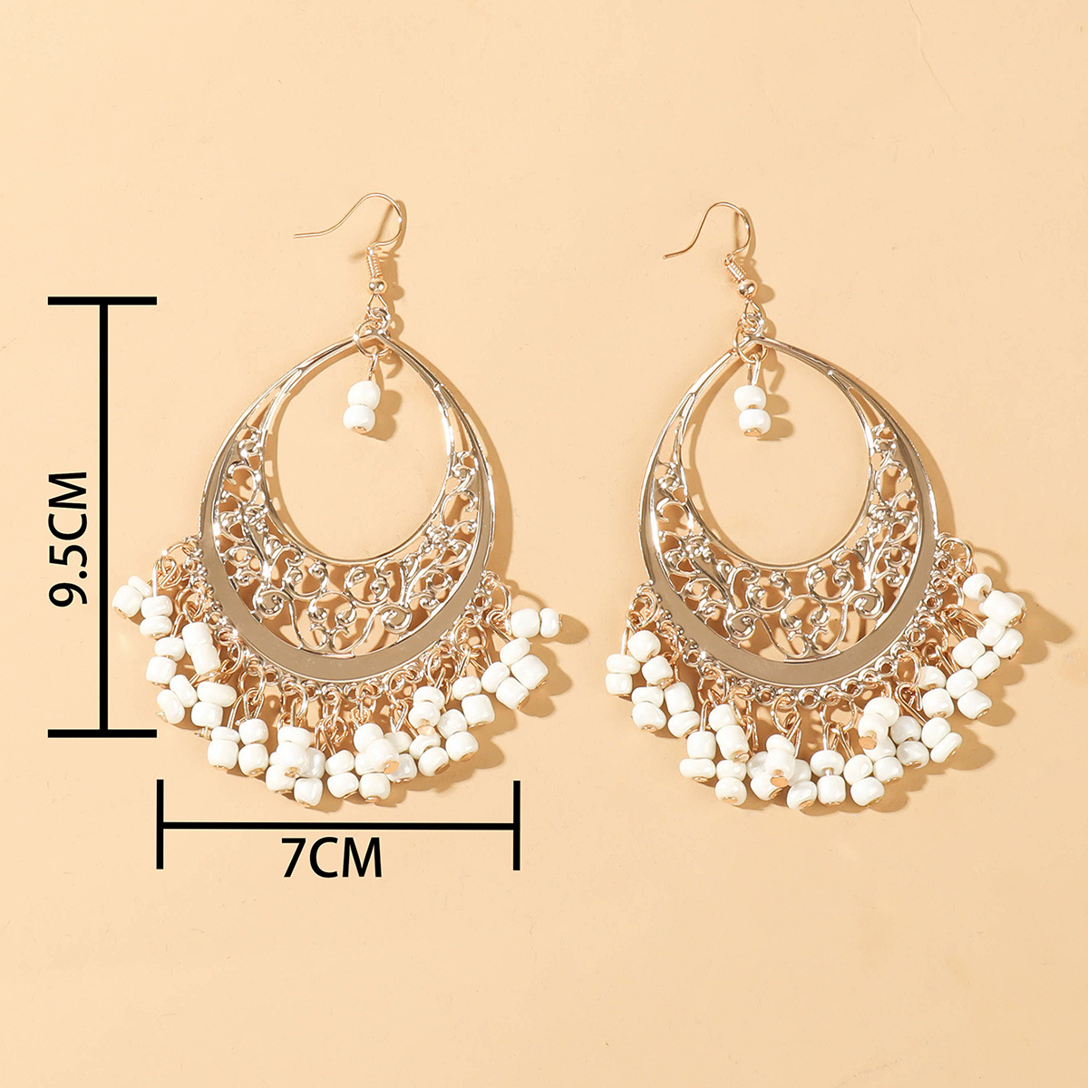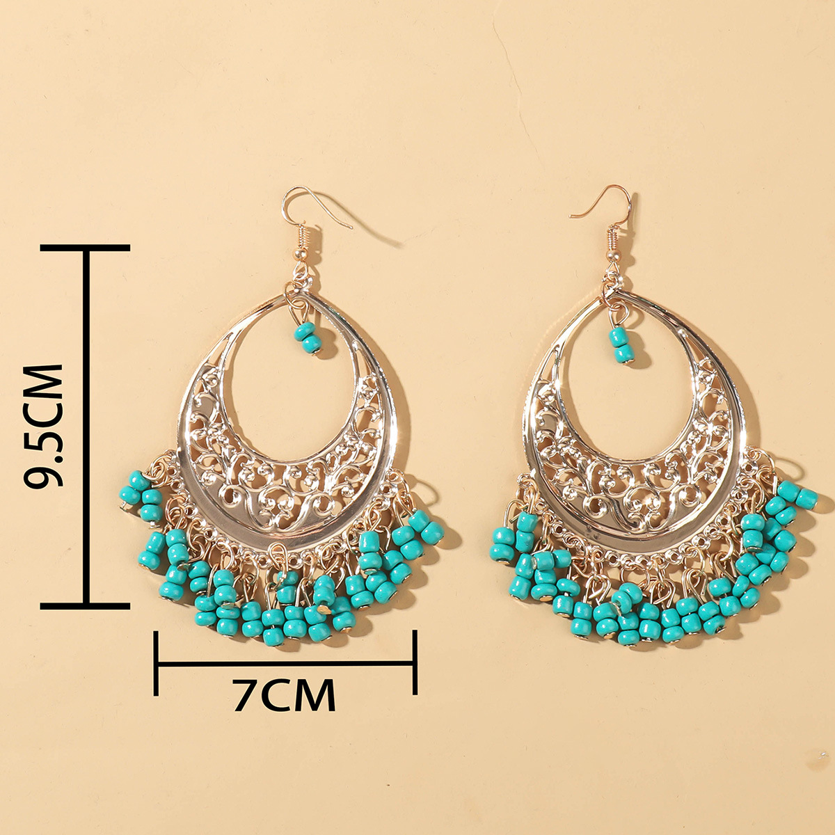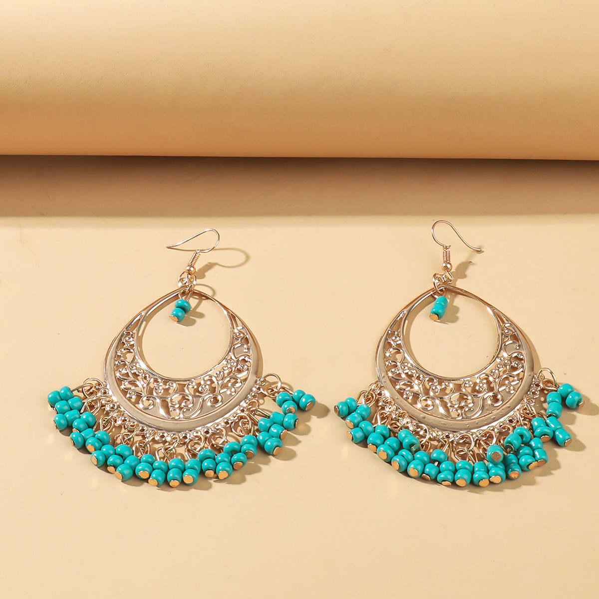 【气质个性】波西米亚耳环拼接圆圈磨砂撞色耳钉气质个性米珠流苏潮流女士耳环
