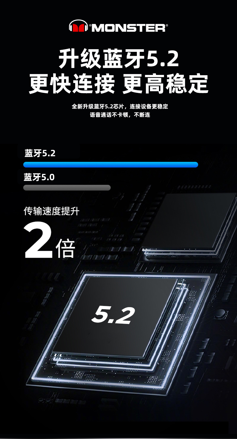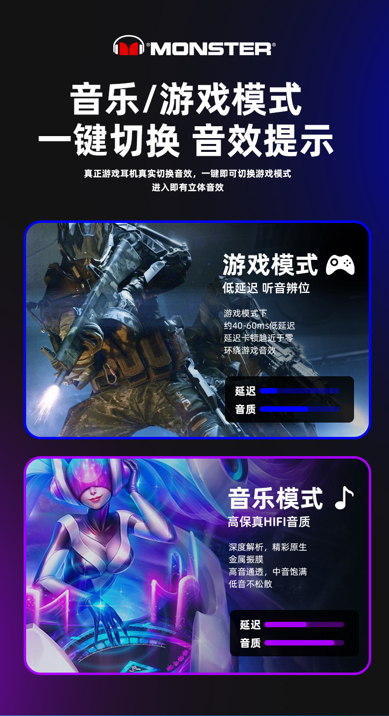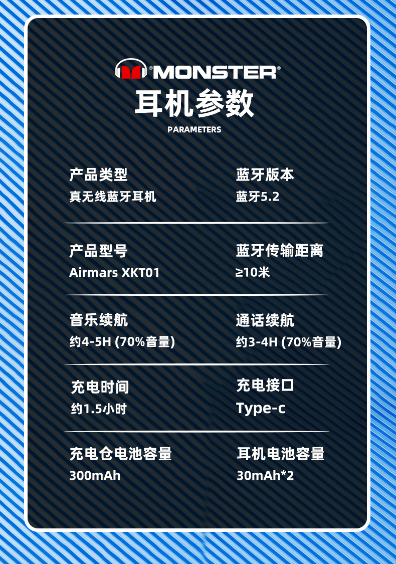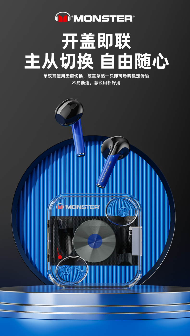 魔声(Monster)XKT01透明蓝牙耳机ENC降噪真无线运动跑步游戏蓝牙耳机
