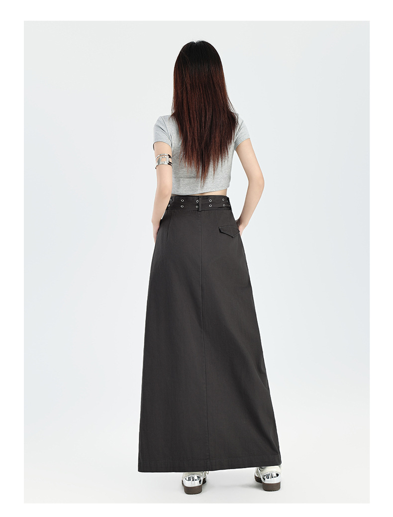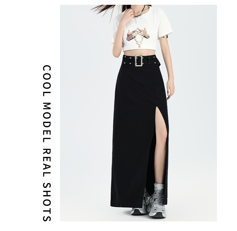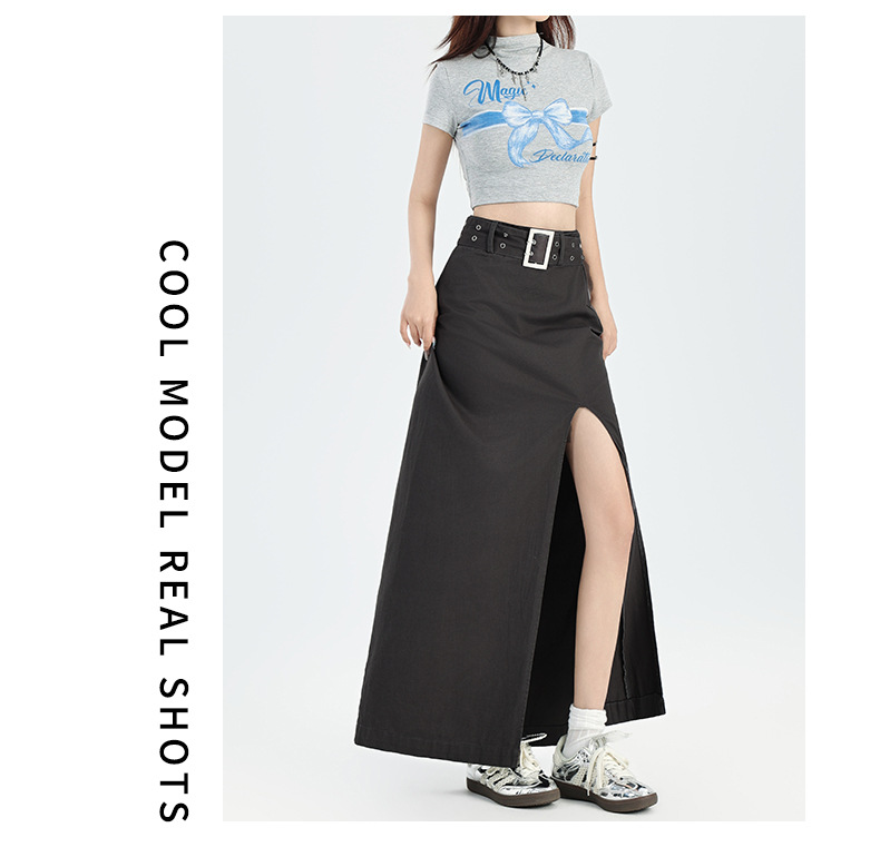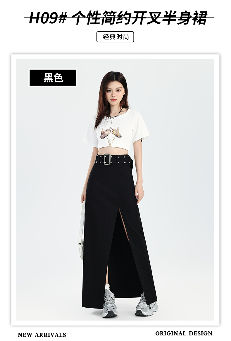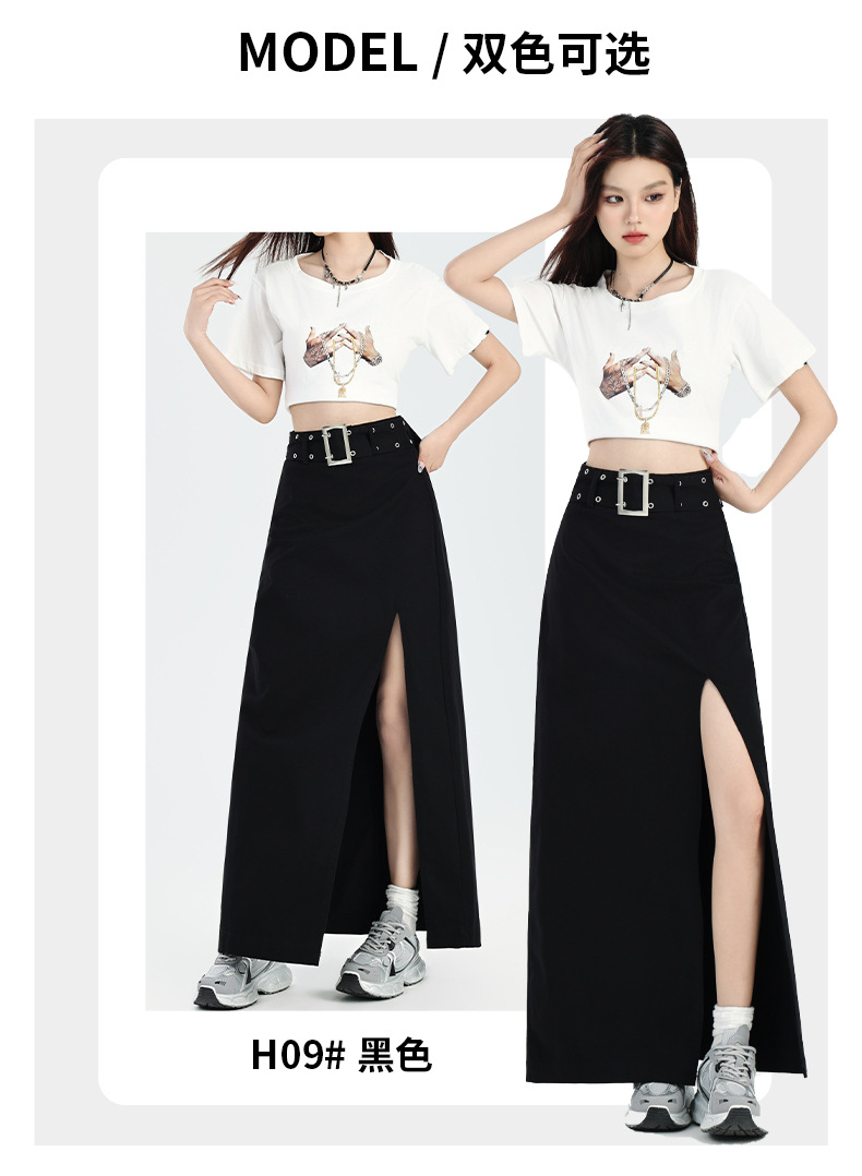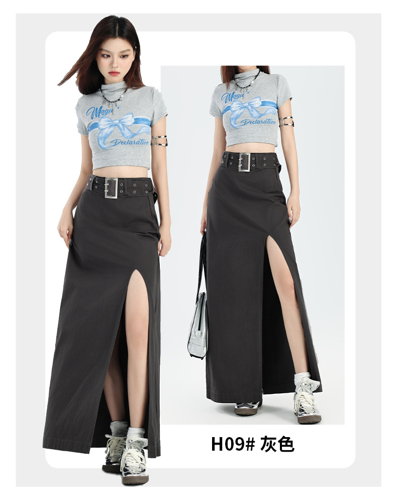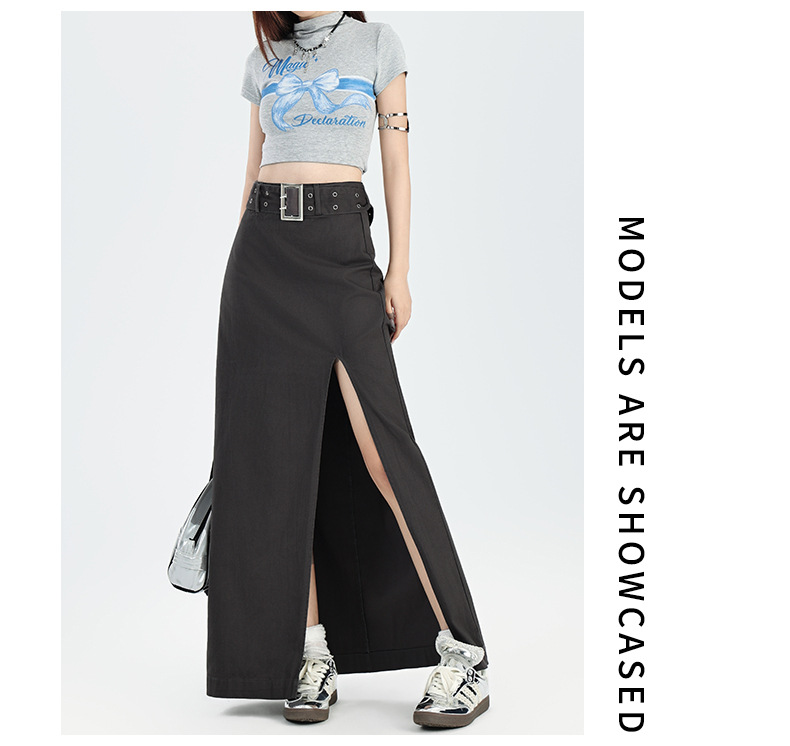 M348G2209Q3 辣妹简约个性开叉设计感包臀半身裙春秋季百搭纯棉高腰a字中长裙