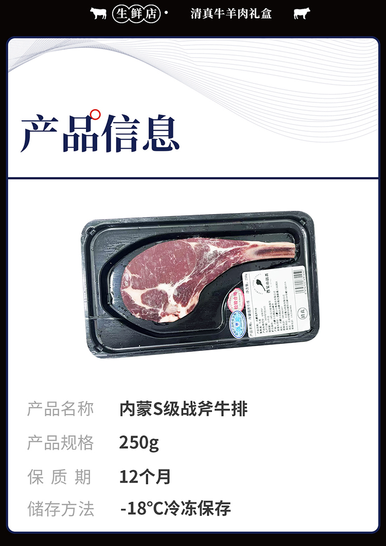 西蒙小战斧 内蒙清真S级战斧牛排250g