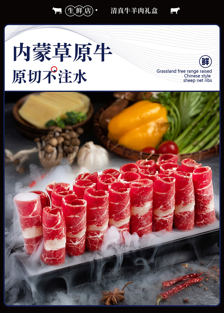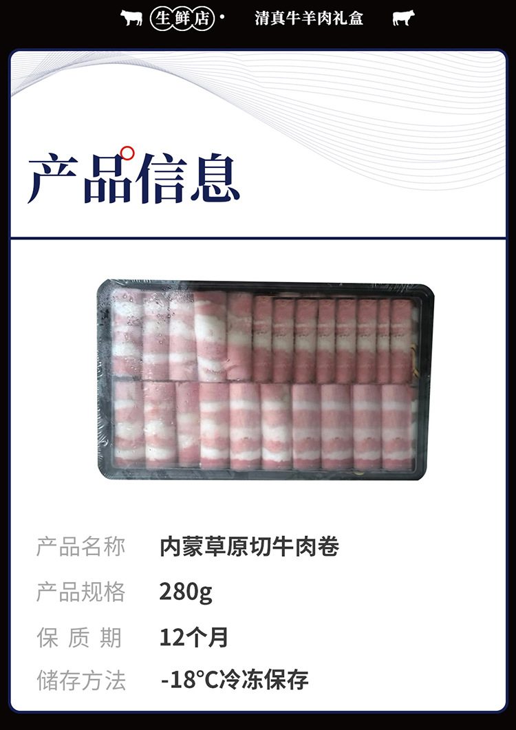 西蒙小战斧 内蒙草原清真切牛肉卷280g