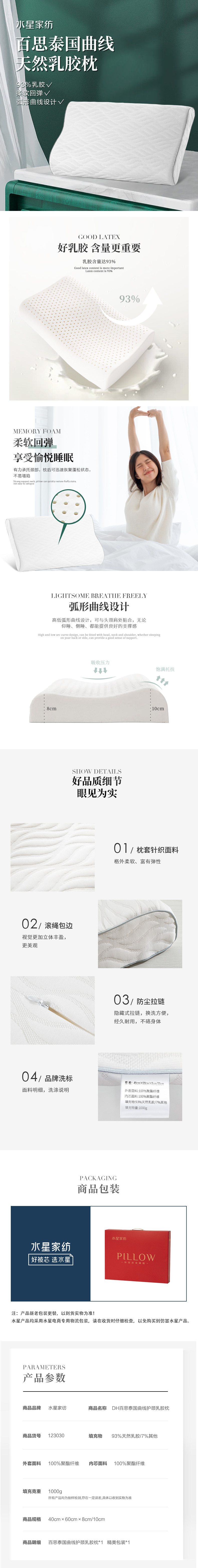 百思曲线天然乳胶枕123030