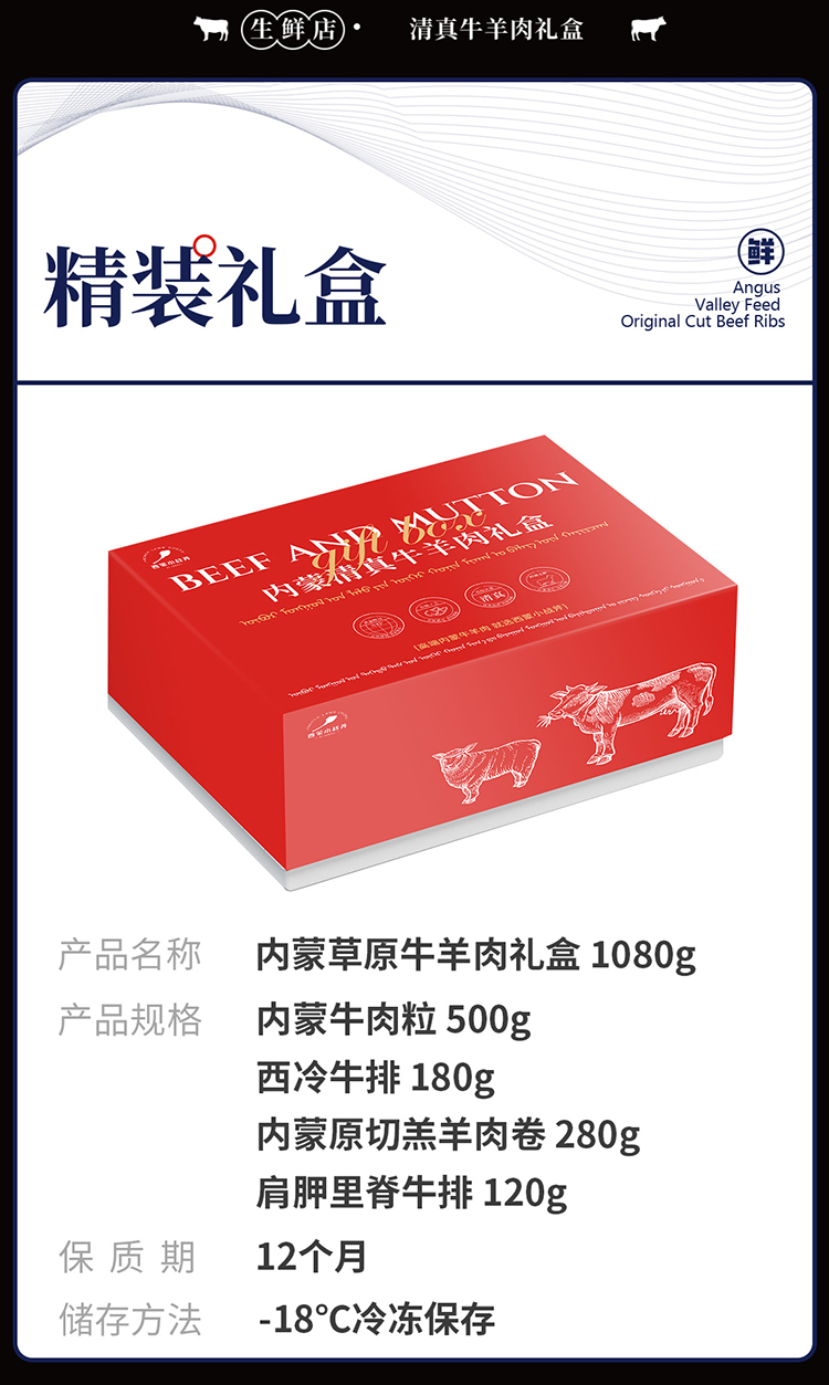 内蒙草原牛羊肉礼盒-299型(1080g)