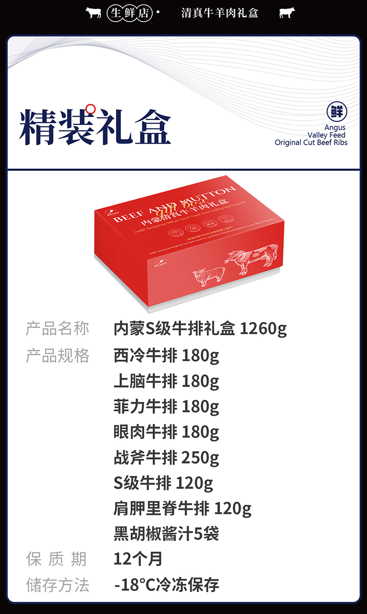 内蒙S级和牛牛排礼盒-499型 (1260g)