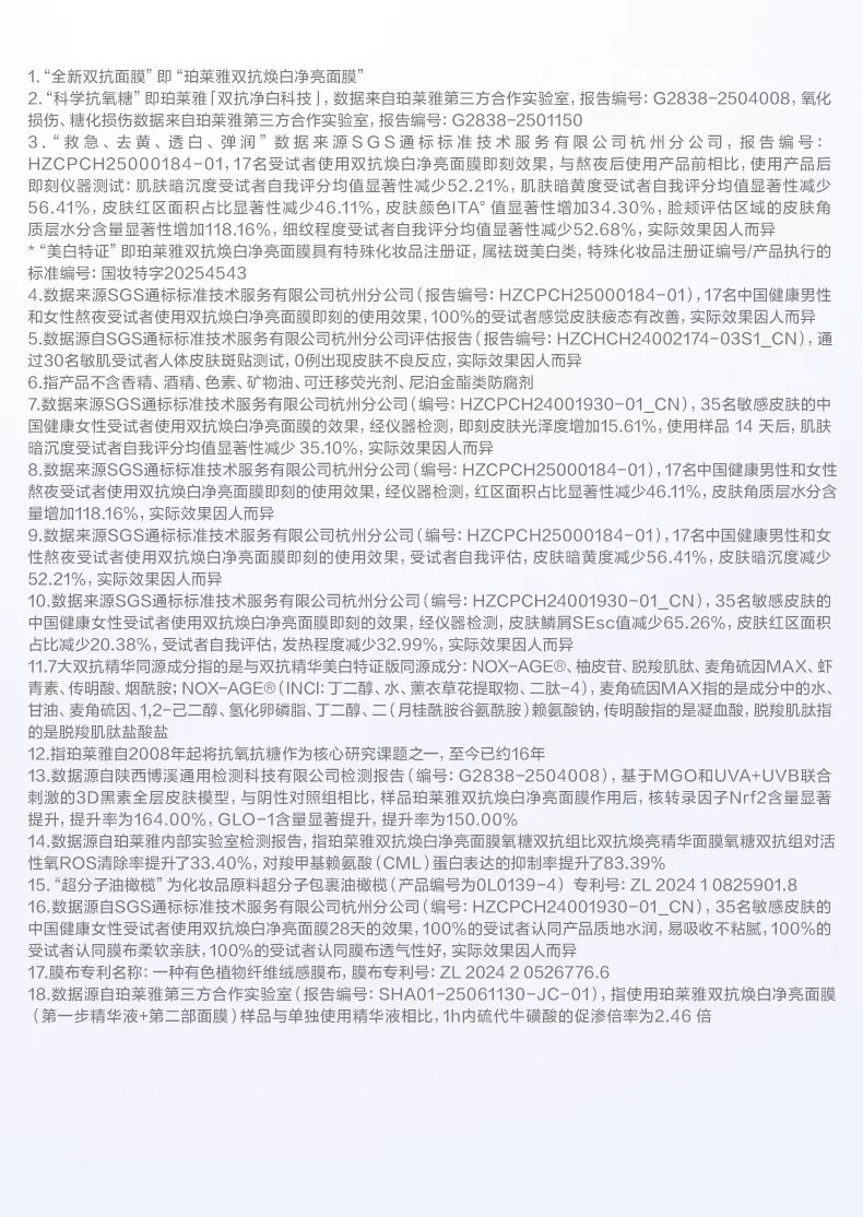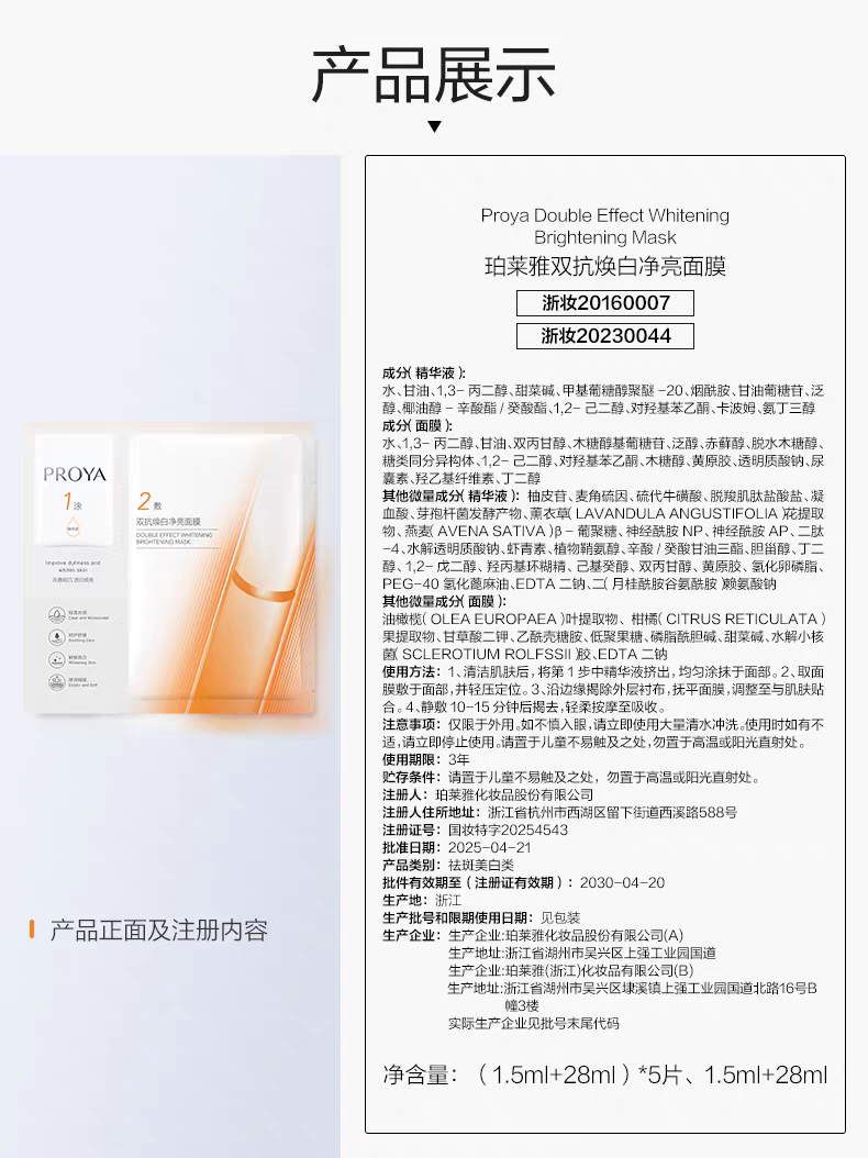 珀莱雅双抗焕白净亮面膜-单片装