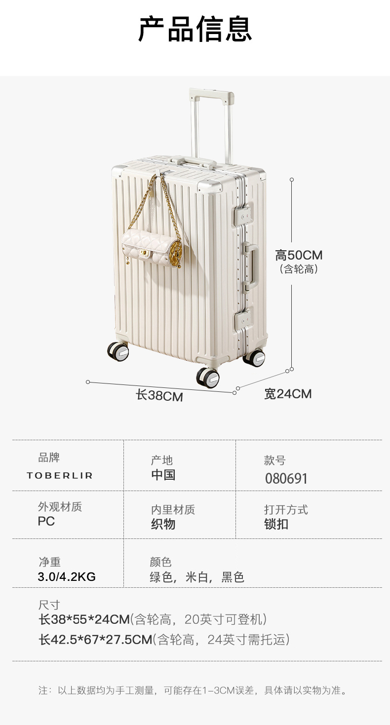 途柏丽TOBERLIR拉杆箱轻音飞机轮行李箱20英寸24英寸登机箱旅行箱男女通用密码箱080691-20、080691-24