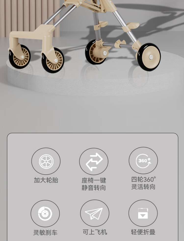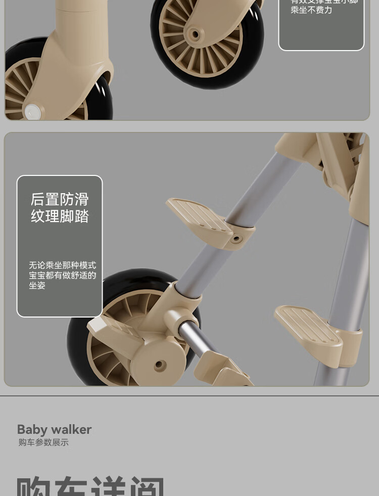 airud/(艾瑞迪)口袋溜娃车HL-6655白金 裸车版不带坐垫
