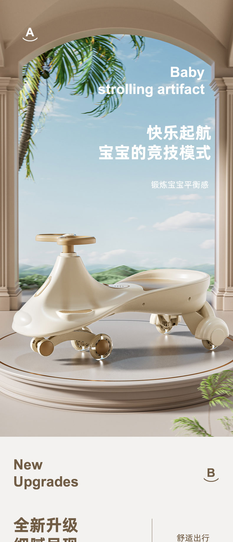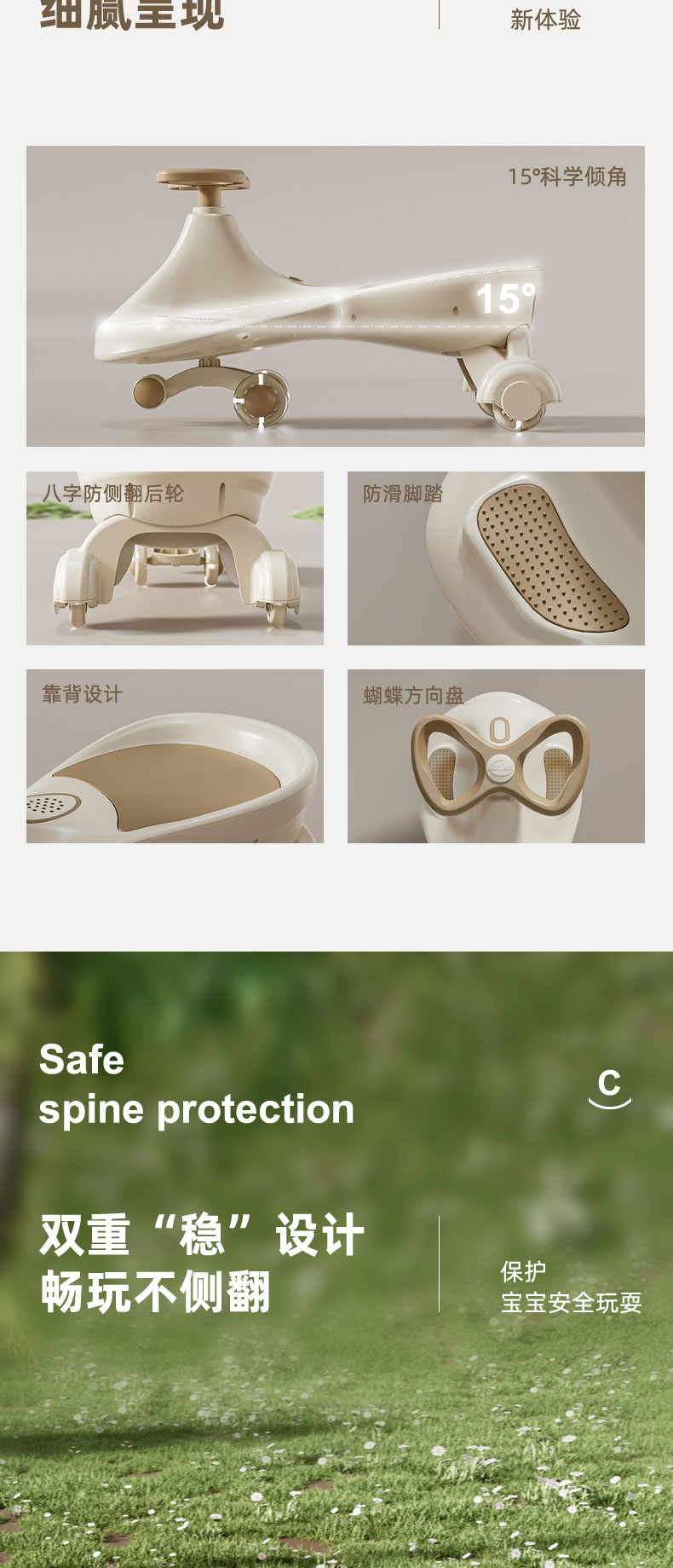 airud/(艾瑞迪)小鱼儿 儿童摇摆车031米白色