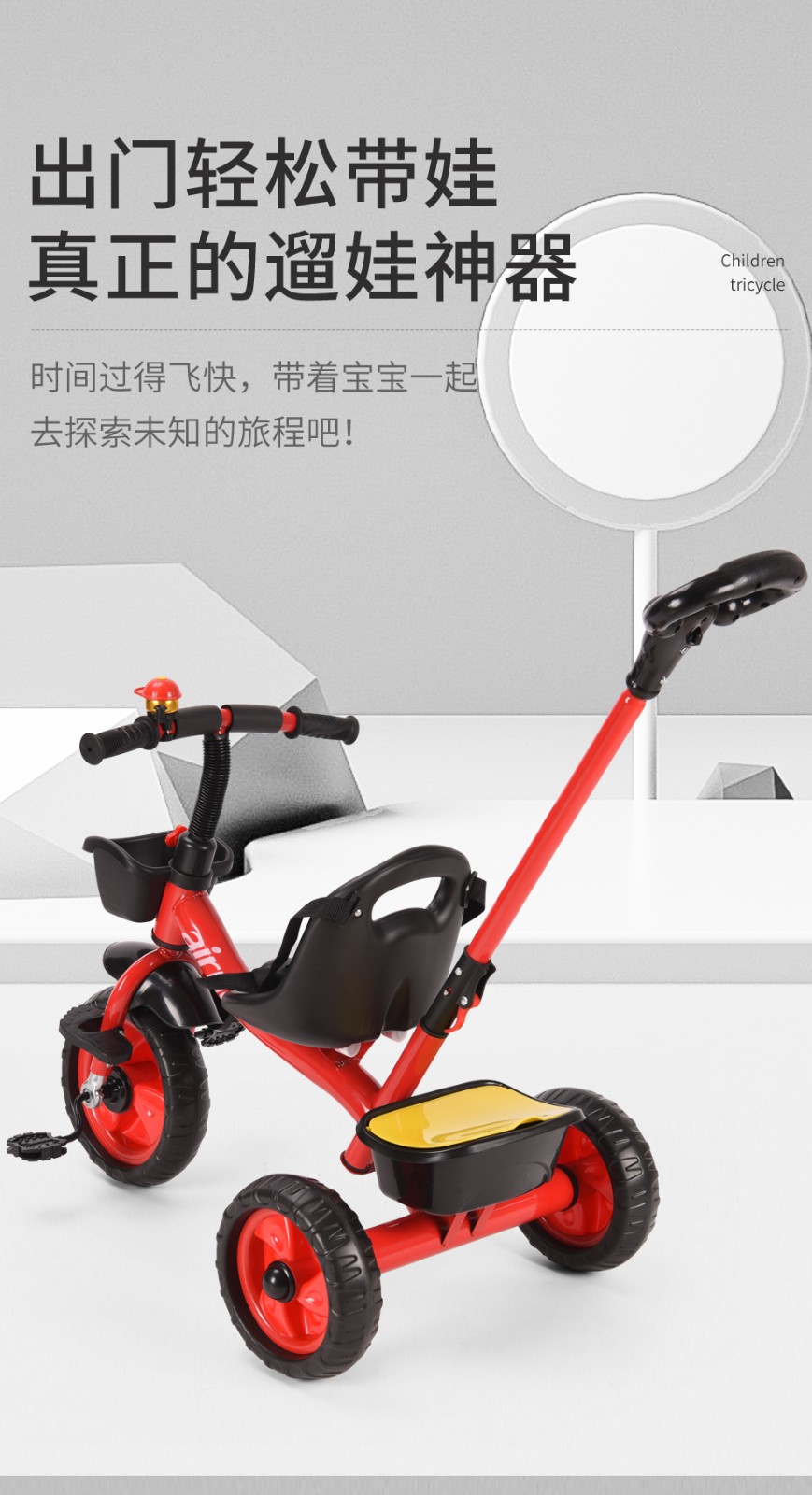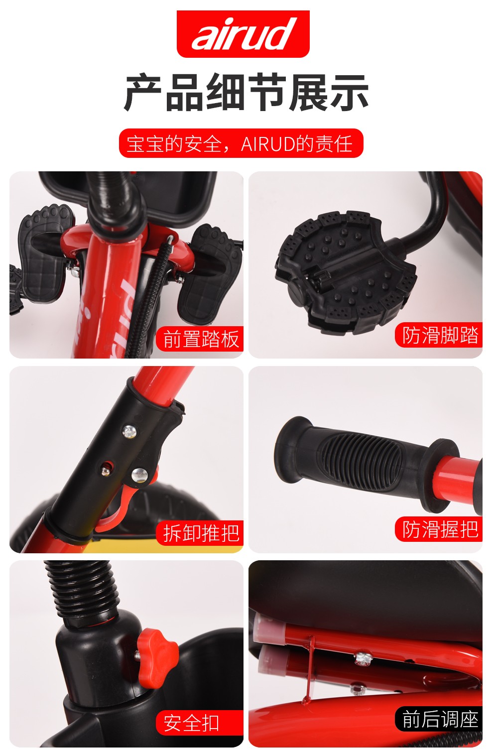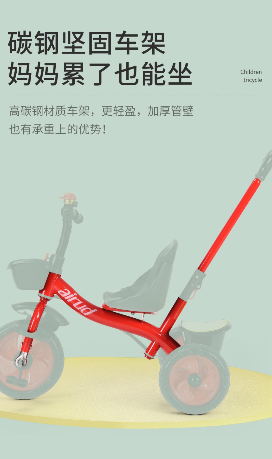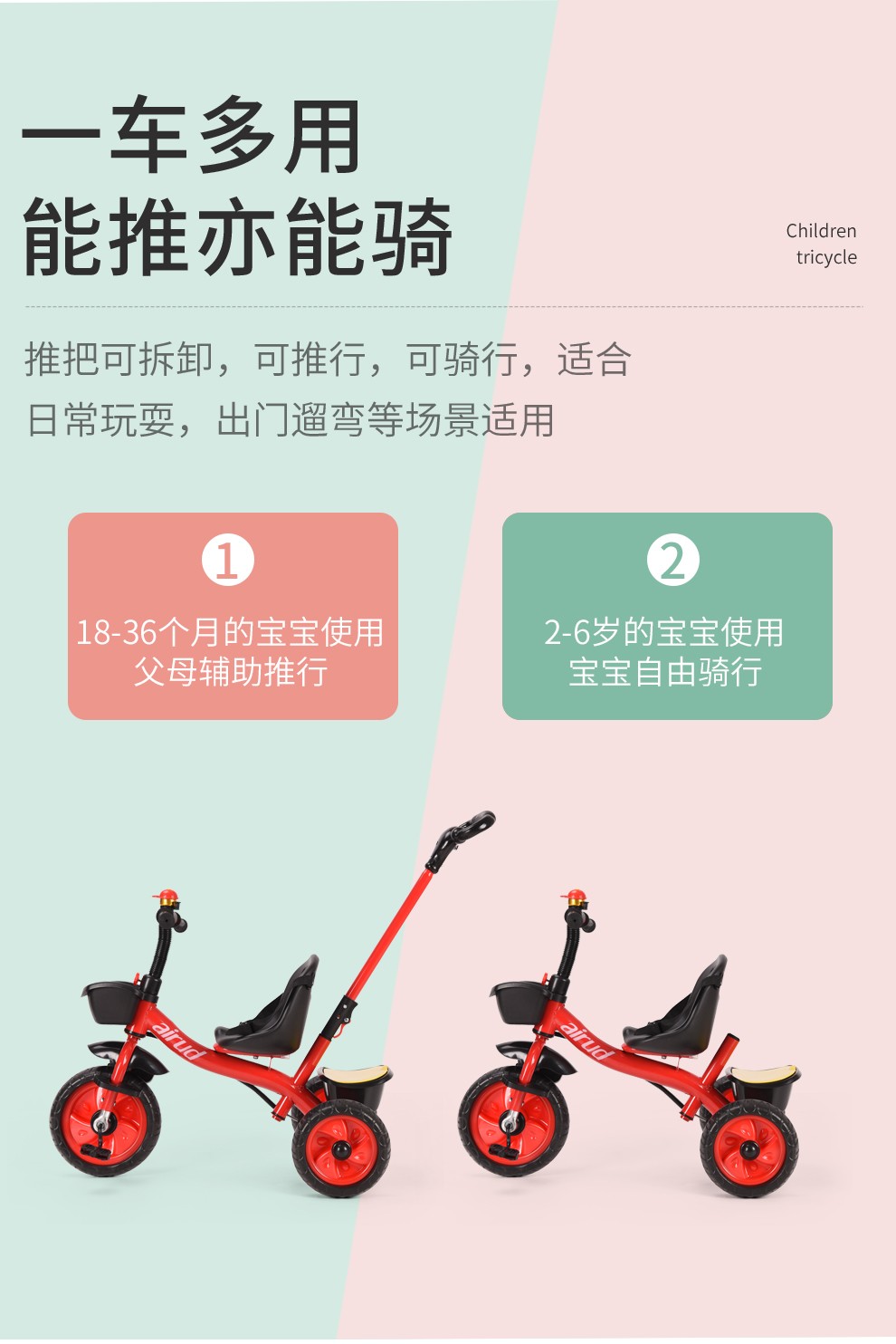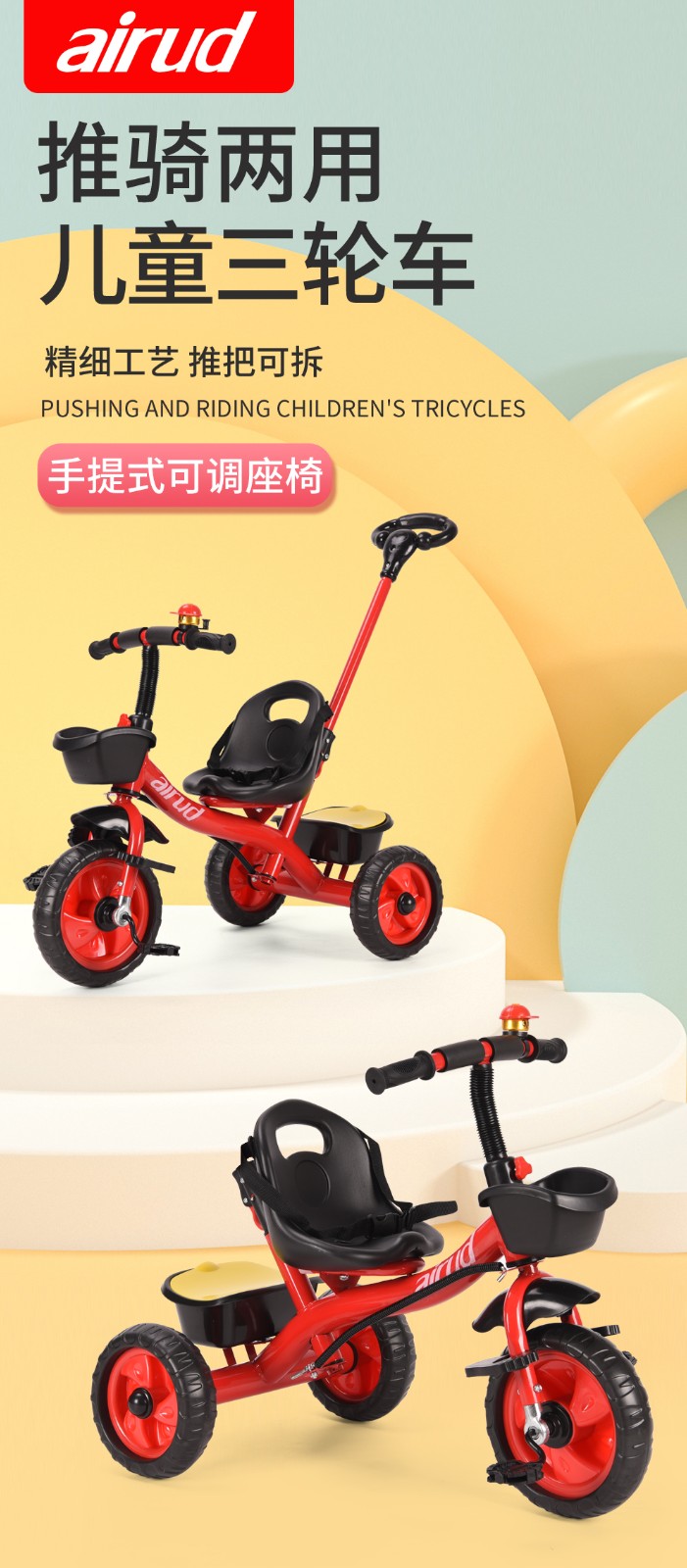 airud/(艾瑞迪)儿童三轮脚踏车手推车HB-AMS02黑色