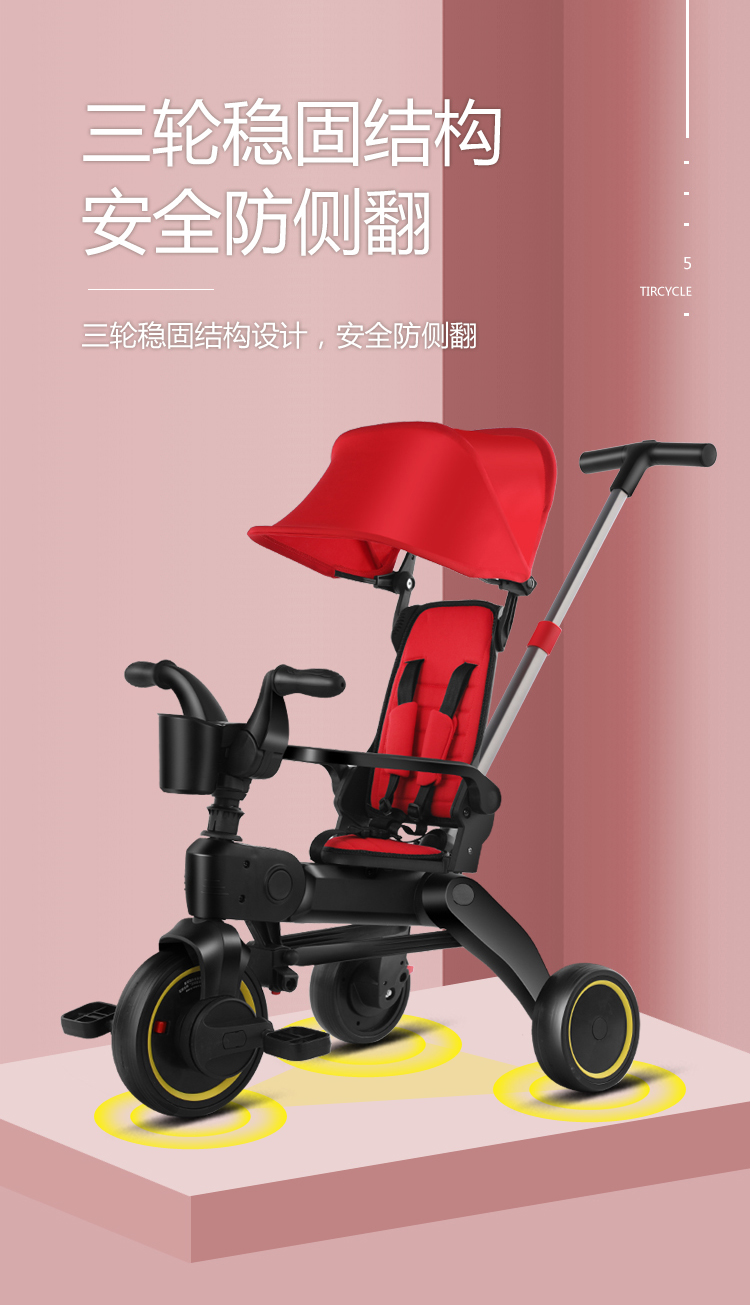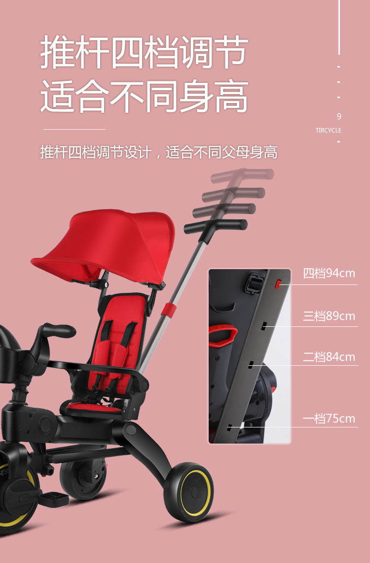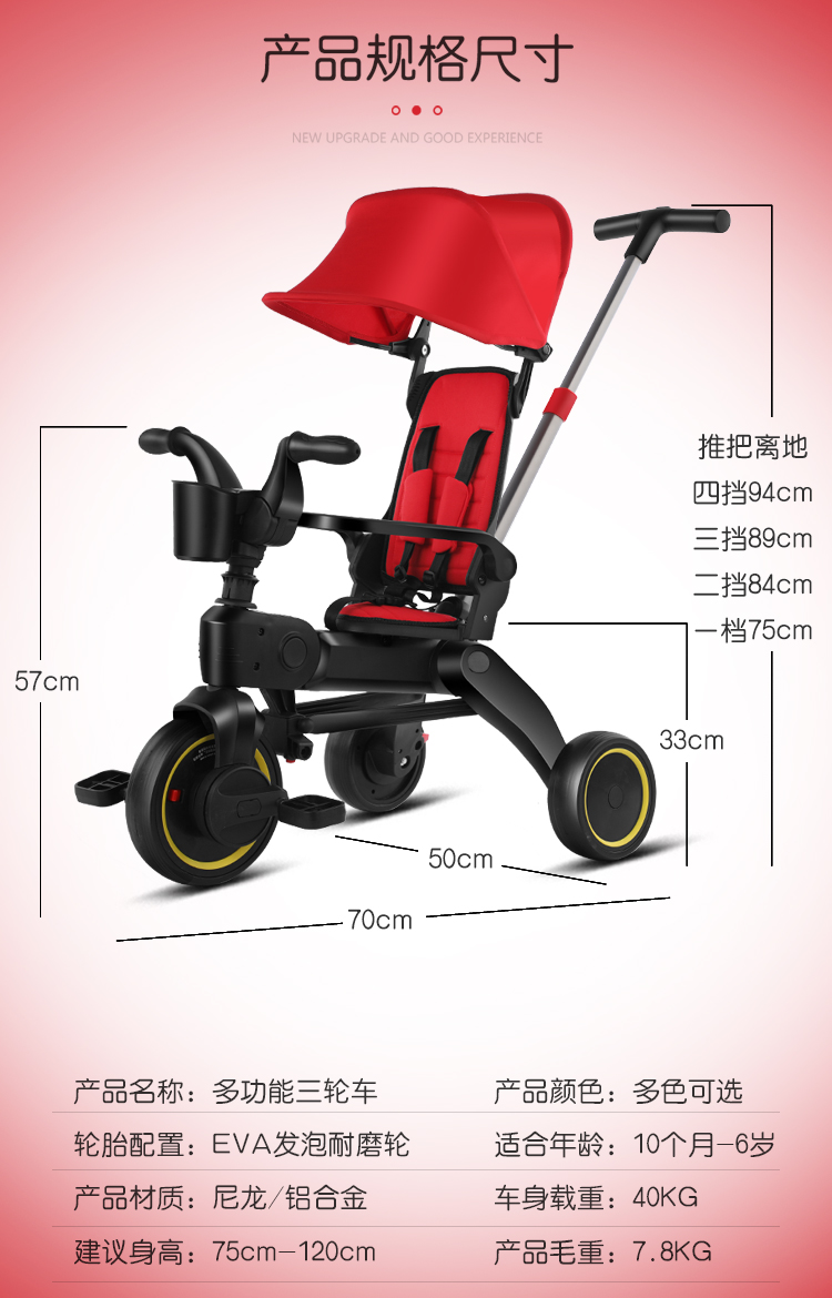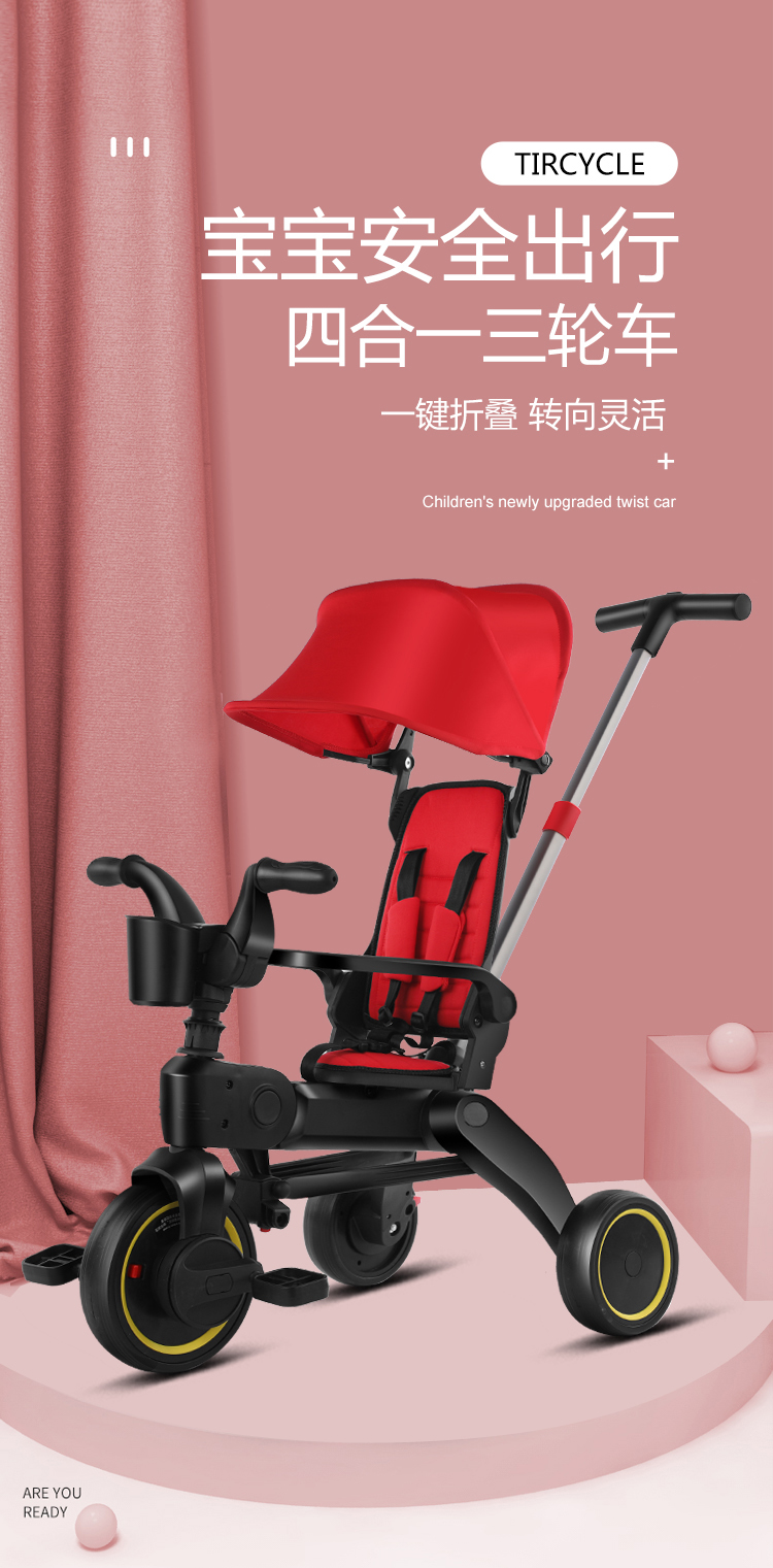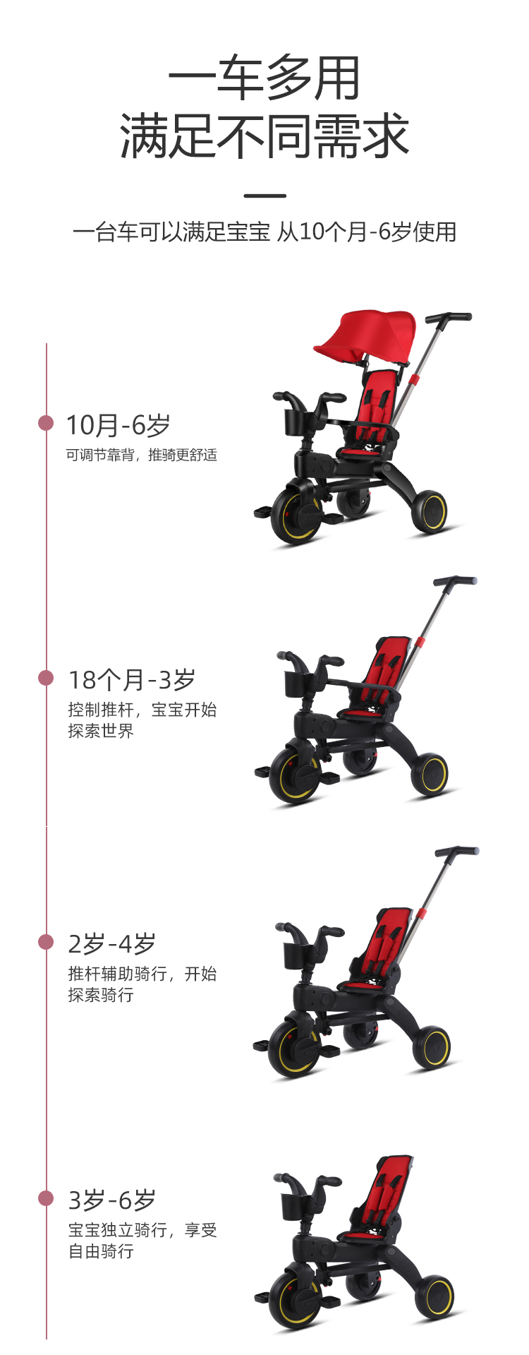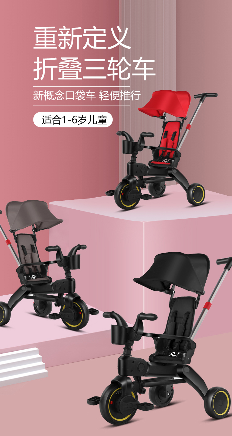 airud/(艾瑞迪)儿童折叠多功能车HB-AMD01灰色 HB-AMD01黑色 HB-AMD01红色