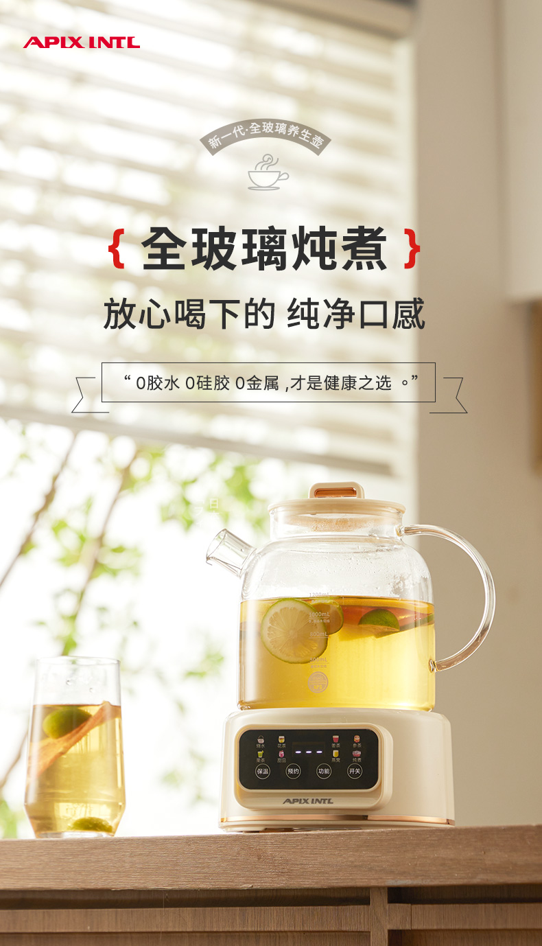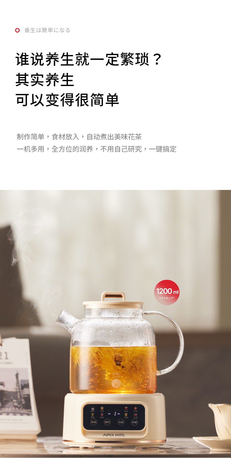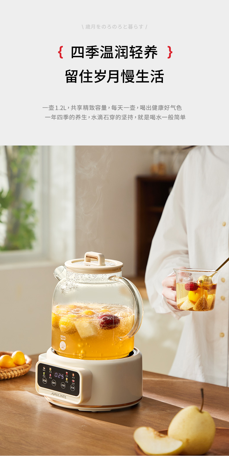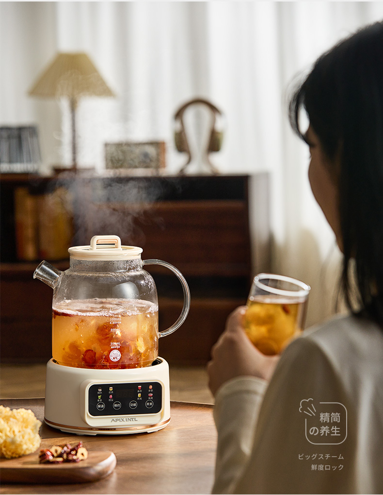 APIXINTL安本素1.2L全玻璃养生壶 家用烧水壶迷你煮茶壶 保温一体办公室多功能全自动花茶壶恒温壶