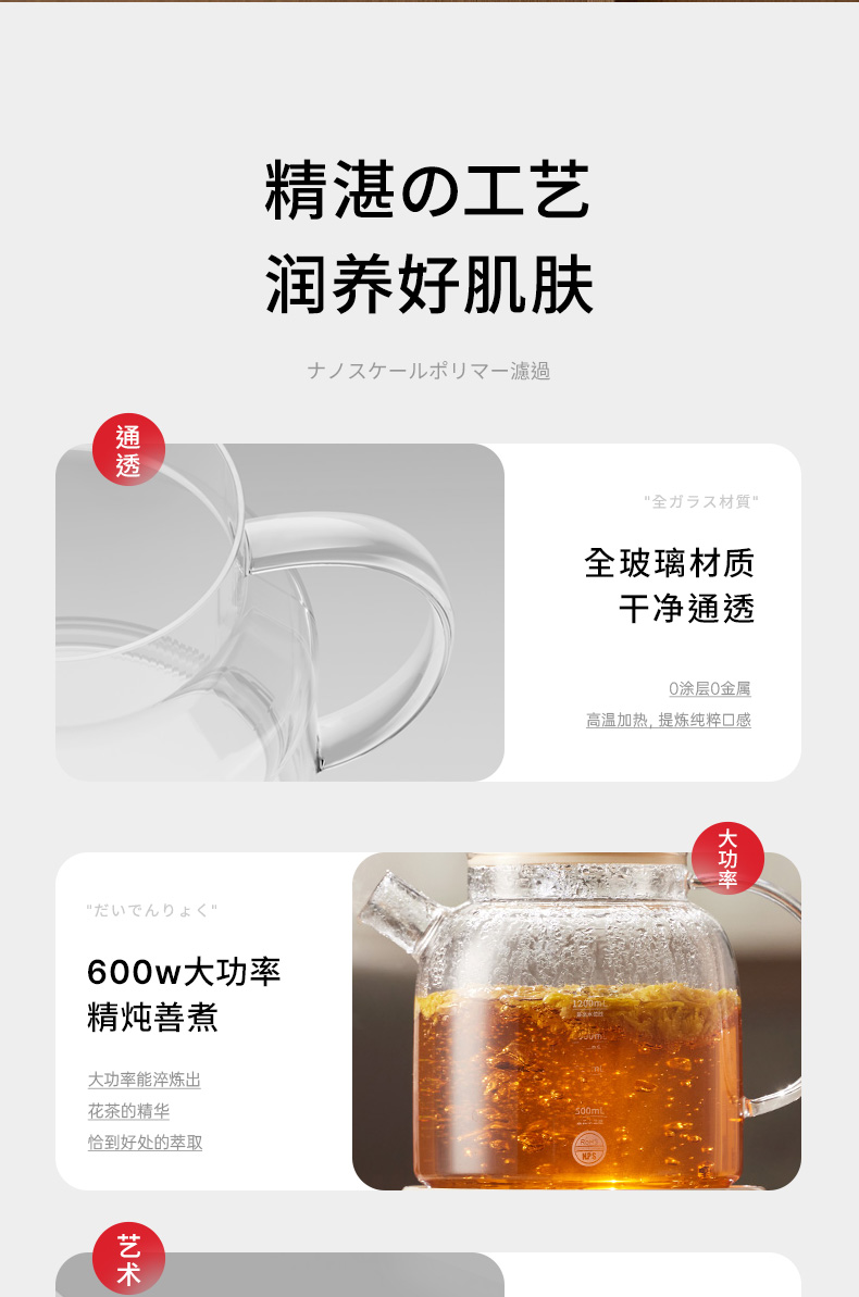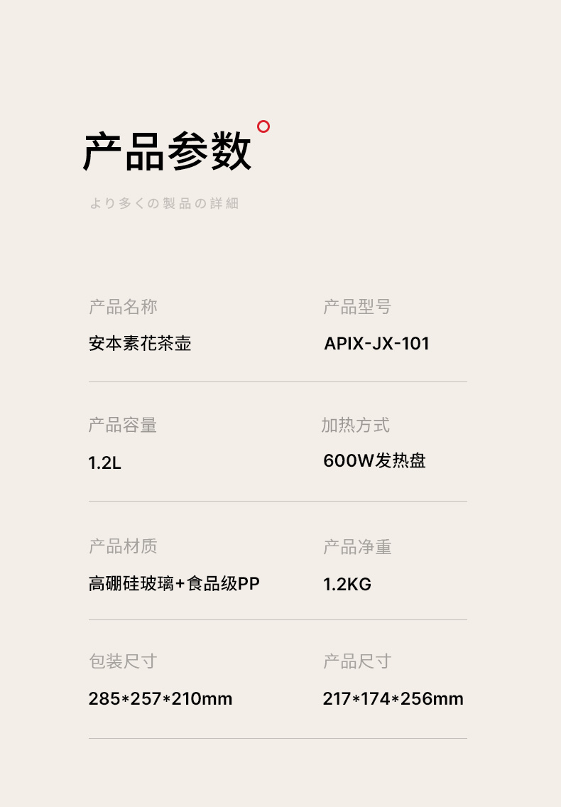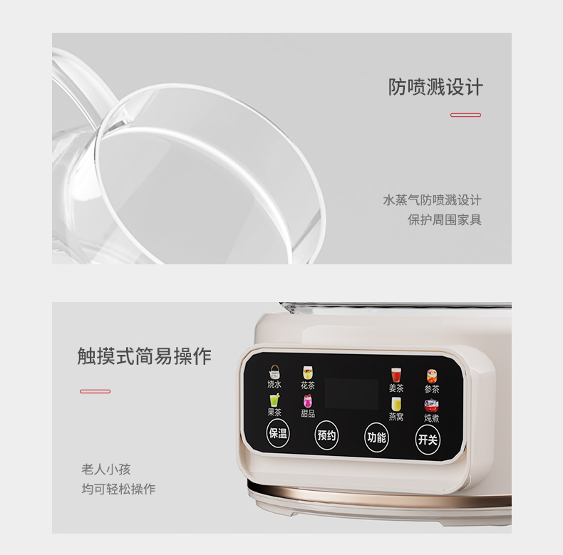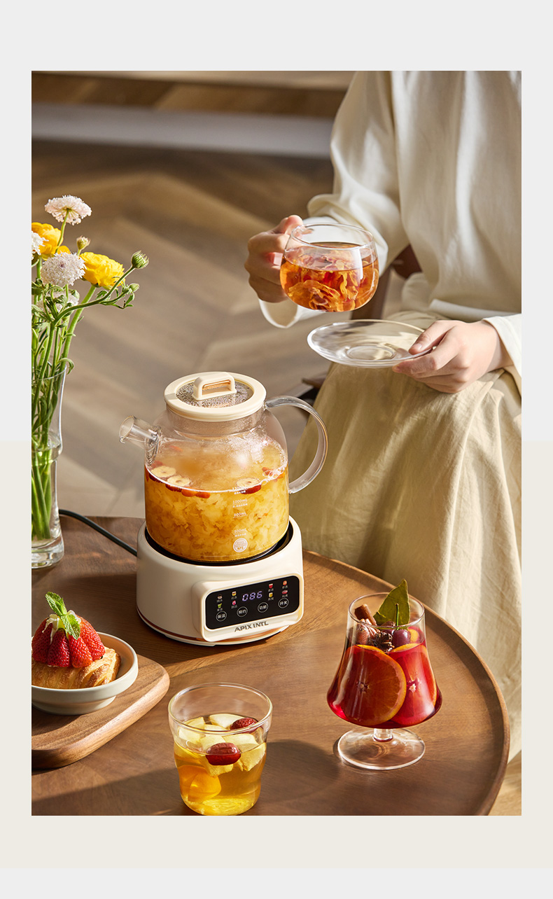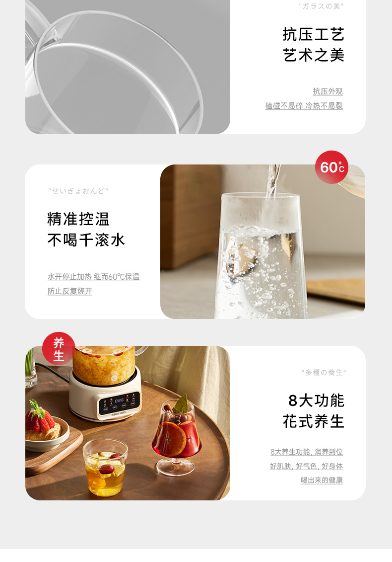 APIXINTL安本素1.2L全玻璃养生壶 家用烧水壶迷你煮茶壶 保温一体办公室多功能全自动花茶壶恒温壶