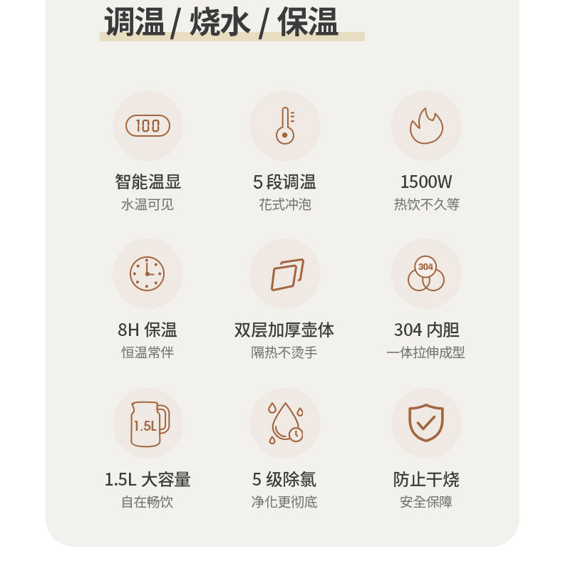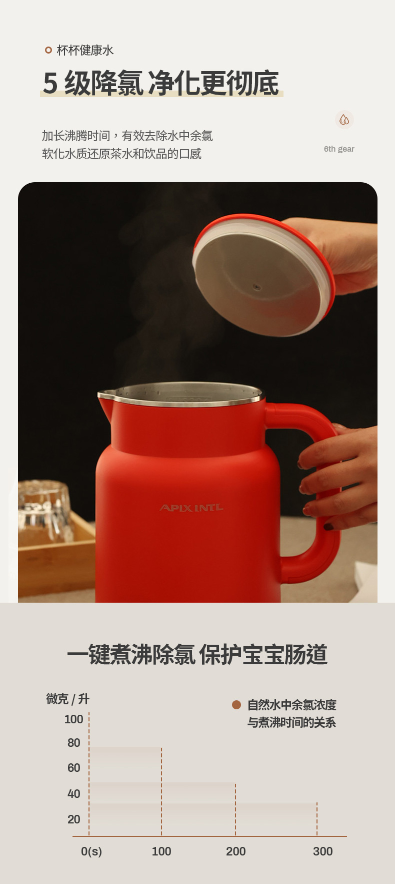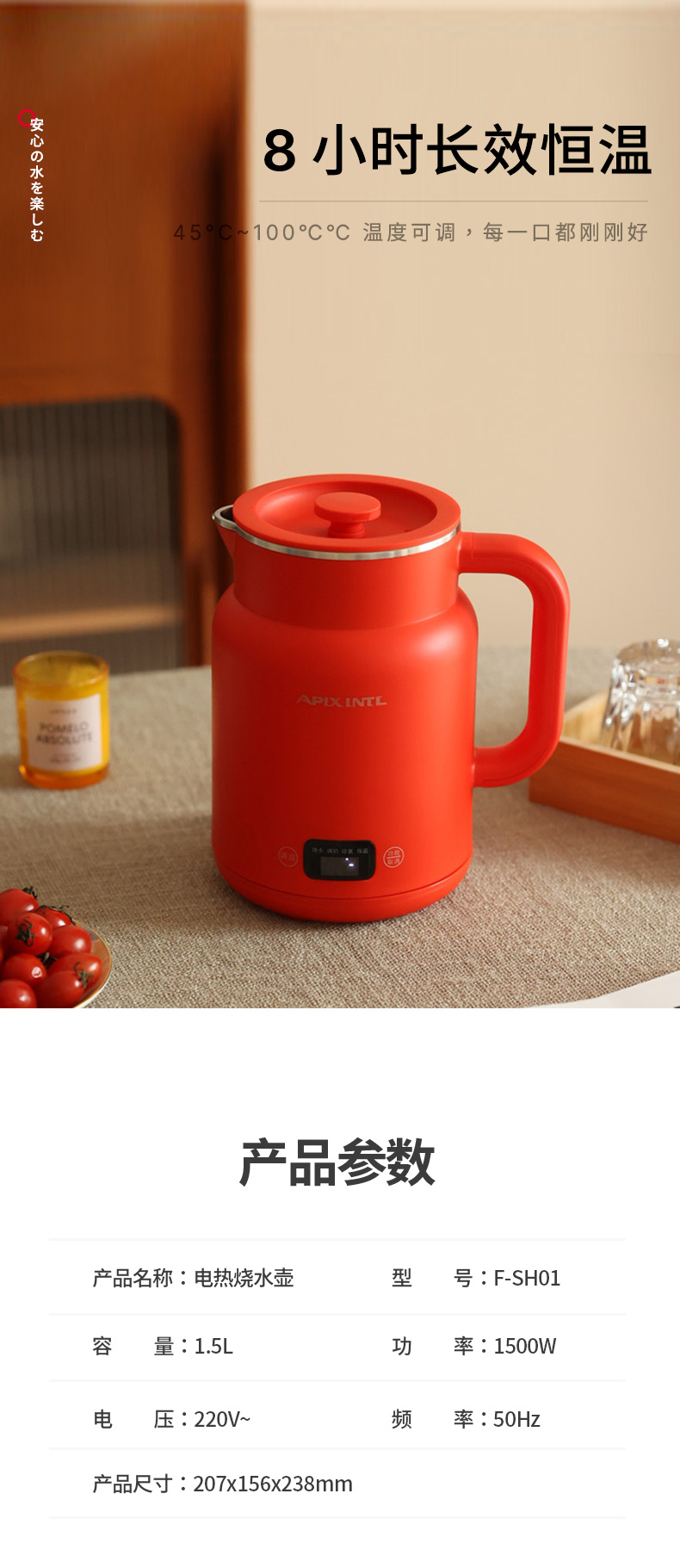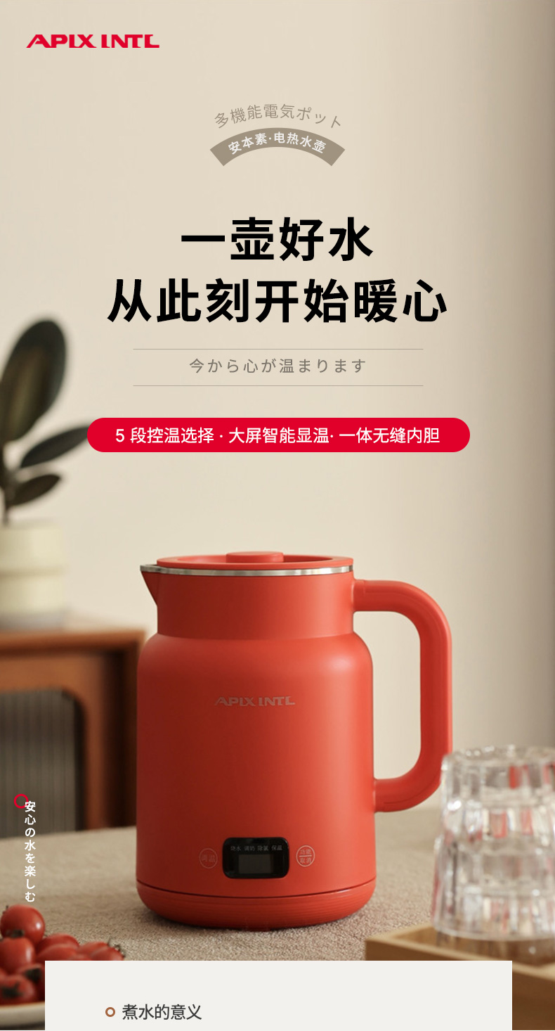 APIXINTL安本素 便携式烧水壶大容量多功能电热水壶加热恒温旅行壶