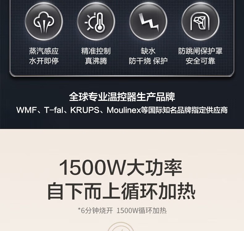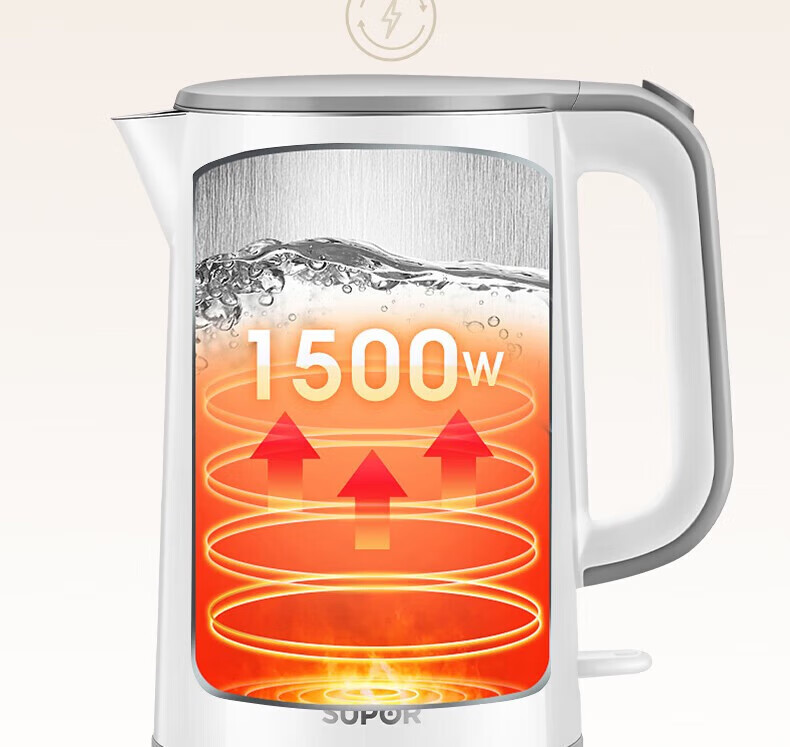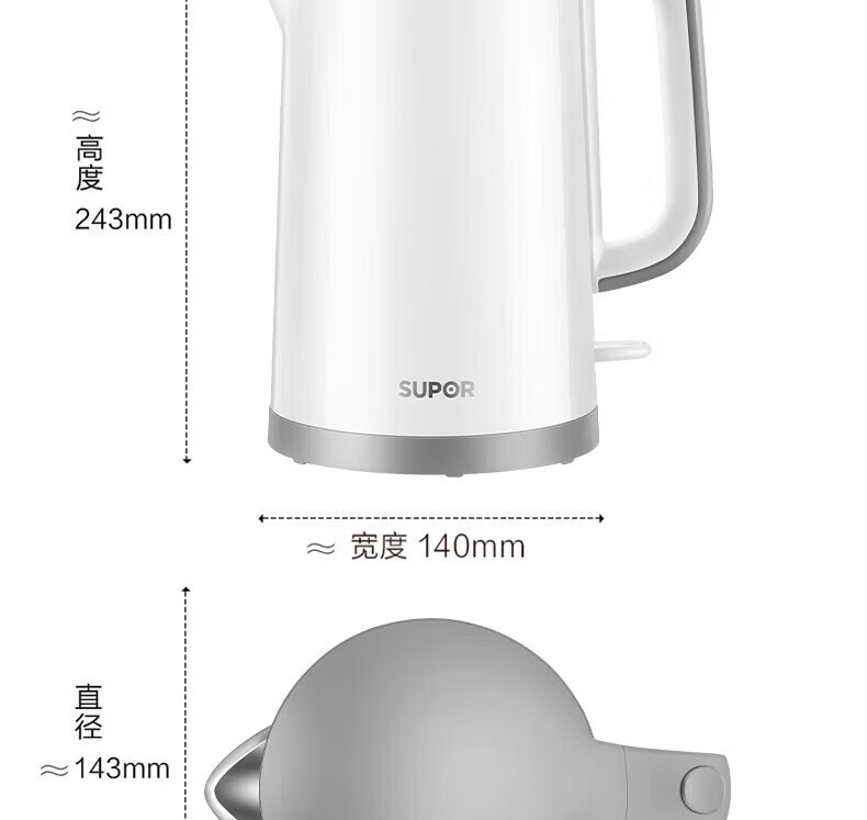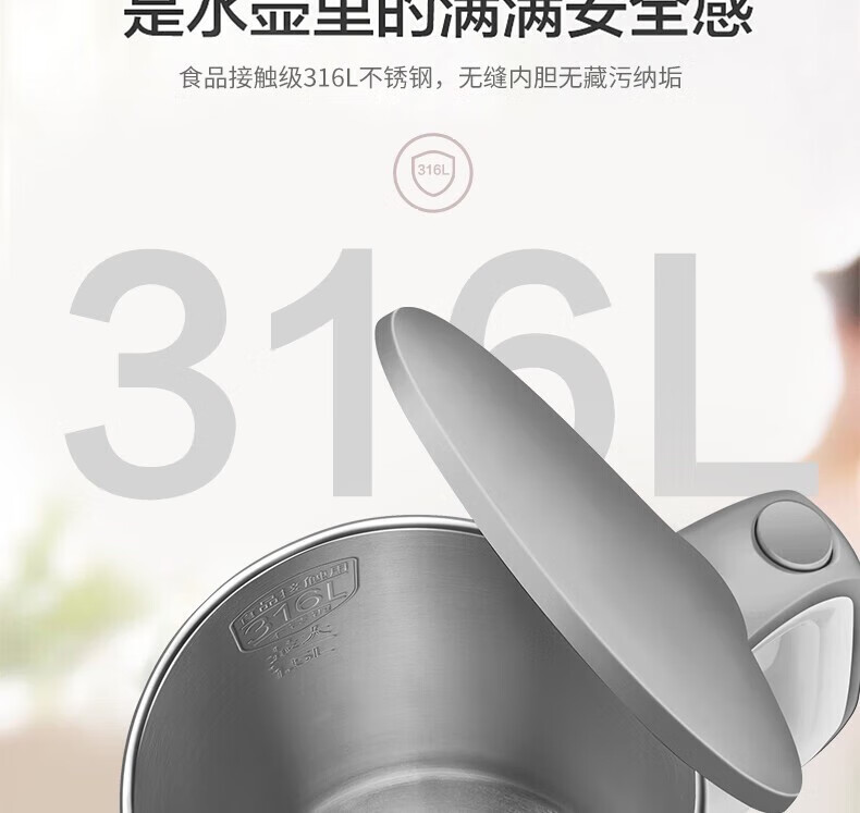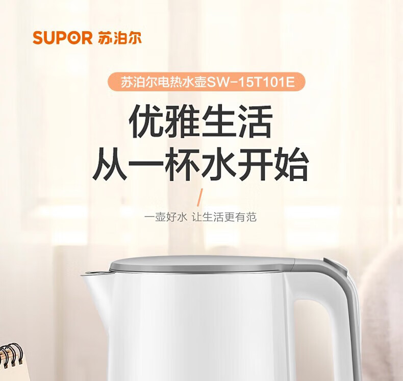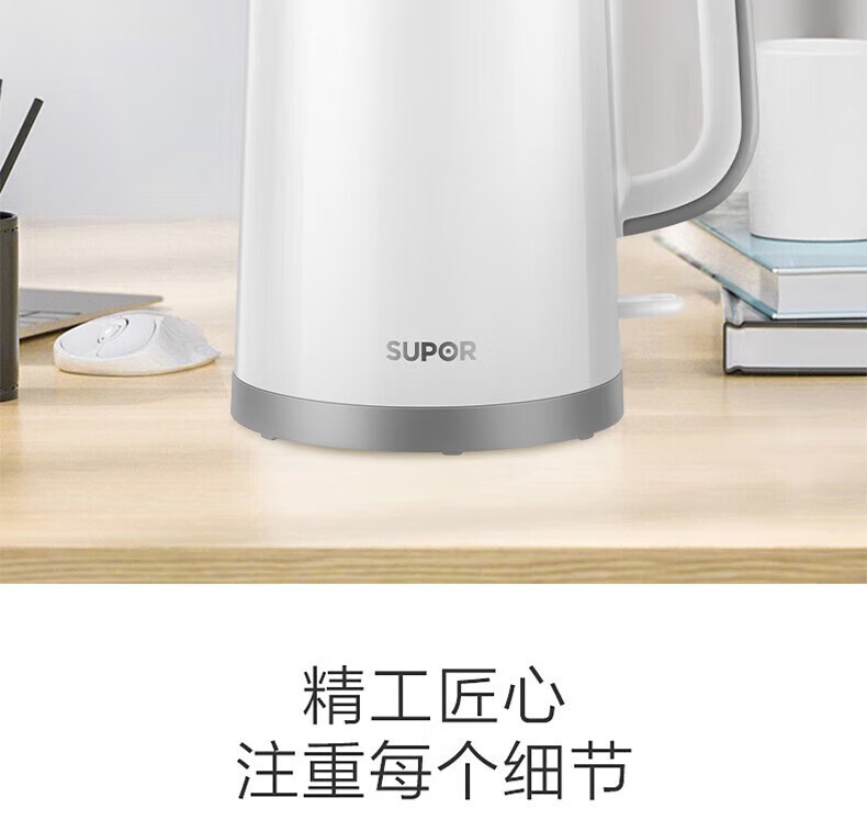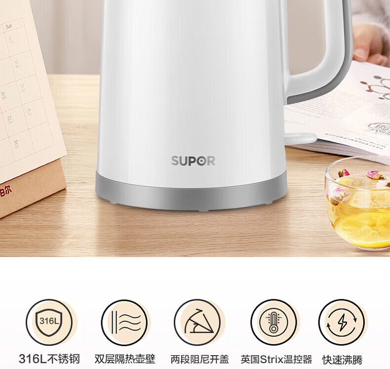 苏泊尔(SUPOR)电水壶双层保温防烫热水壶1500W大功率 全钢无缝316L不锈钢内胆电烧水壶家用1.7升 SW-17S16L 黑色