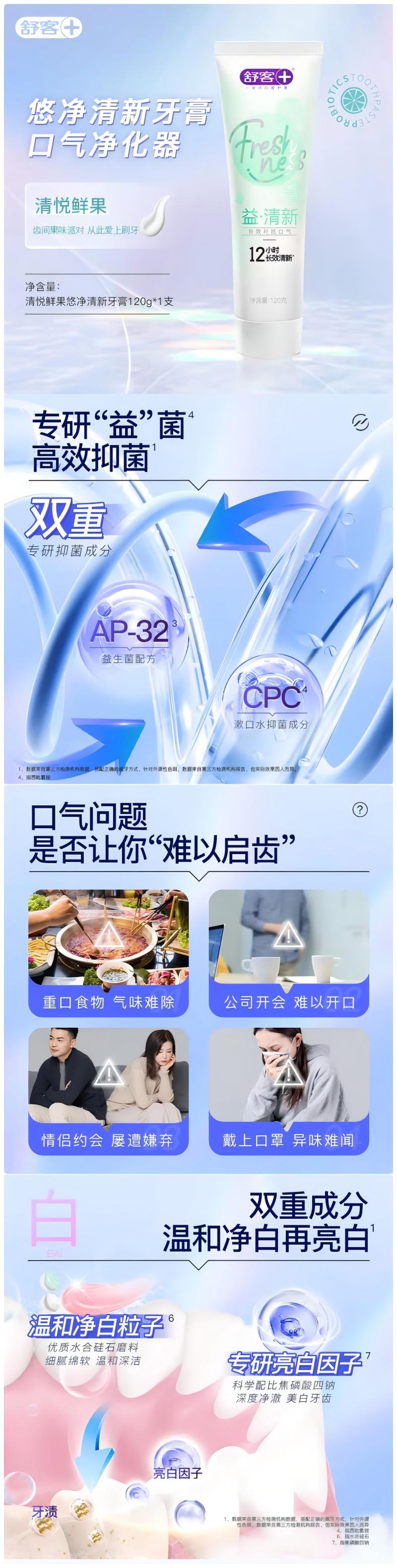 舒客悠净清新益生菌牙膏 120克 多规格(新老包装随机发货)
