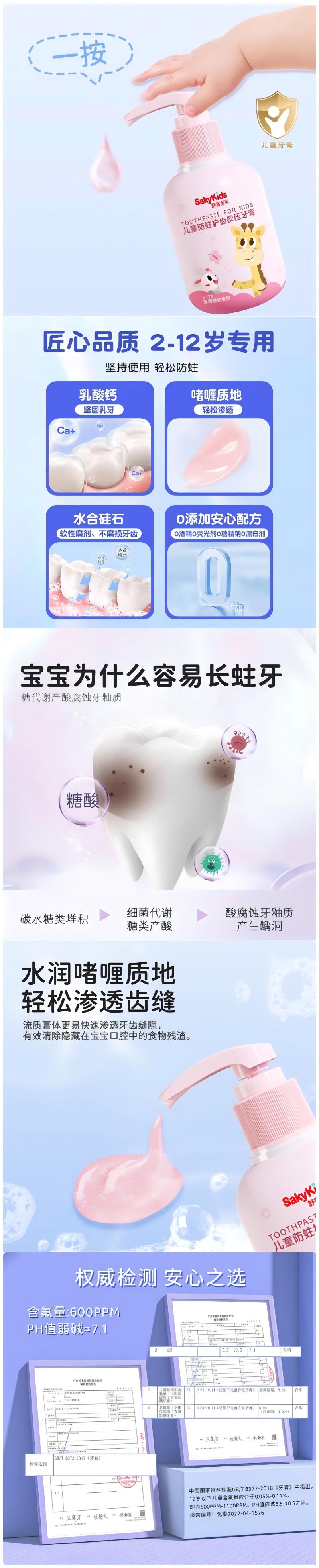 舒客宝贝儿童防蛀护齿按压牙膏150g 多规格
