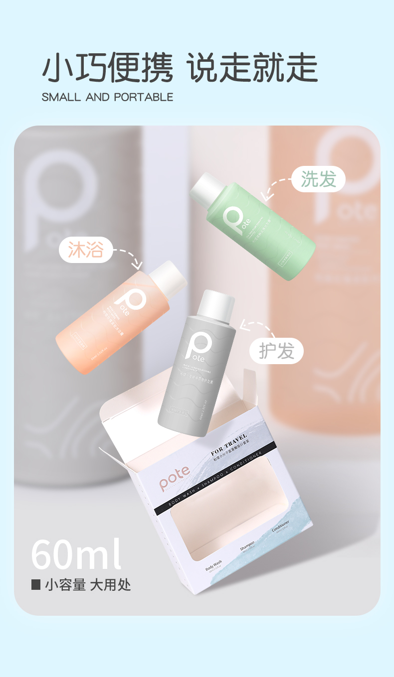 洗发水60ml+沐浴露60ml+护发素60ml