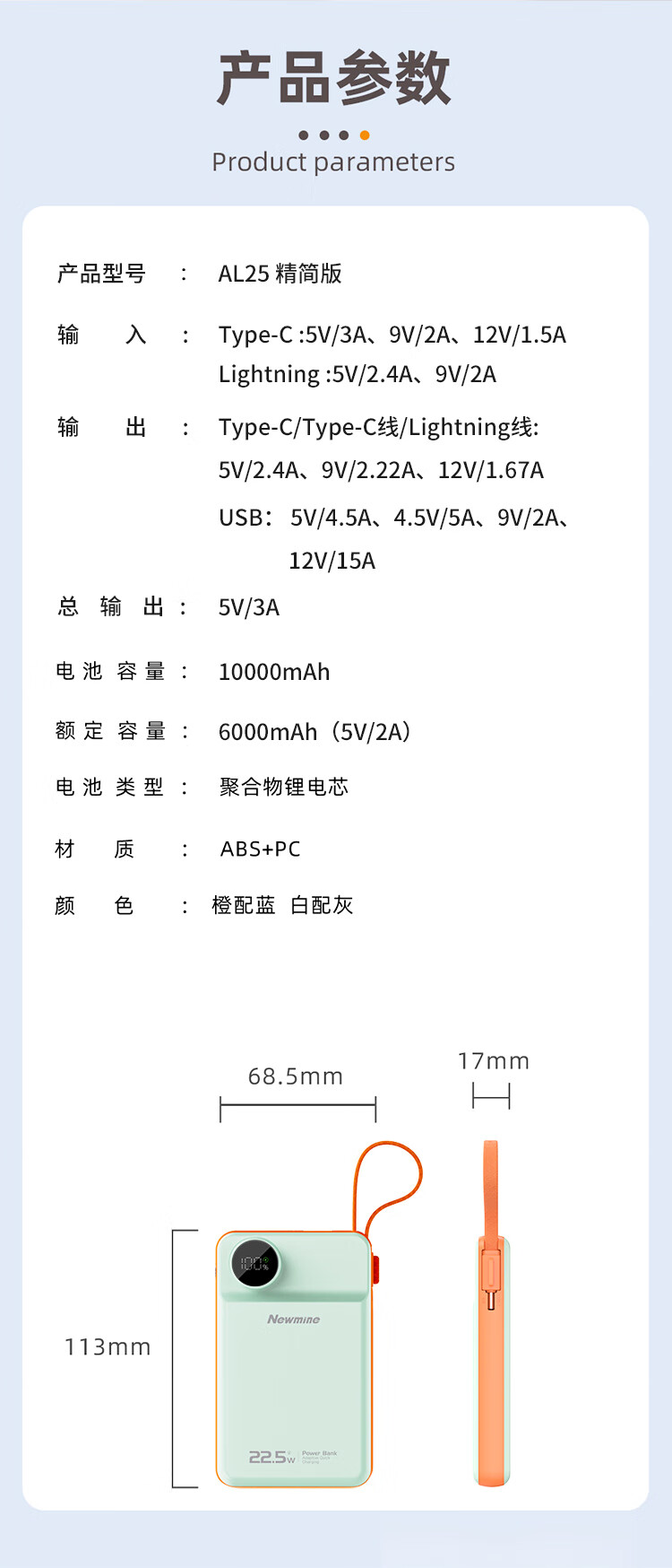 纽曼 磁吸22.5W快充1万毫安 AL25