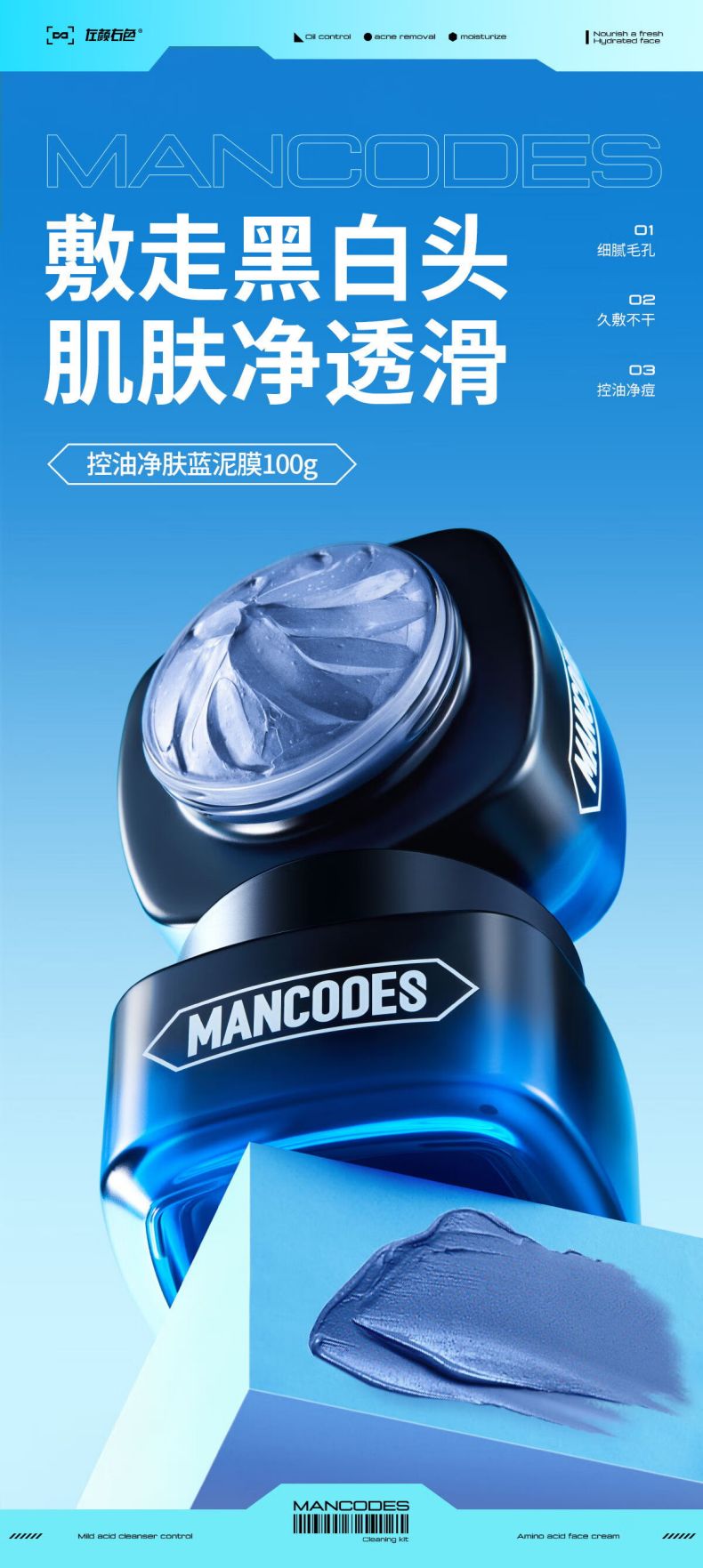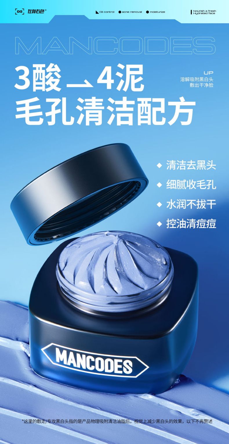 左颜右色净透清洁蓝泥膜100g男士面膜控油收毛孔保湿清洁涂抹护肤品