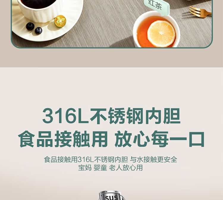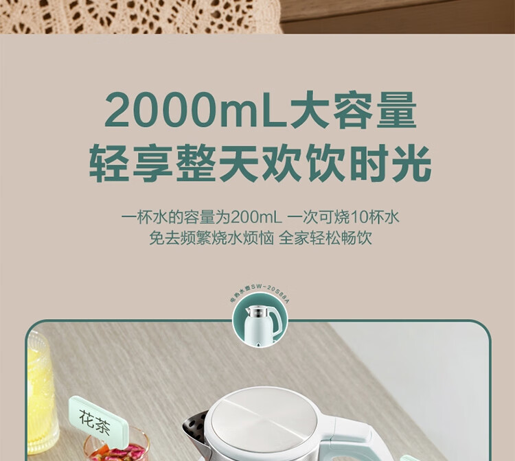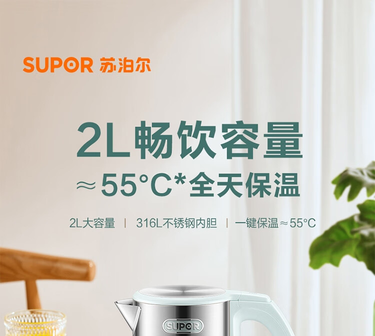 苏泊尔(SUPOR)ZMD安心系列 2L大容量 1800W大功率 316L不锈钢机身 一键保温电水壶SW-20S88A SW-20S88A