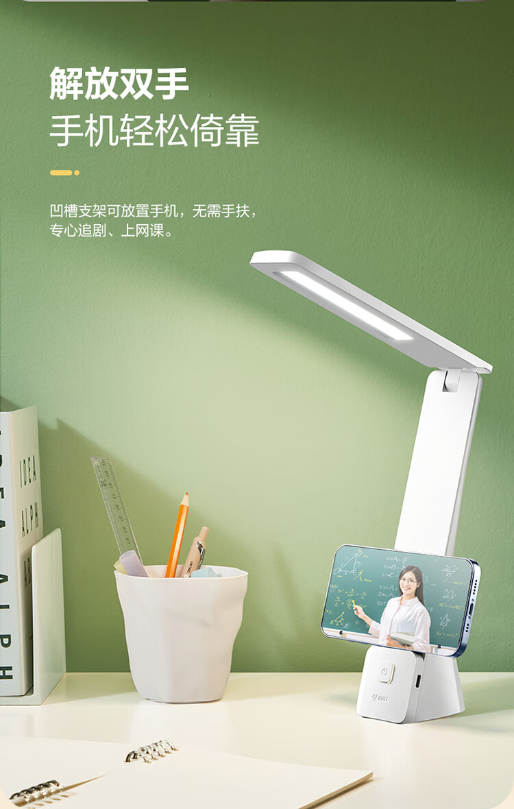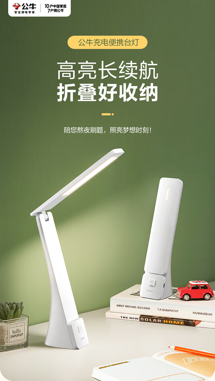 BULL公牛ML-JFB150A-DS无极调光米黄充电折叠台灯
