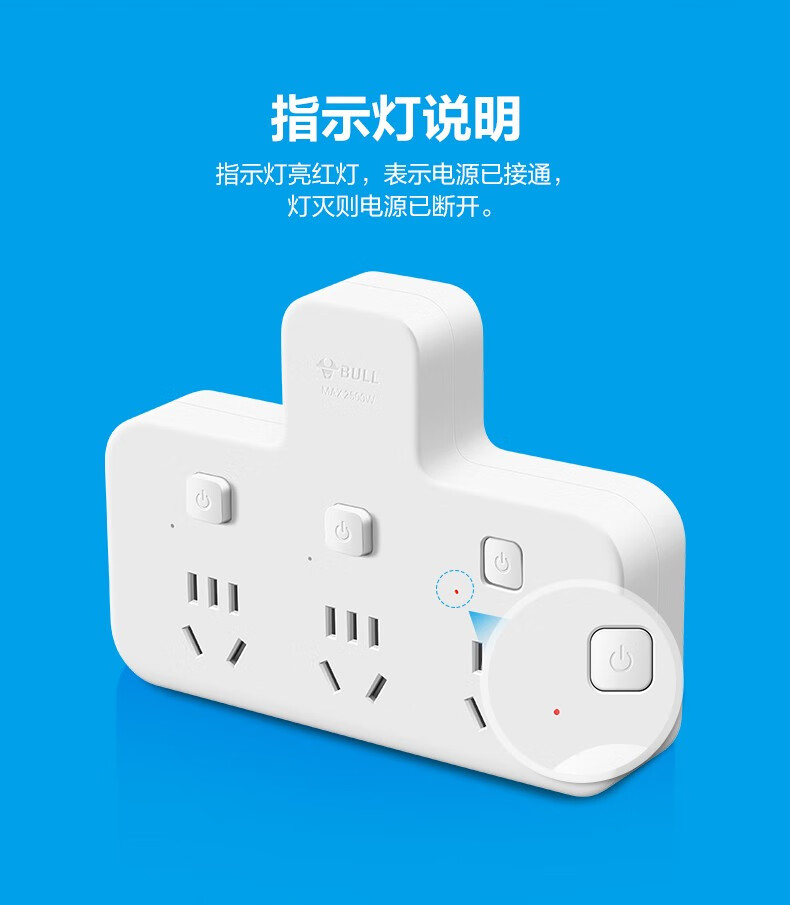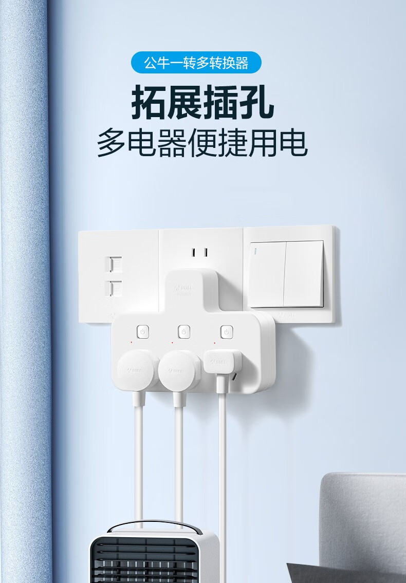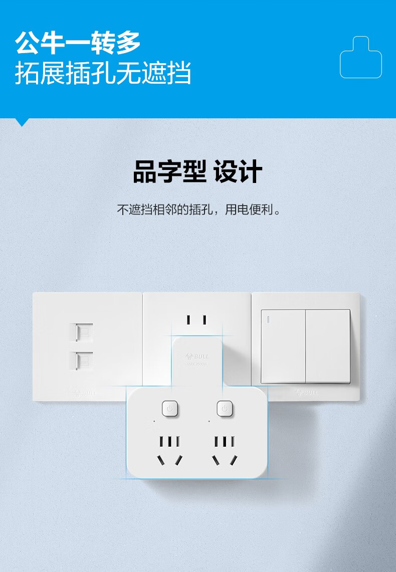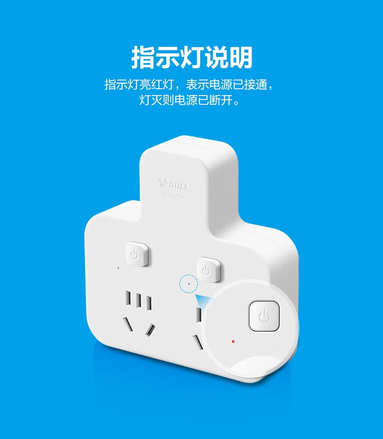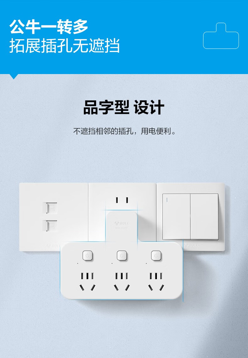 BULL公牛98033吸塑装品字形晴空蓝一转多转换器