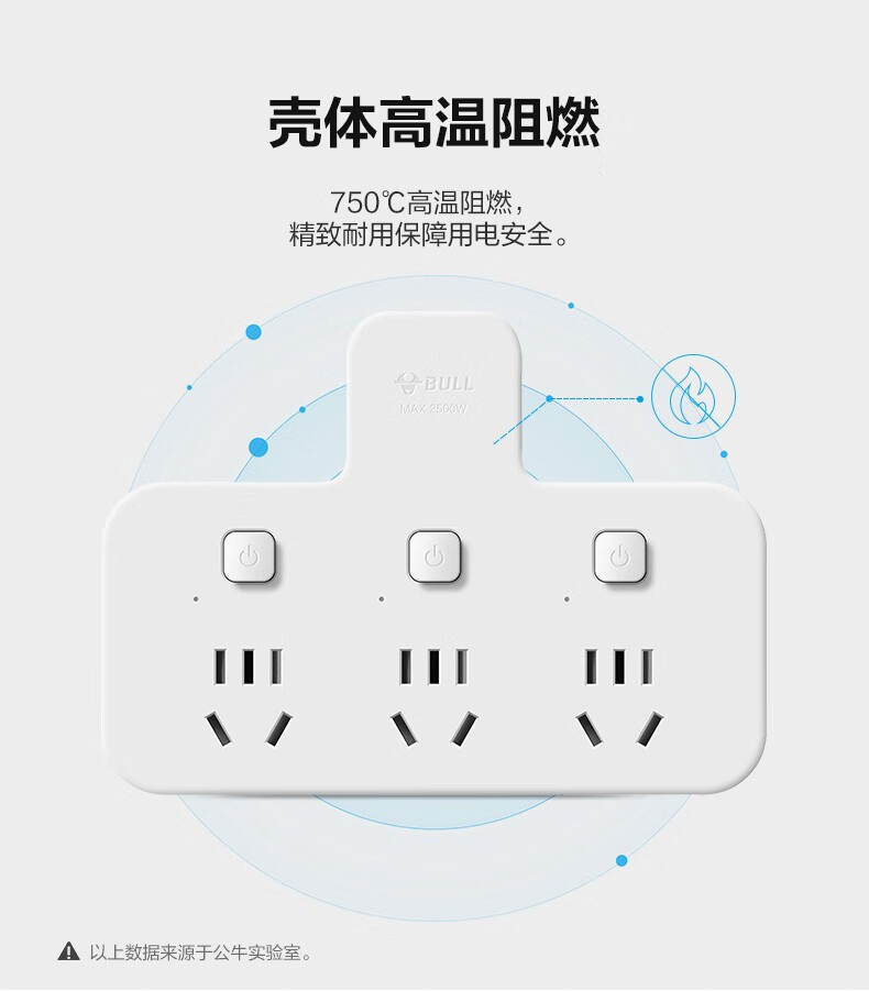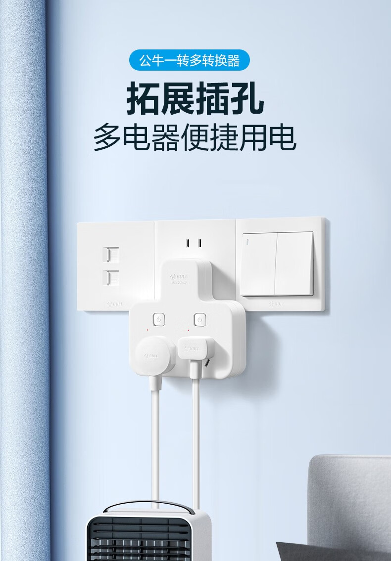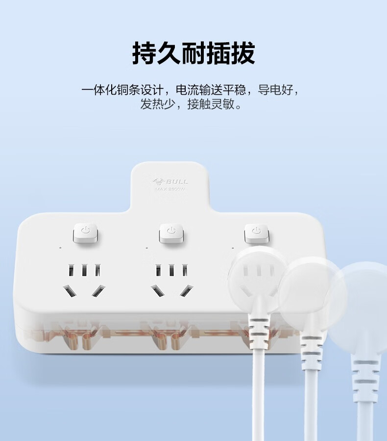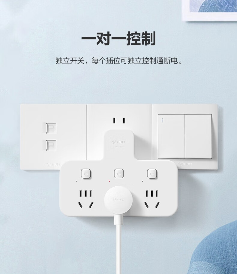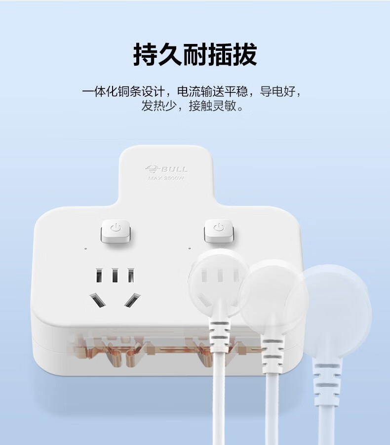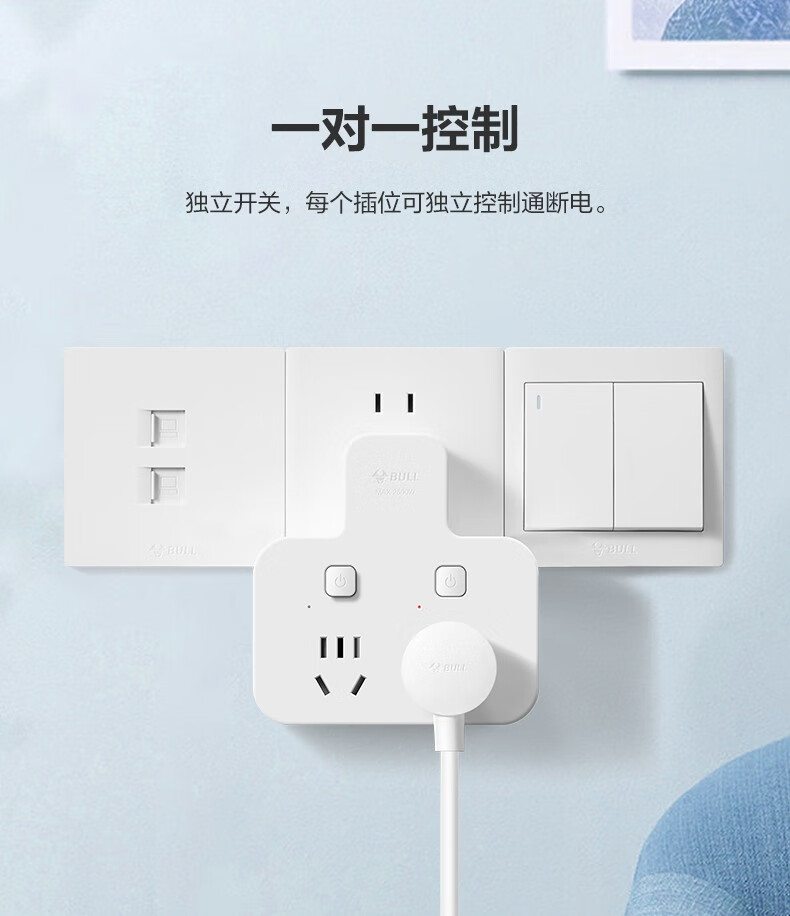 BULL公牛98033吸塑装品字形晴空蓝一转多转换器