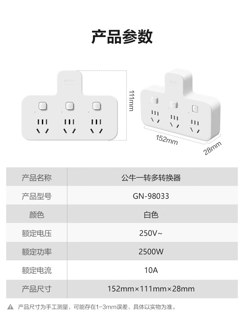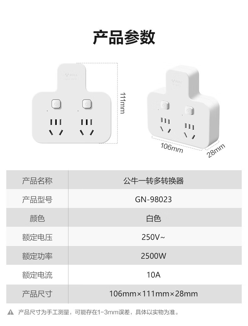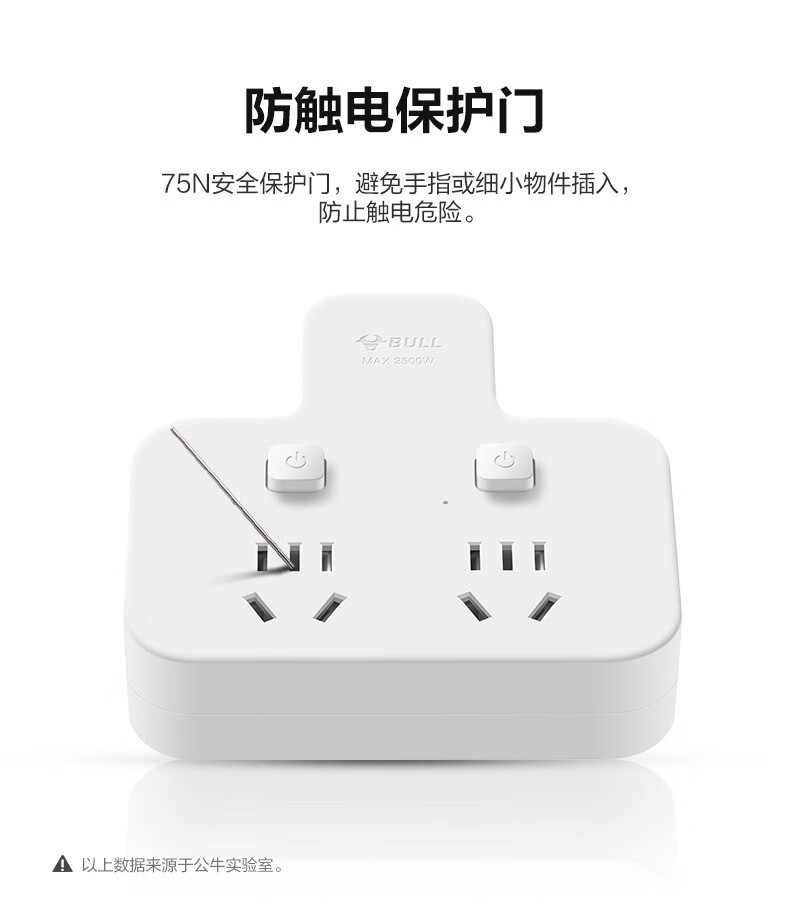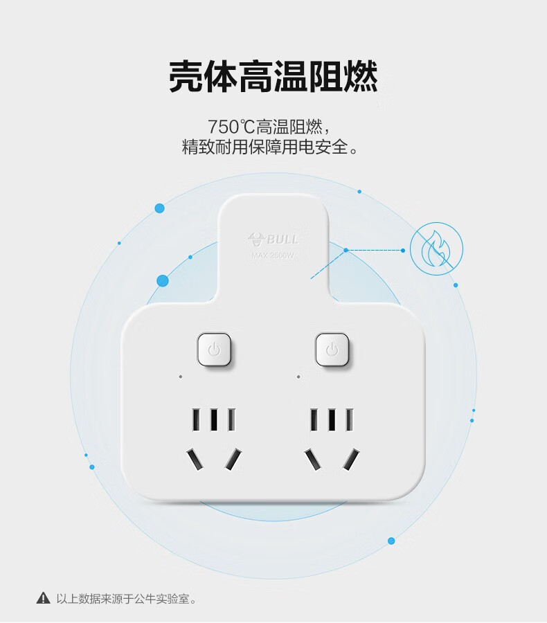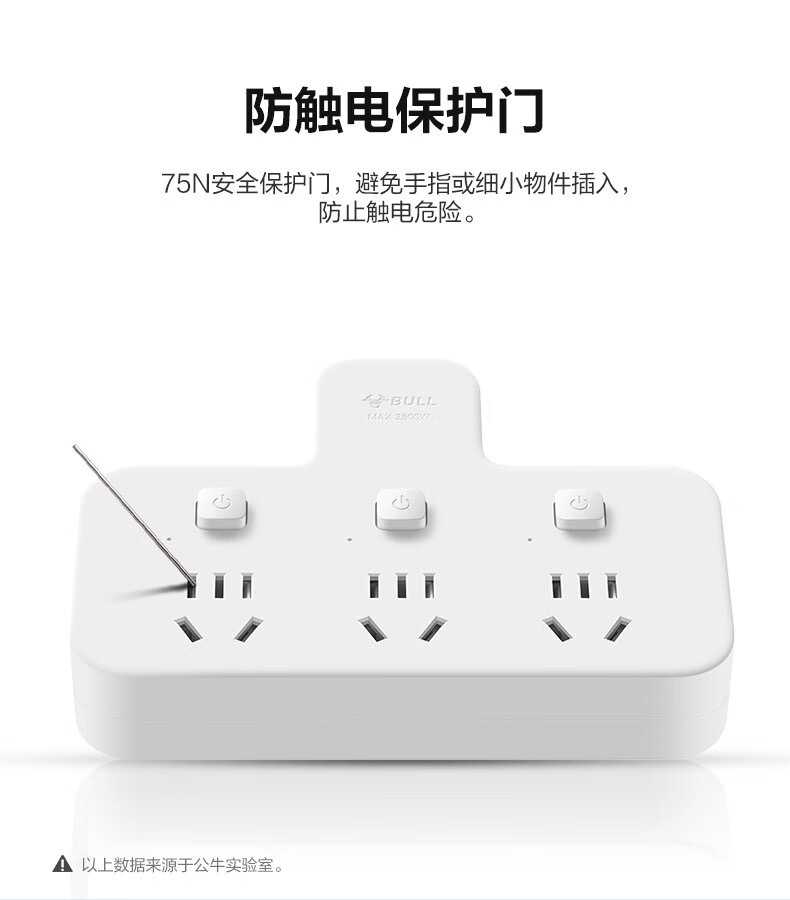 BULL公牛98033吸塑装品字形晴空蓝一转多转换器