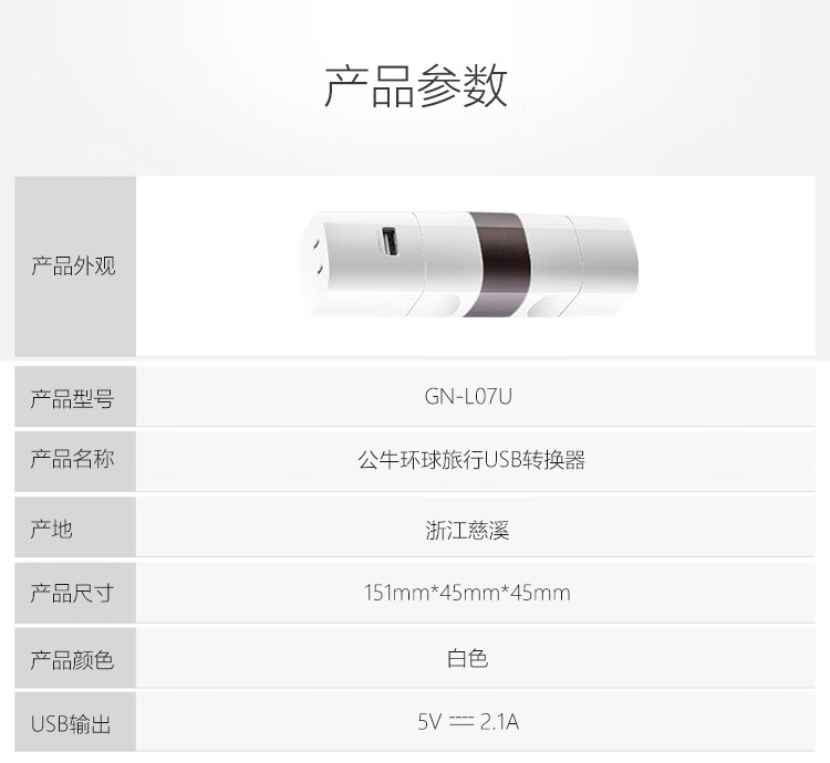 L07U (带USB)转换器/插头