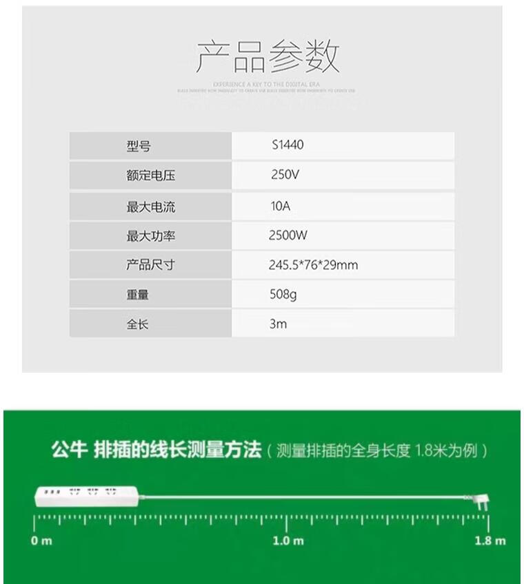 BULL公牛S1440袋装延长线插座