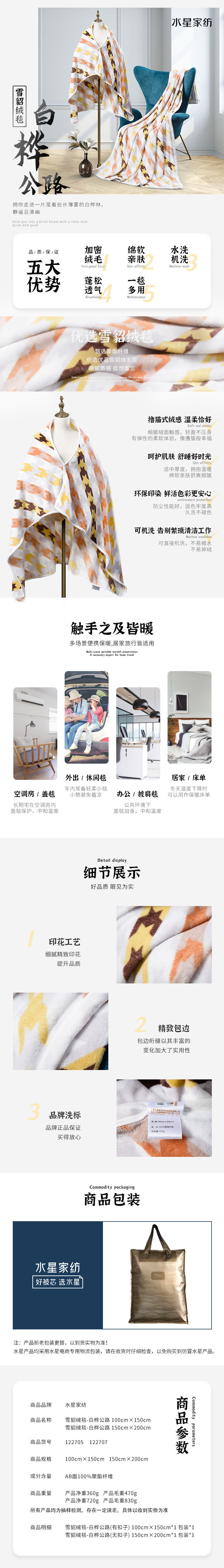 白桦公路雪貂绒毯 122707