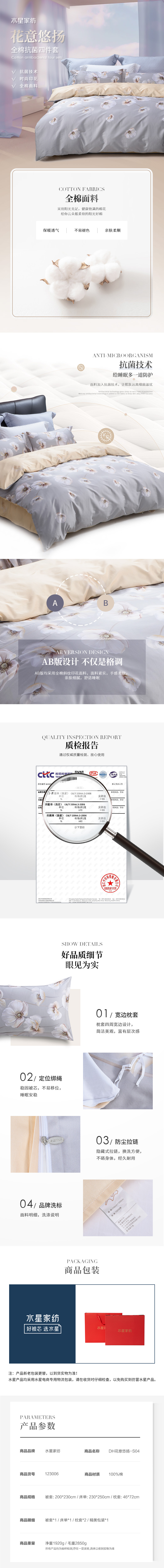 全棉抗菌四件套——花意悠扬 123006