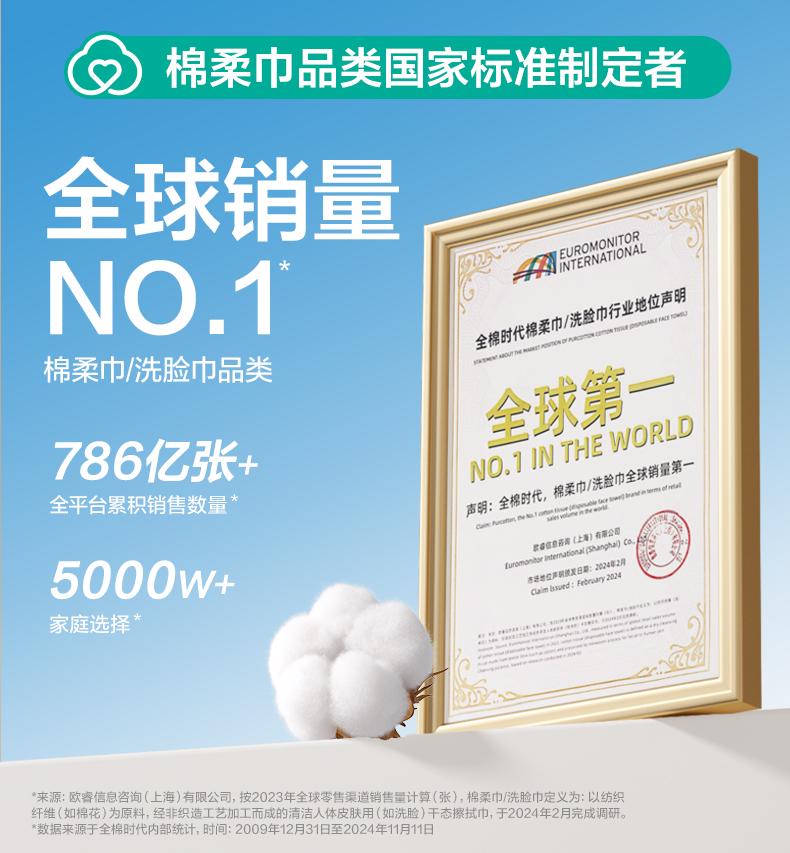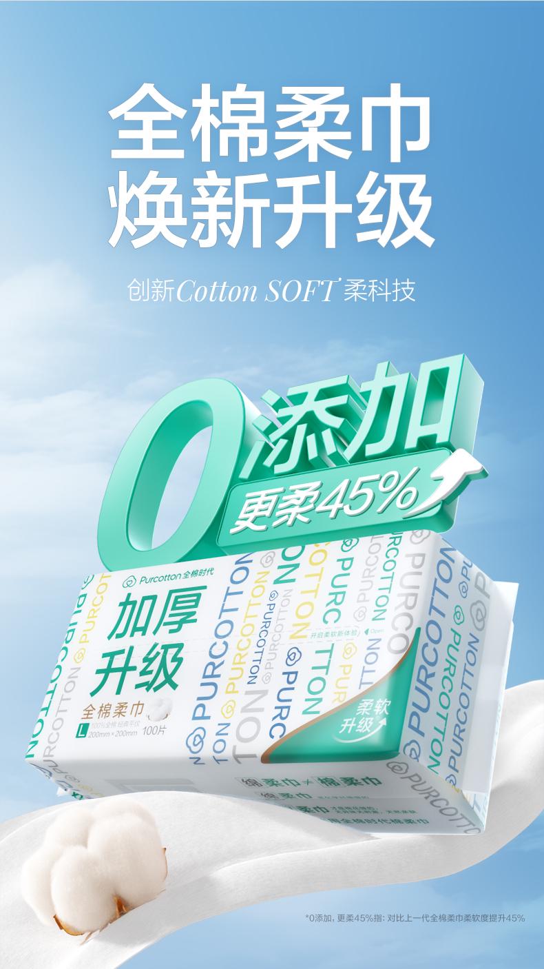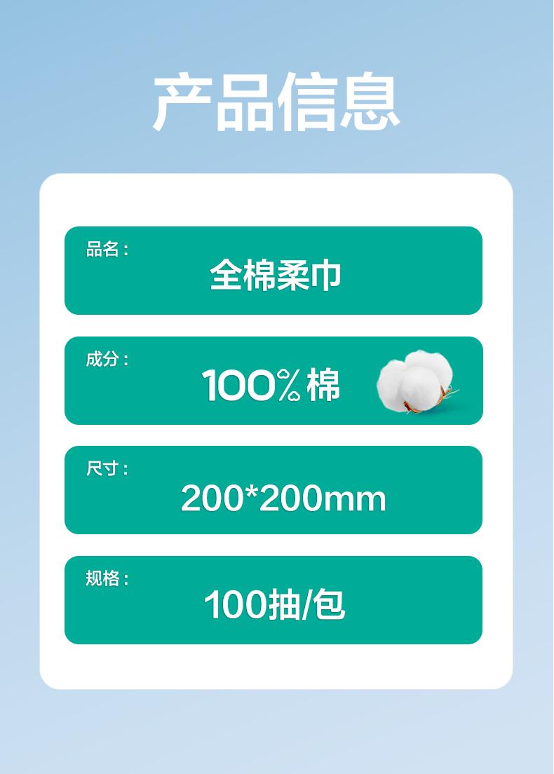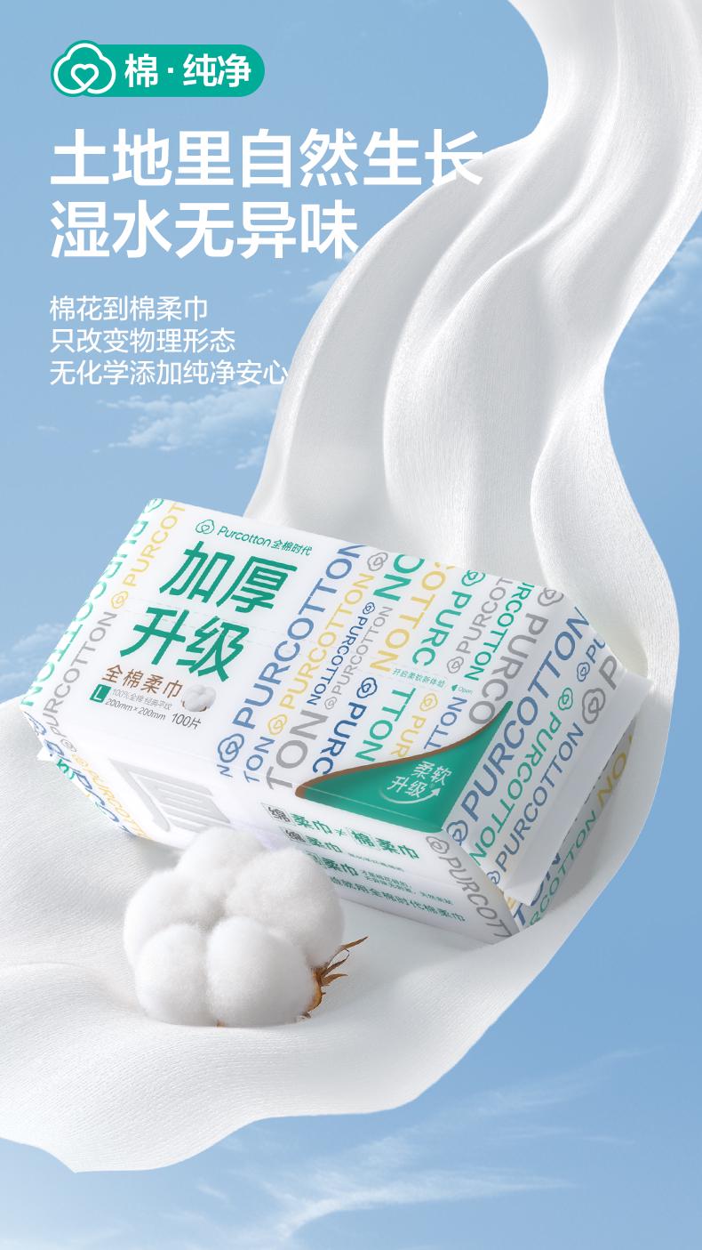 全棉时代100%棉 悬挂式洗脸巾 棉柔巾45GSM 200*200mm 300抽*1包
