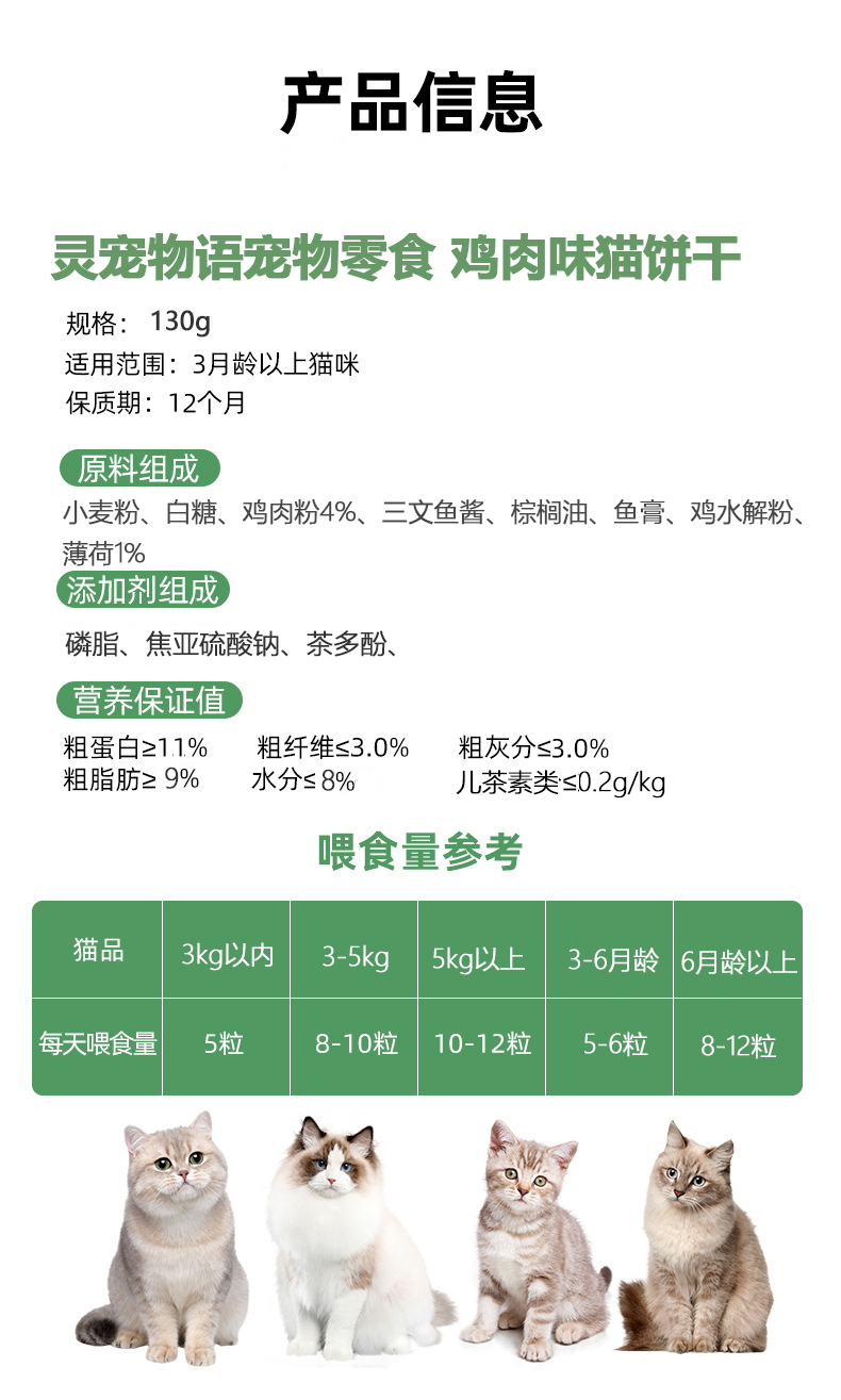 灵宠物语宠物零食鸡肉味猫饼干150g