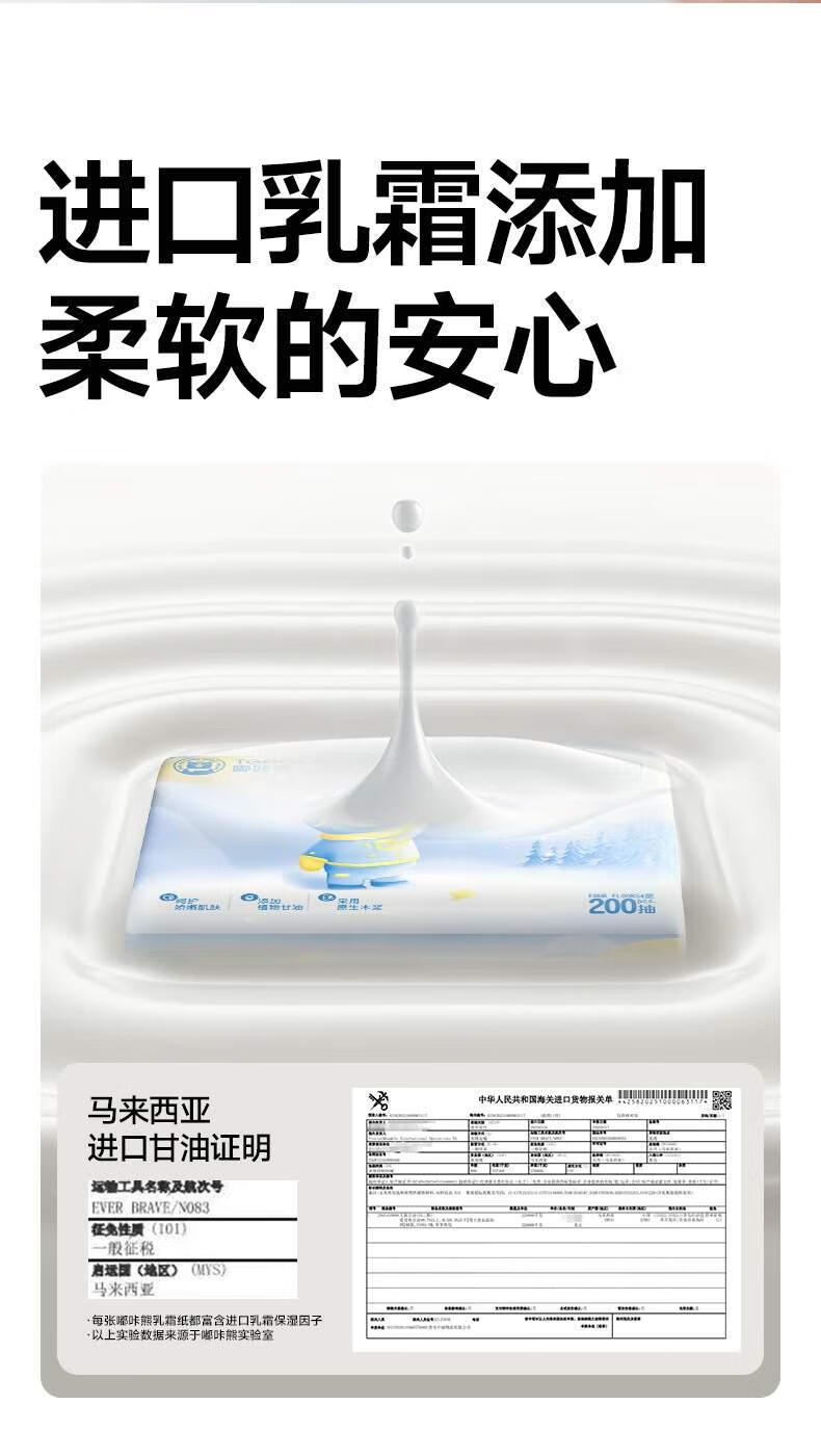 嘟咔熊 乳霜纸保湿纸 云绒柔纸巾 擦鼻涕软抽纸 200抽 多规格