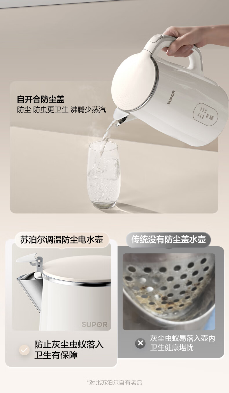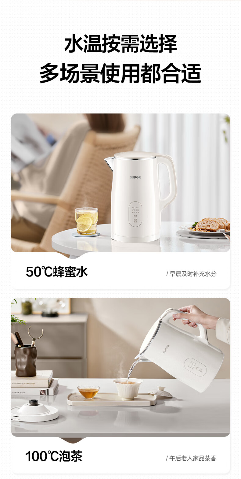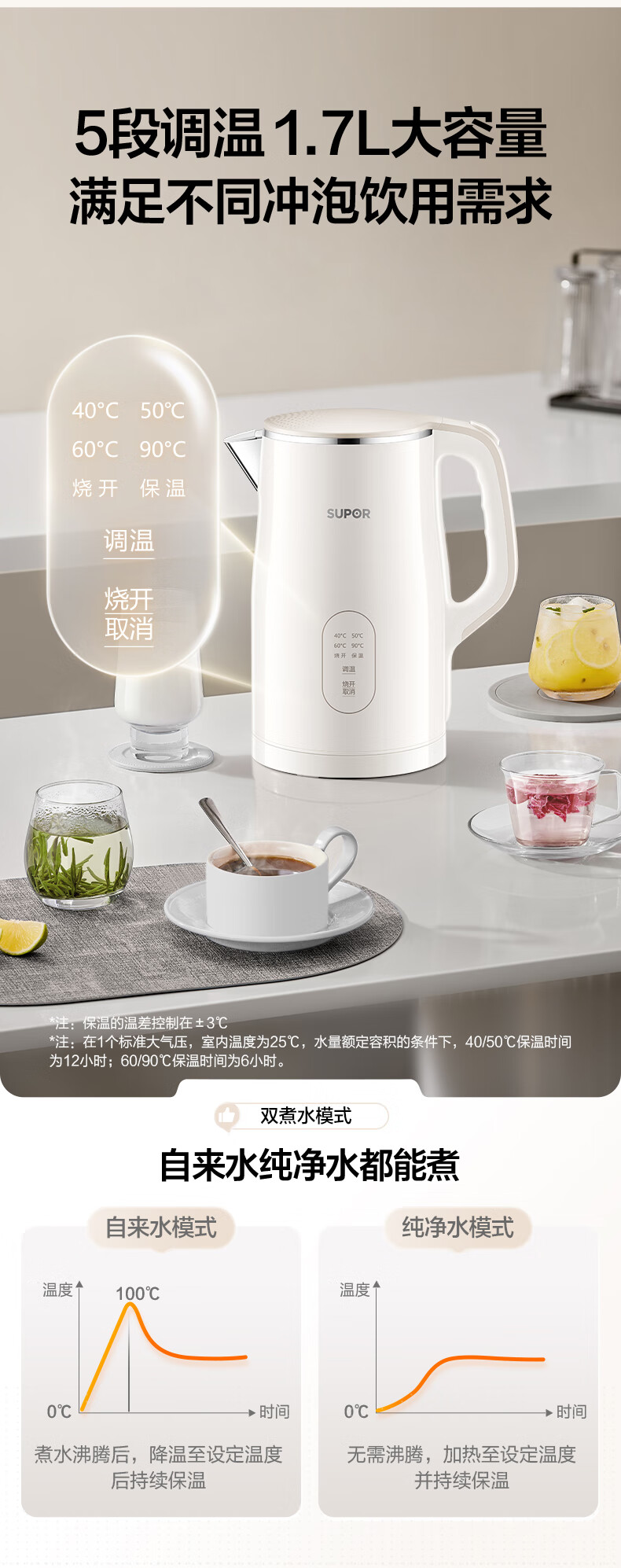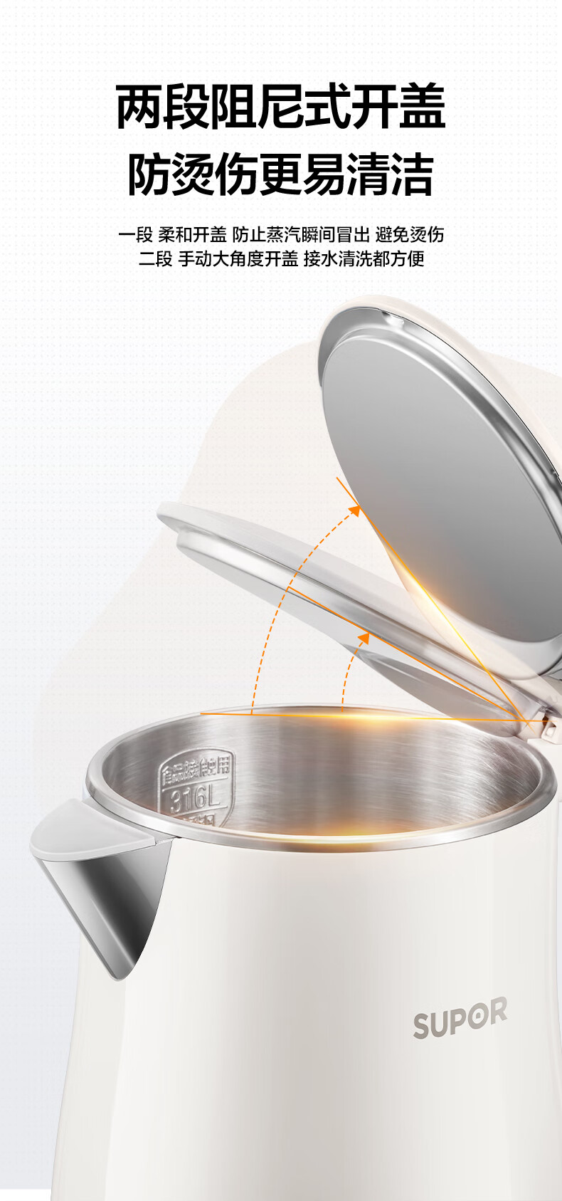 苏泊尔电热水壶家用无缝内胆大容量精准控温自动断电双层防烫低音烧水壶 1.7L 【316L不锈钢】SW-17S03F SW-17S03F