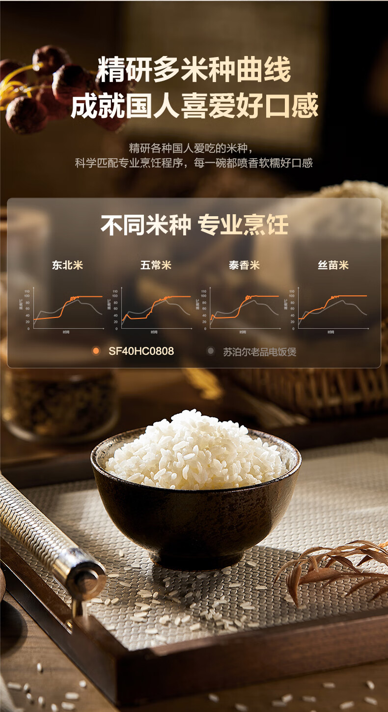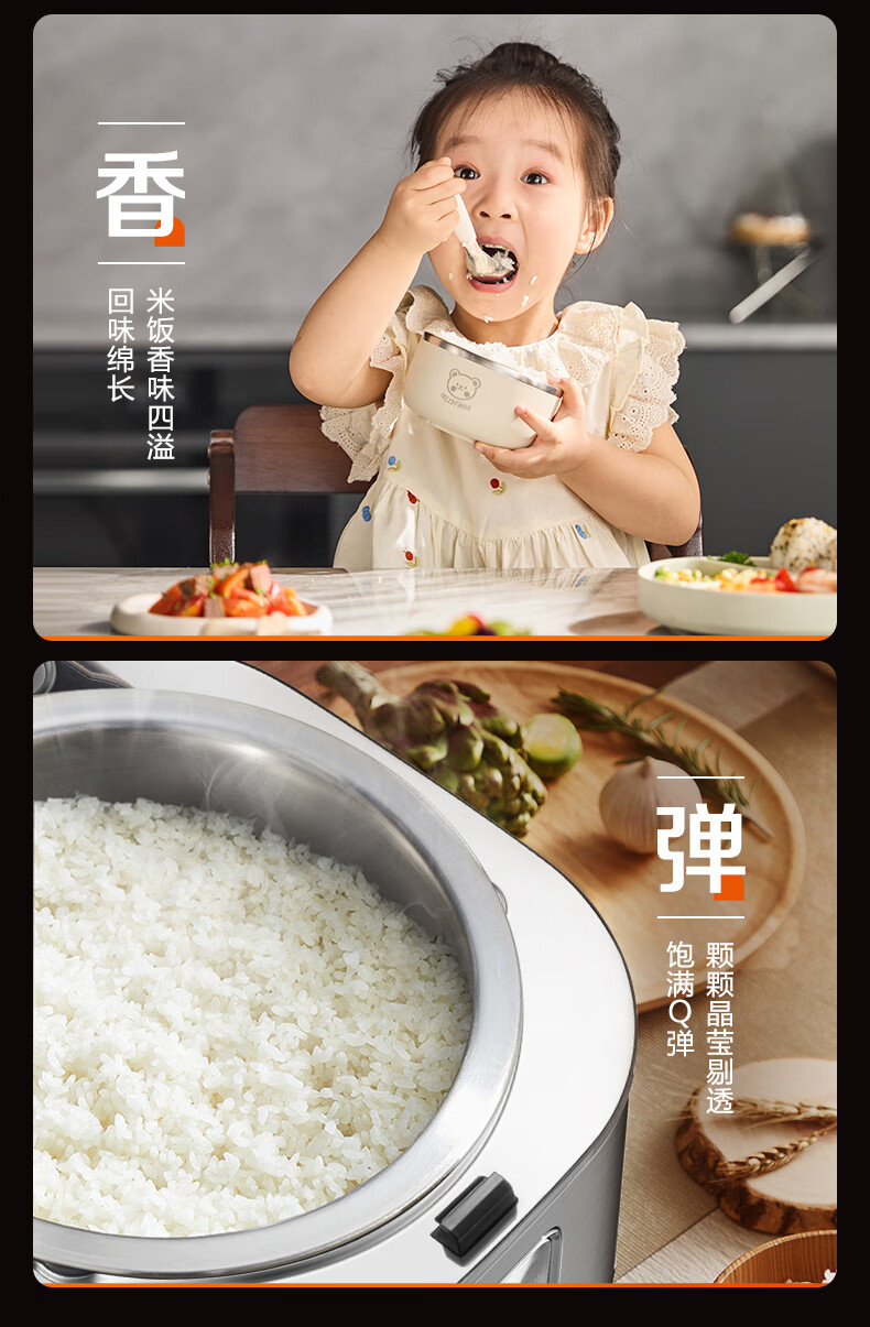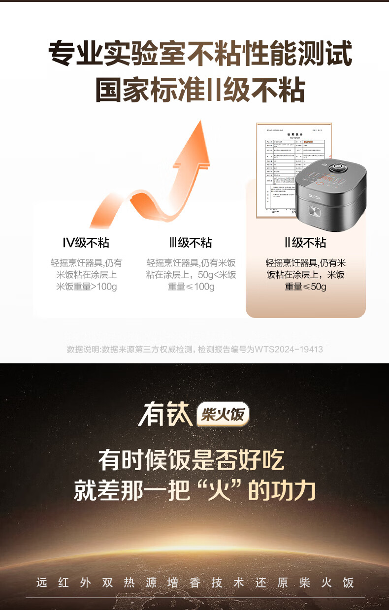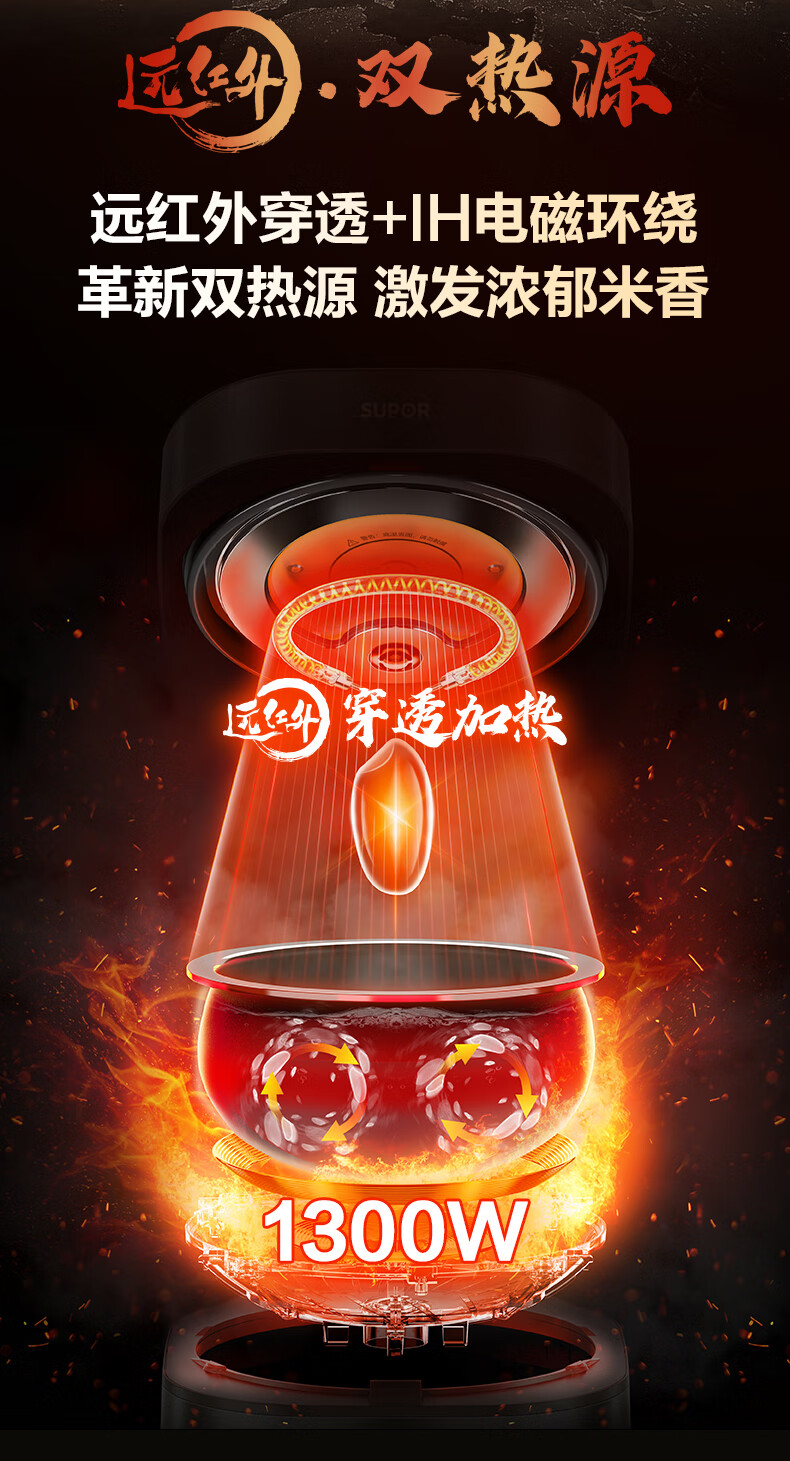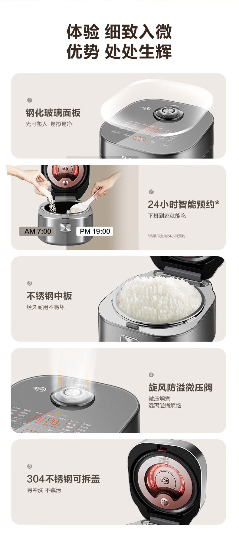 苏泊尔(SUPOR)远红外电饭煲有钛不粘0涂层4L无涂层电饭锅家用不锈钢球釜多功能智能预约3-5-8人SF40HC0808