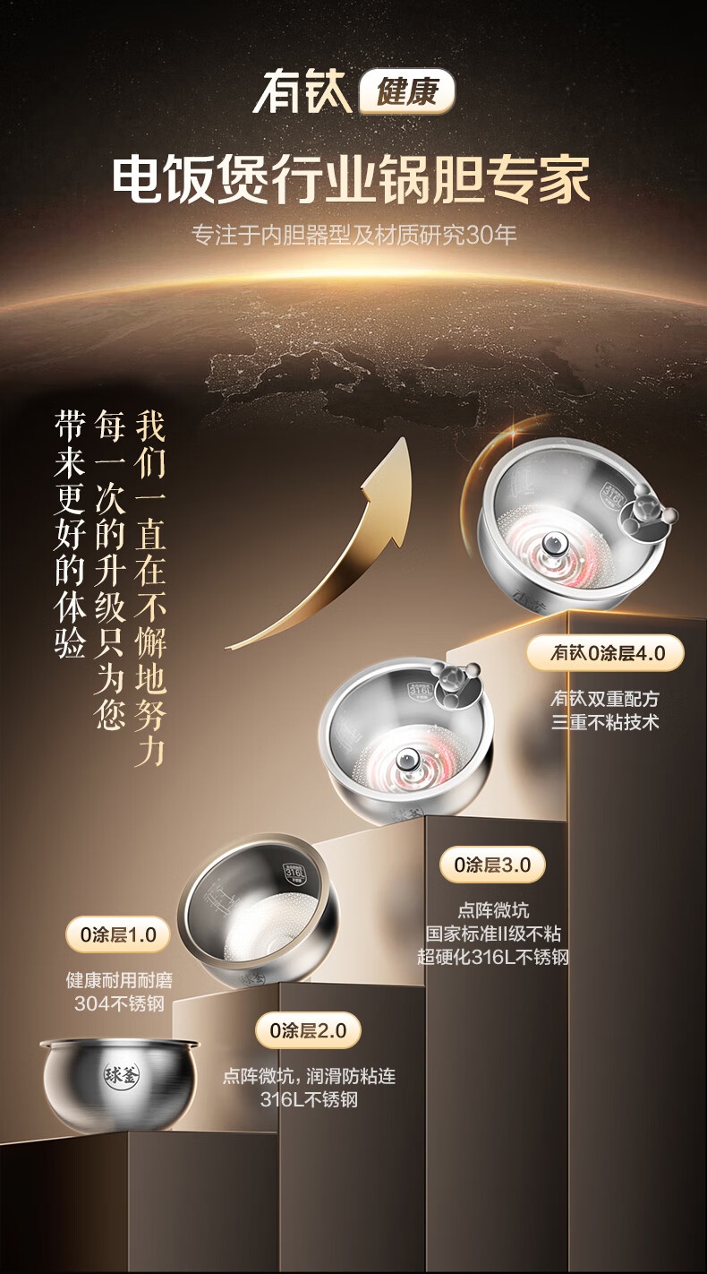 0涂层4L无涂层电饭锅家用不锈钢球釜多功能智能预约3-5-8人SF40HC0808