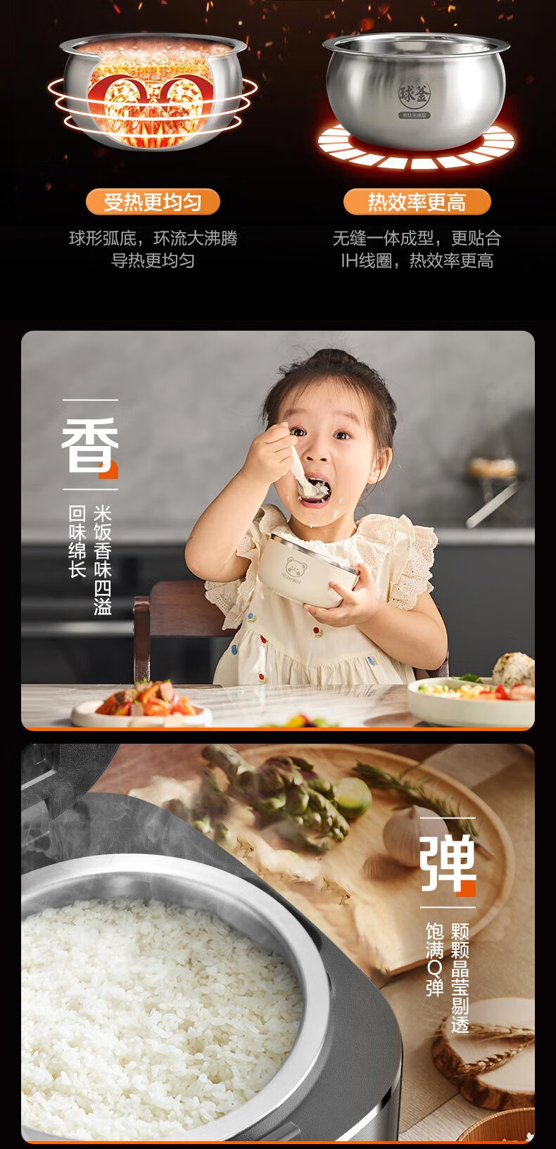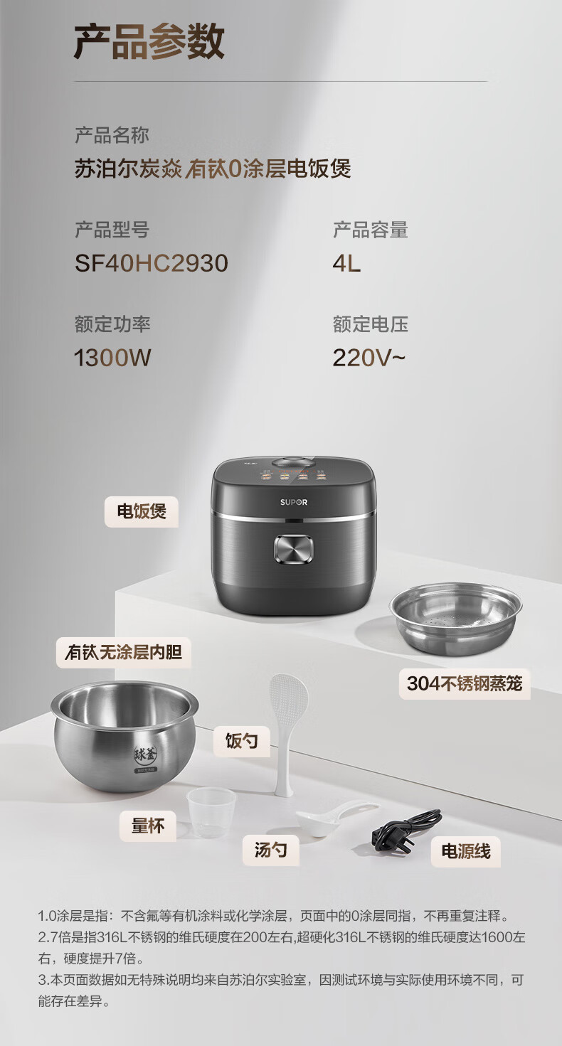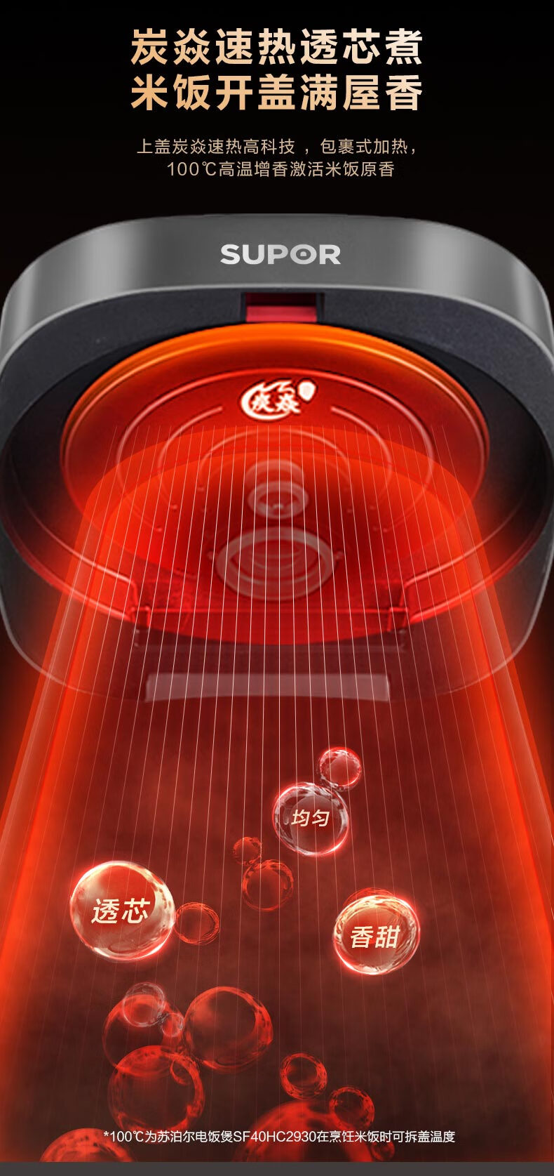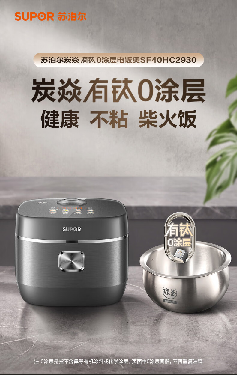 苏泊尔电饭煲0涂层不锈钢球釜内胆4L柴火饭电饭锅家用智能4升家用3-4人IH电磁加热SF40HC2930