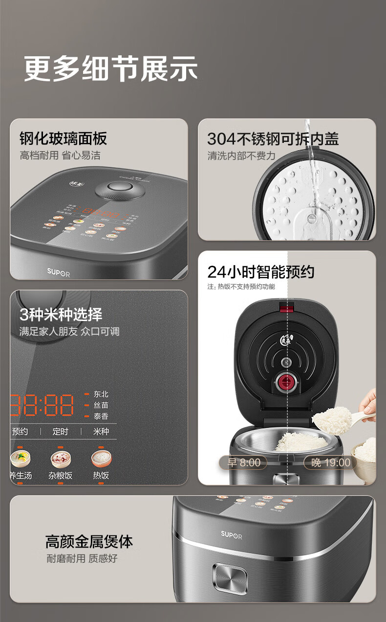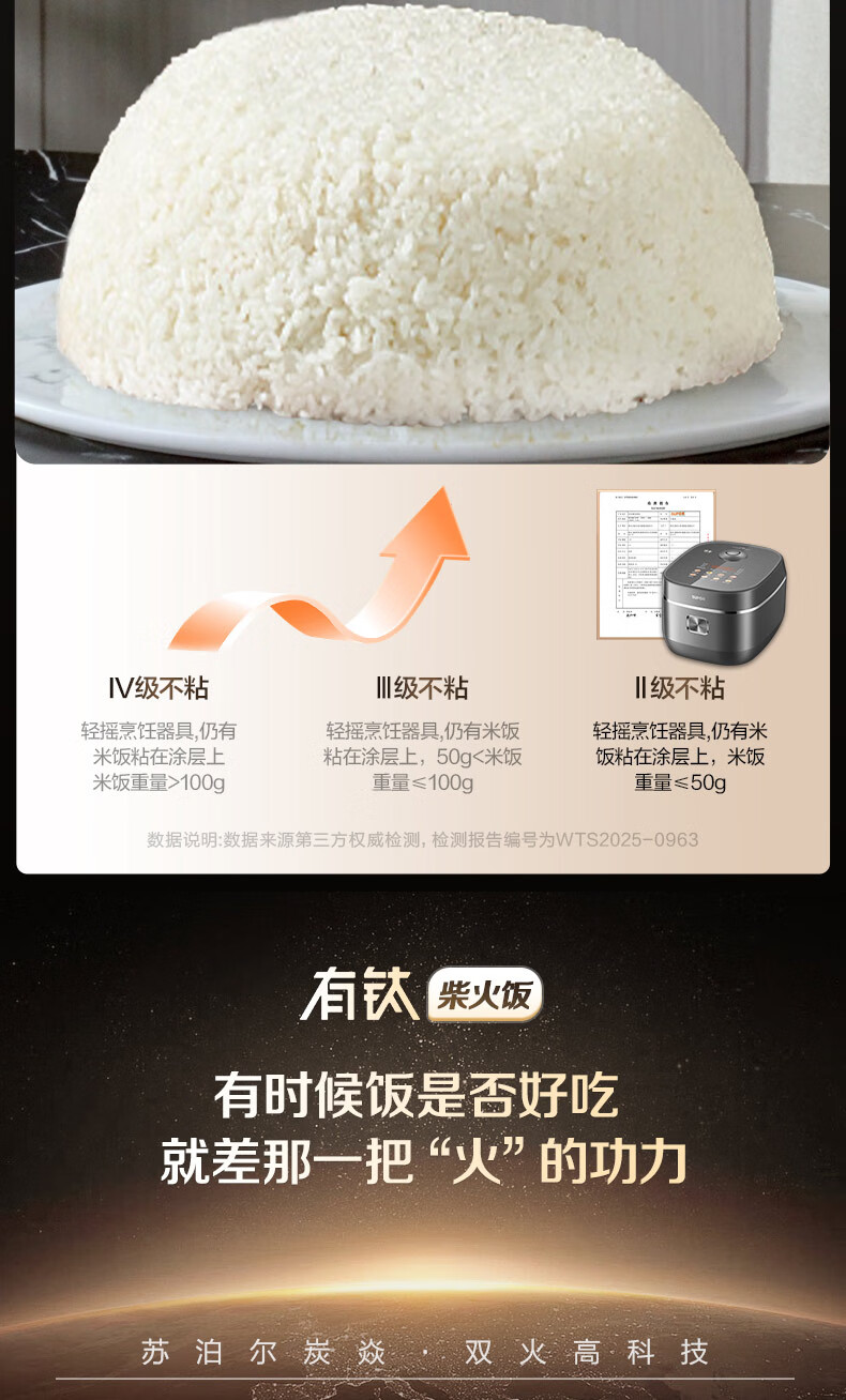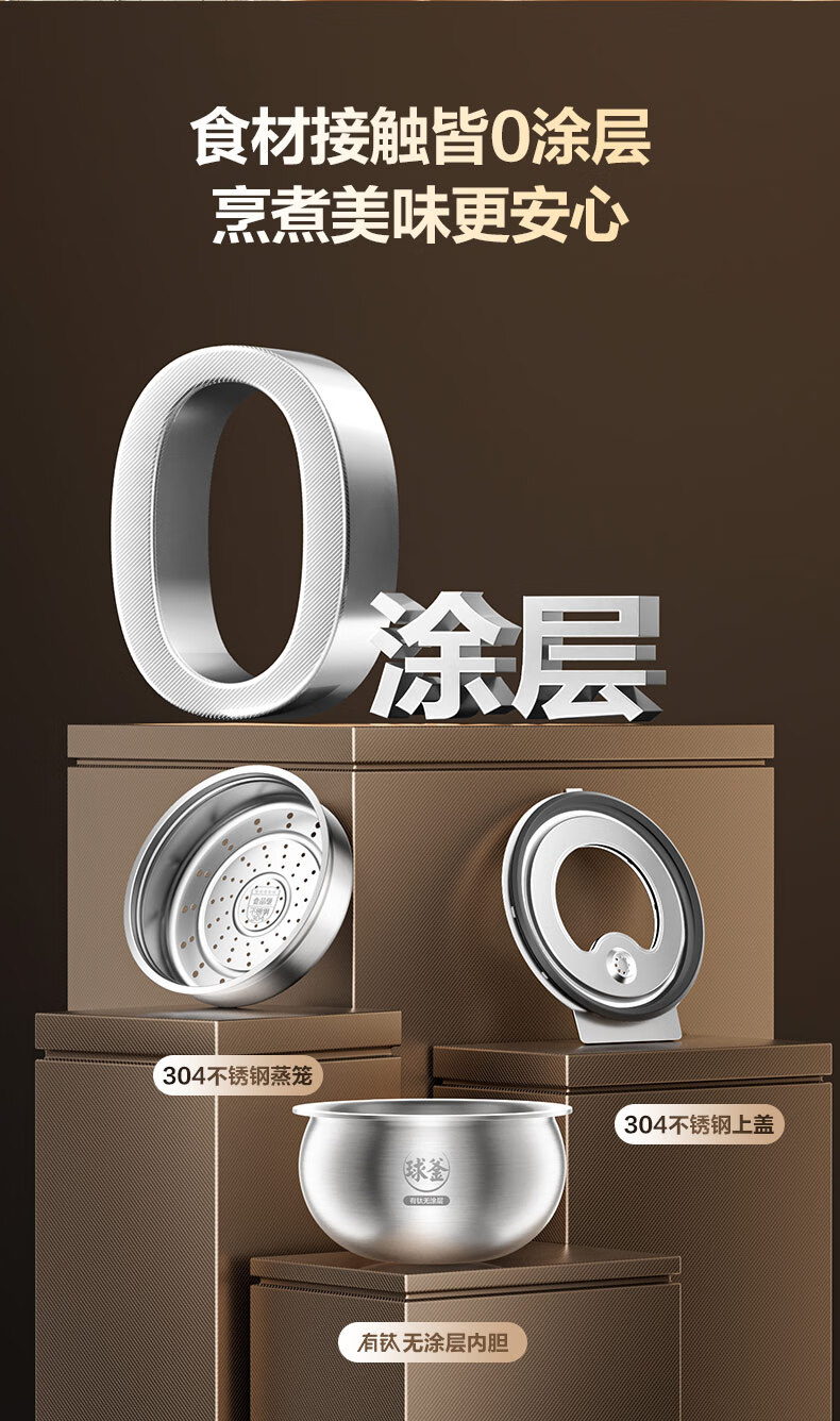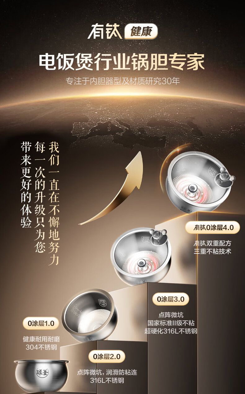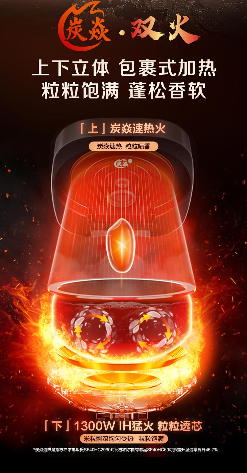 苏泊尔电饭煲0涂层不锈钢球釜内胆4L柴火饭电饭锅家用智能4升家用3-4人IH电磁加热SF40HC2930