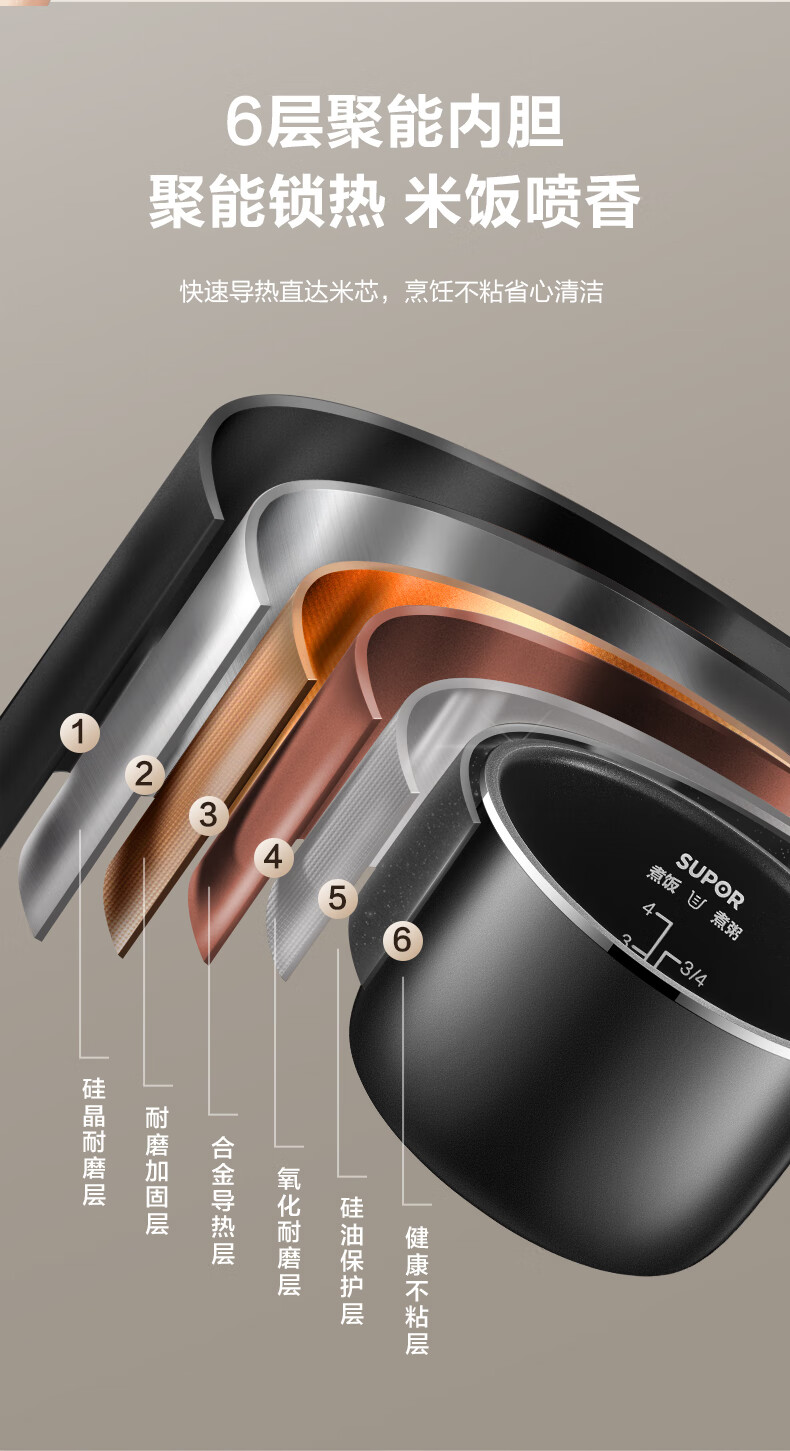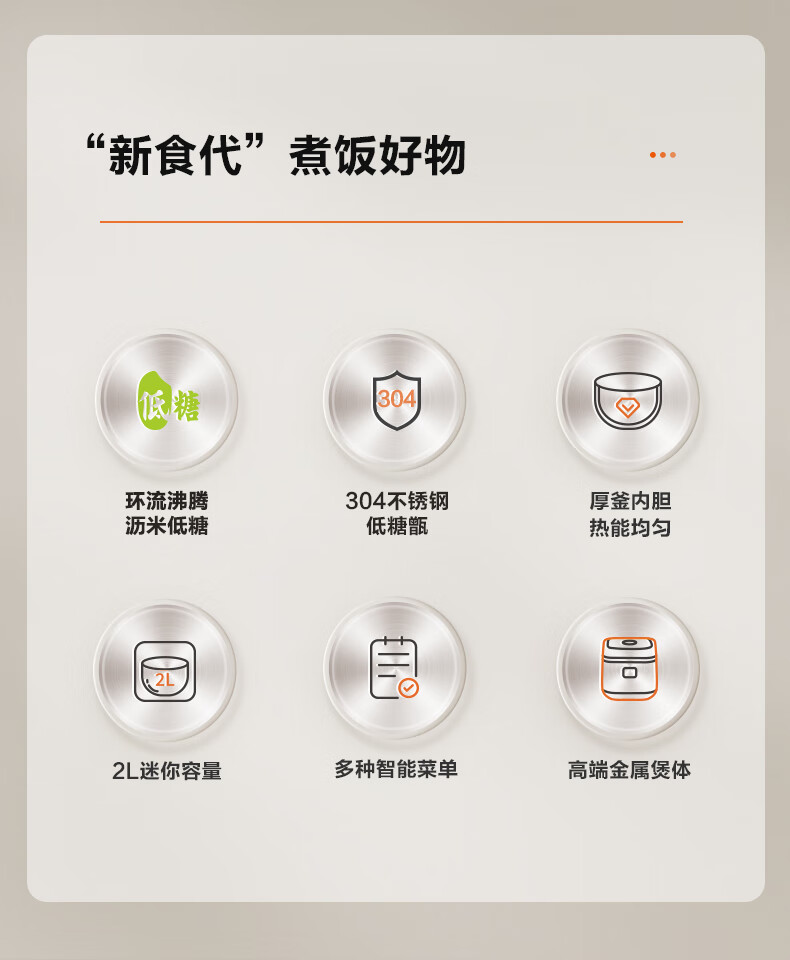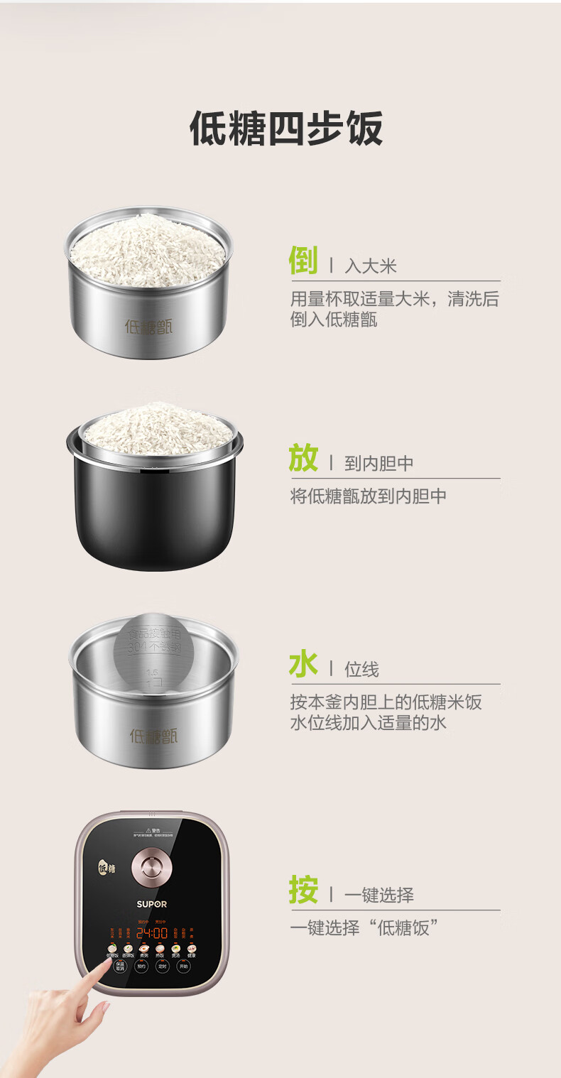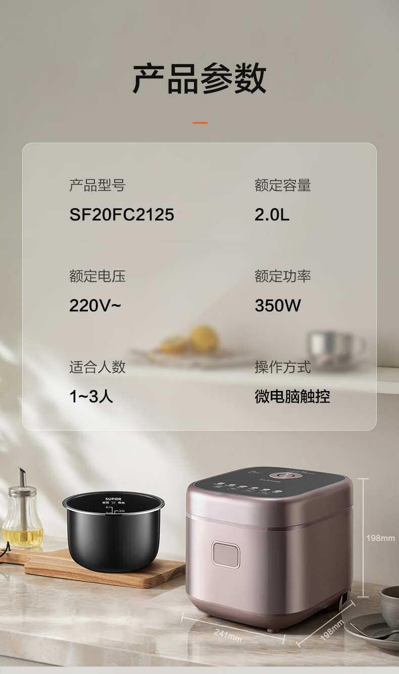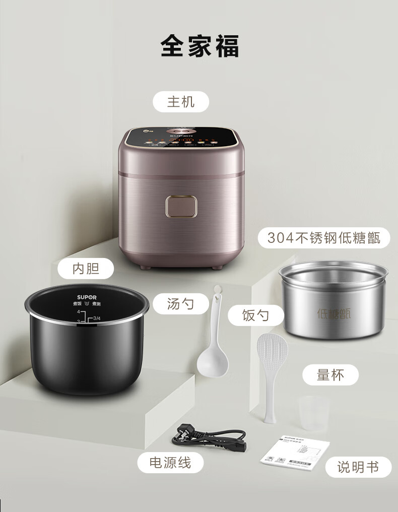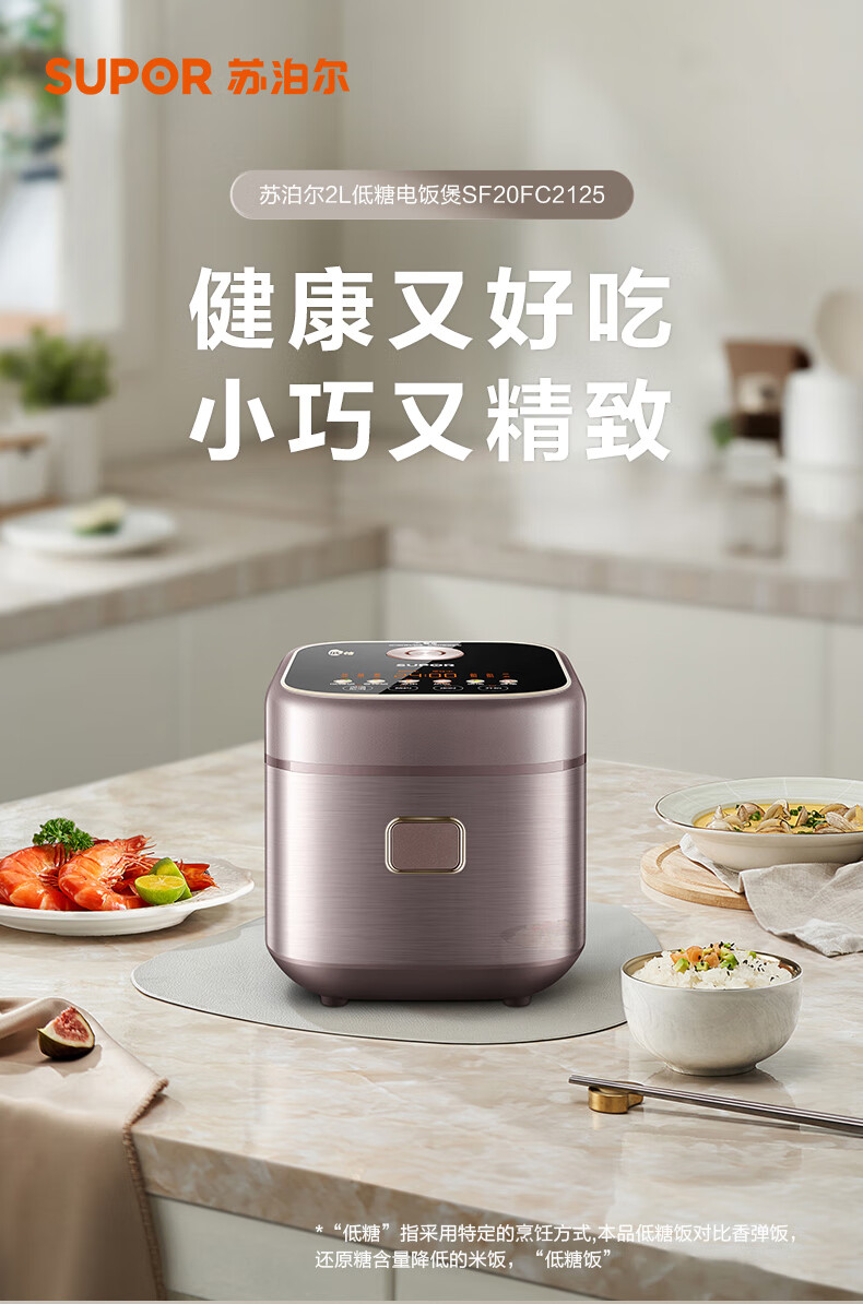 苏泊尔(SUPOR)电饭煲 低糖电饭锅2L 迷你1-2-3人家用智能预约沥米饭米汤分离 配低糖甑SF20FC2125