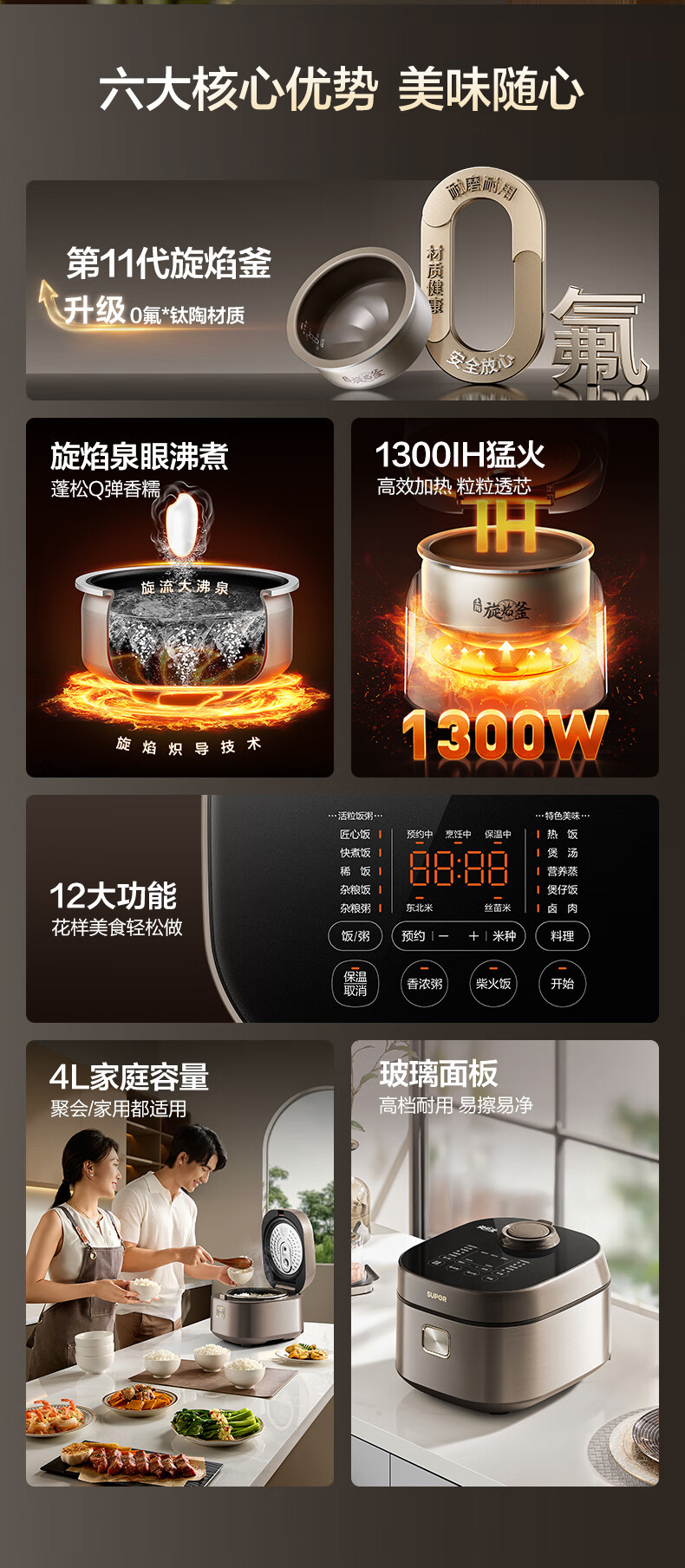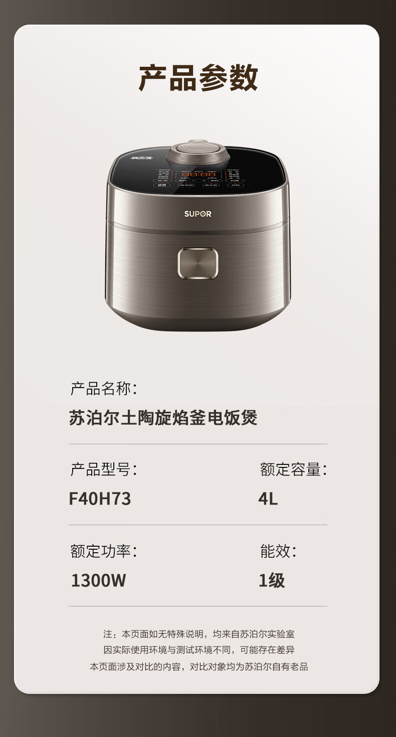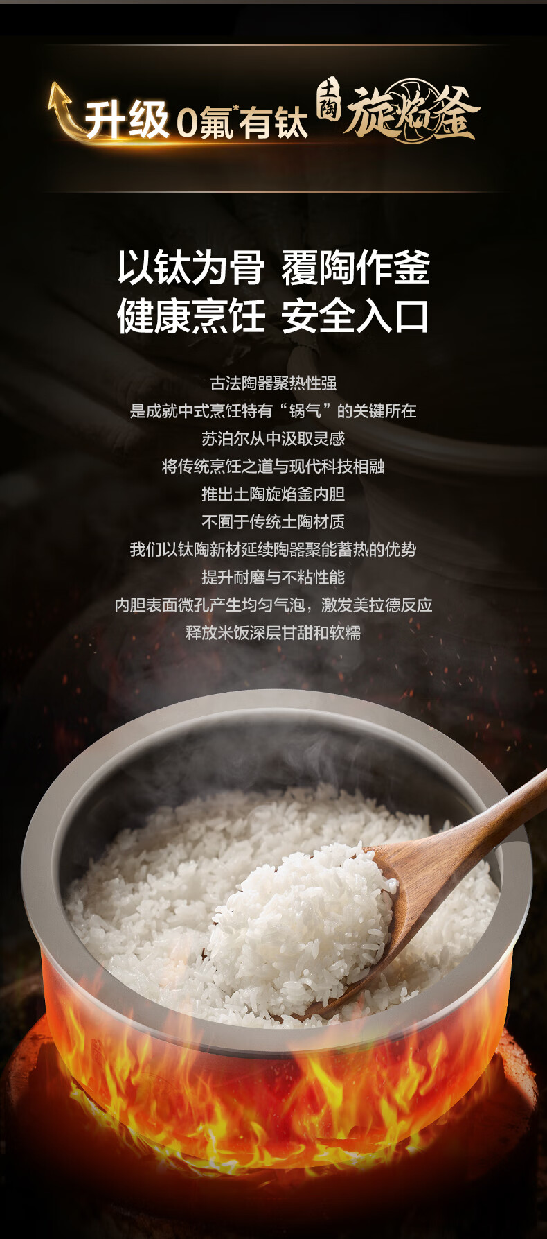 苏泊尔(SUPOR)电饭煲0氟有钛土陶球釜4L F40F36